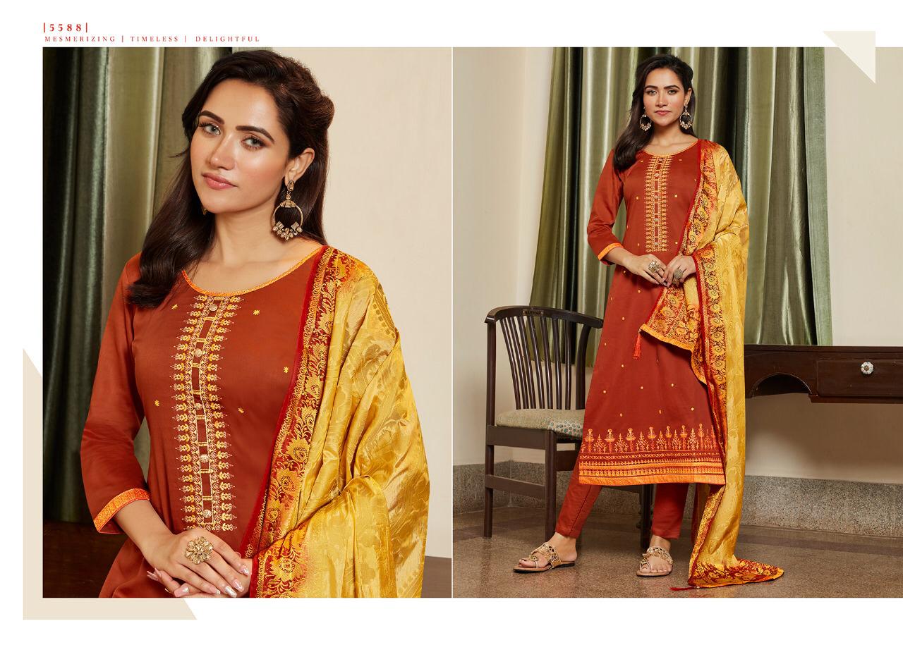 ? Kessi Fabrics Pvt. Ltd. has launched Catalog name: *Asopalav Vol - 15 ? Fabric Details ? ?Top:- Jam Silk with Embroidery Work ?Bottom:- Cotton ?Dupatta:- Banarasi Silk Rate. - 899/- Set to set. GST 5 Percent Extra ?Total Design:- 8 ?Dispatching - Monday ?Booking started from now... ?Order yours soon.... |