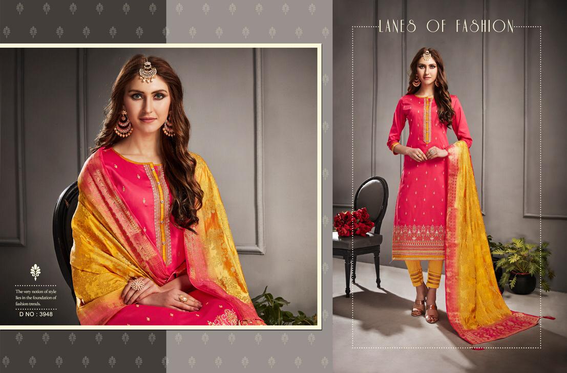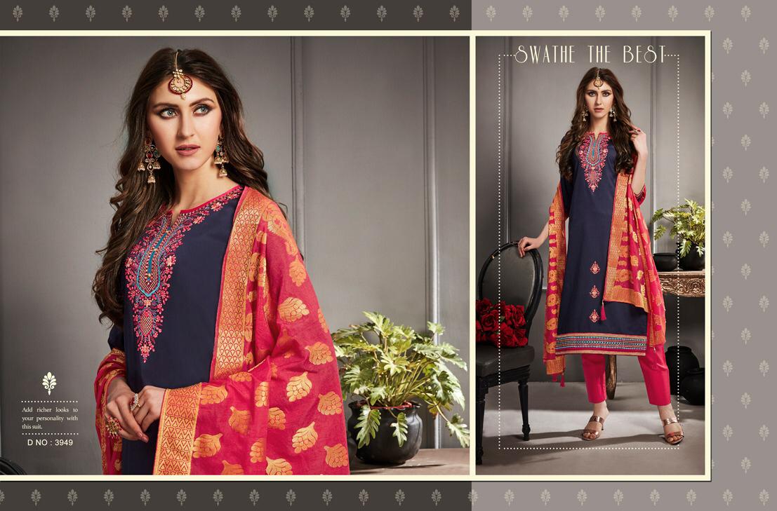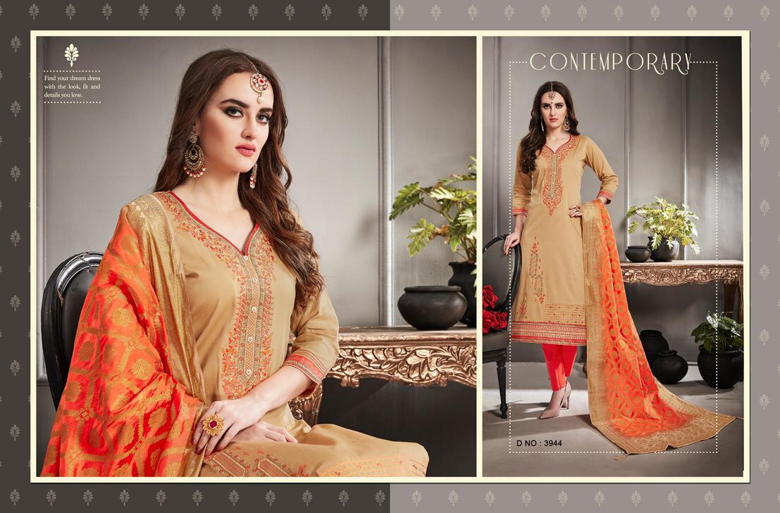 ? *Kessi Fabrics Pvt. Ltd.* has launched _Catalog name_ : *Asopalav Vol - 6* ? _Fabric Details_ ? ?Top :- Jam Silk Cotton ?Bottom:- Pure Cotton ?Dupatta:- Banarasi Silk Jari Border ?Total Design :- 12 ?Dispatching 5 to 6 days later ?Booking started from now... ?Order yours soon.... Rate -899 per pcs . Set To Set. GST 5 Percent Extra. |
