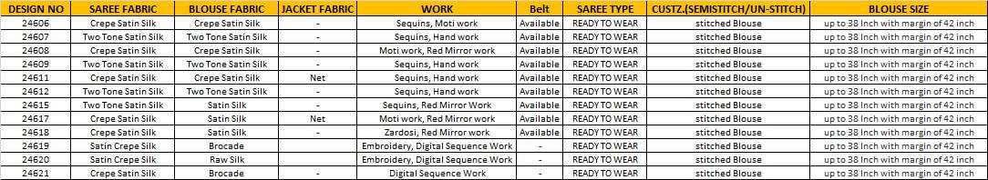 *PRICE :-* *24606-3675/-* *24607-3495/-* *24608-3495/-* *24609-3425/-* *24611-3415/-* *24612-3635/-* *24615-3715/-* *24617-3095/-* *24618-3325/-* *24619-2095/-* *24620-2465/-* *24621-2095/-* +*GST EXTRA*