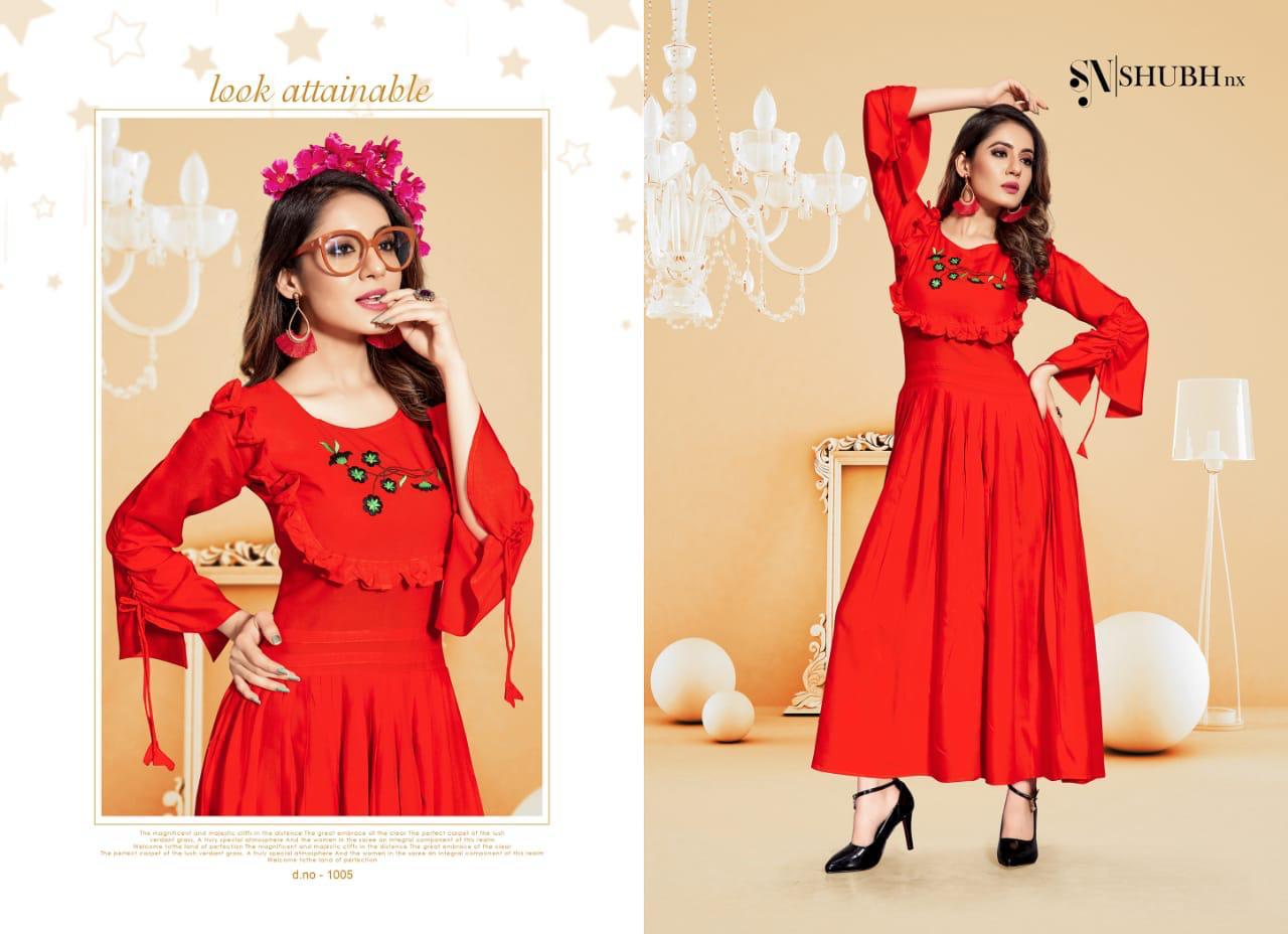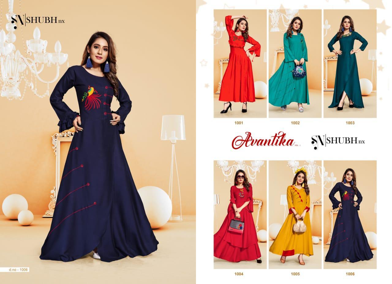 Buy Online Avantika Vol 1 By Shubh Nx Reyon Designer Party Wear Gowns Wholesale Supplier India 6 Pcs of Full Catalogue at Wholesale Price. Looking for Avantika Vol 1 By Shubh Nx Reyon Designer Party Wear Gowns Wholesale Supplier India Full Catalouge at Best Price? Buy Now Avantika Vol 1 By Shubh Nx Reyon Designer Party Wear Gowns Wholesale Supplier India at Wholesale Rate of Rs 3906 with Total 6 Pcs from authroized dealer and supplier of BRAND'S Brand. Cost of Each piece is just only Rs 651 which is very low and affordable price to resale the product in your retail store ,This is Surat based Wholesale Supplier & Dealer of BRAND'S Brand. Click on Brand name to Know more about BRAND'S Brand's products.Call or Whatsapp on 9898838984 for booking or enquiry