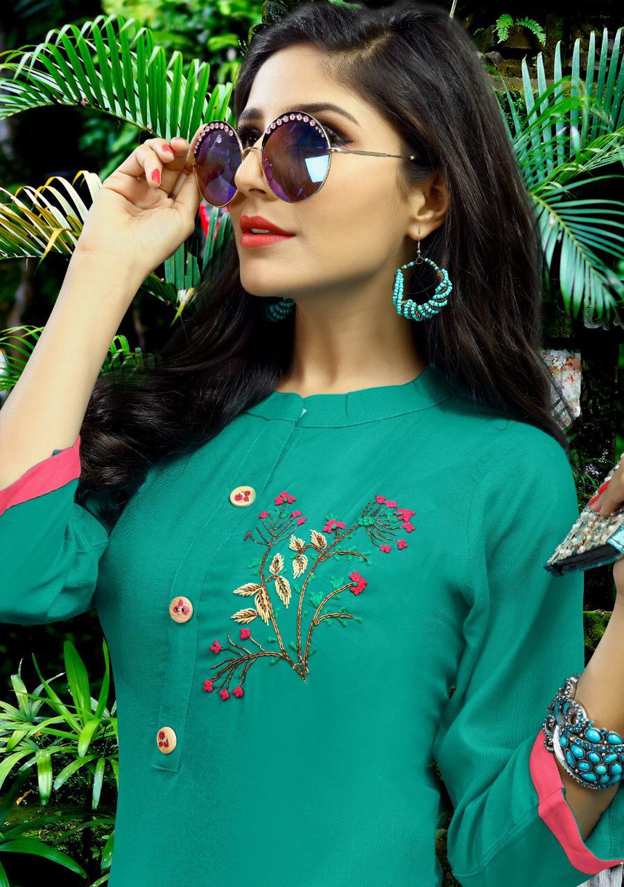 Ayana By Riya Designer Reyon Kurtis Collection Supplier Gujarat