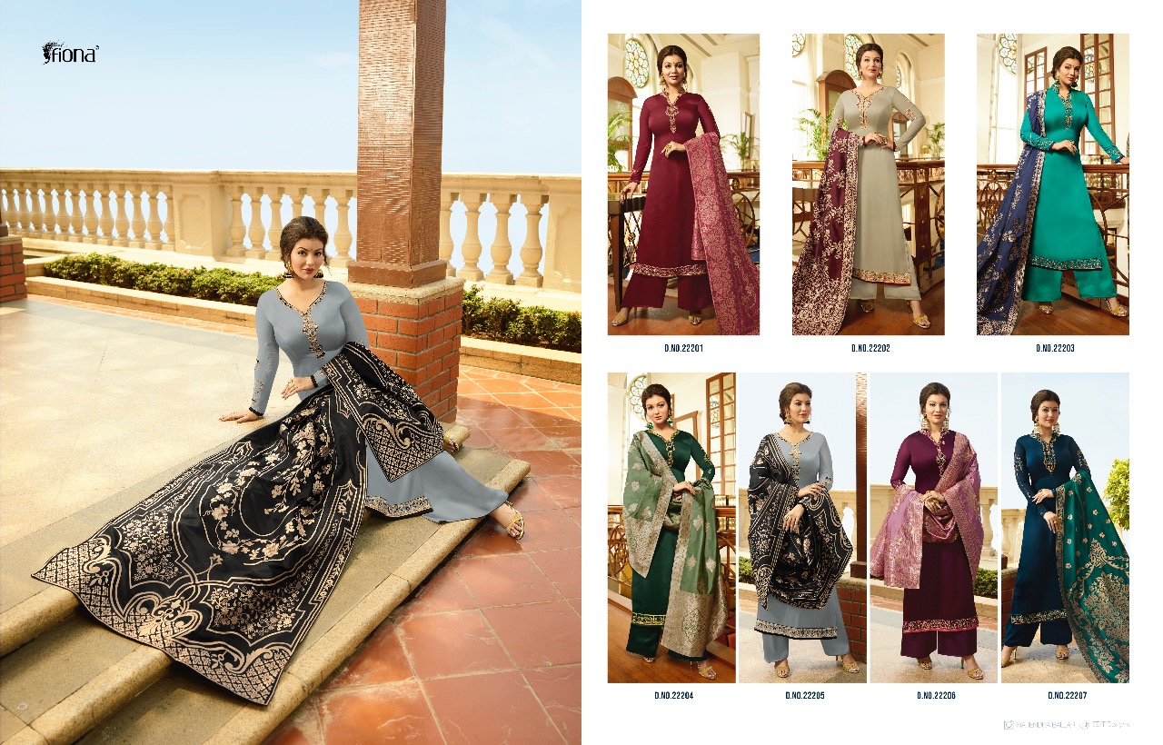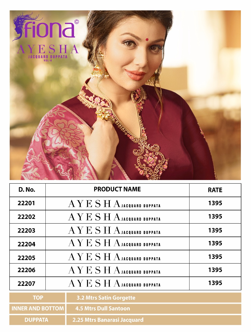 Ayesha Jacquard Duppata Vol 4 By Fiona 22201 Series Fancy Satin Georgette Salwar Kameez Catlog Wholesale Dealer Surat
