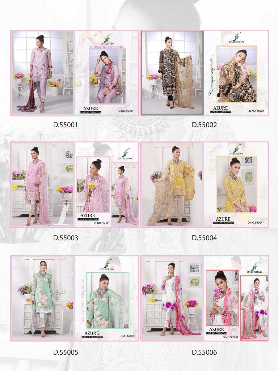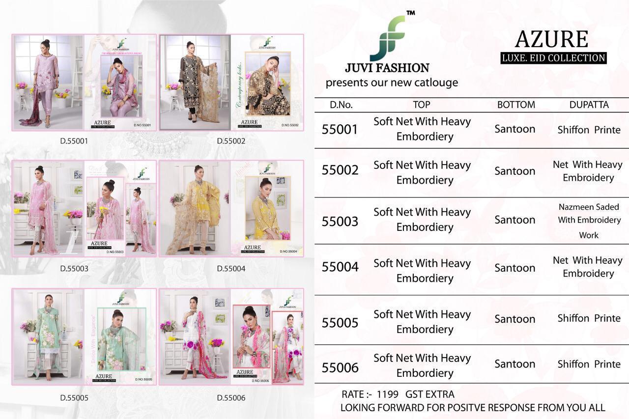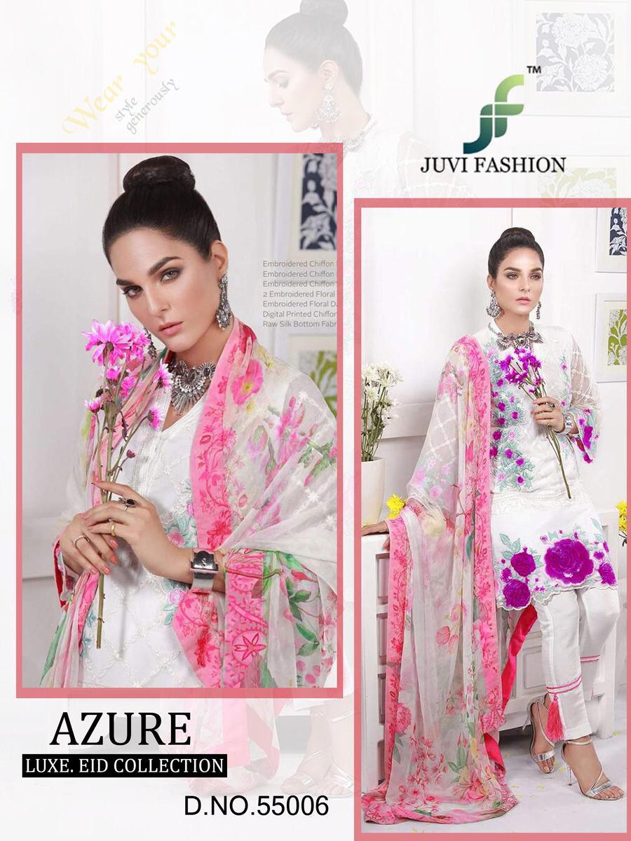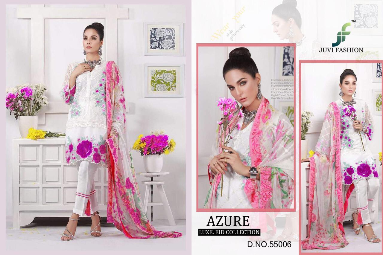 Buy Online Azure Luxe Eid Collection By Juvi Fashion Pakistani Suits Wholesale Supplier Gujarat 6 Pcs of Full Catalogue at Wholesale Price. Looking for Azure Luxe Eid Collection By Juvi Fashion Pakistani Suits Wholesale Supplier Gujarat Full Catalouge at Best Price? Buy Now Azure Luxe Eid Collection By Juvi Fashion Pakistani Suits Wholesale Supplier Gujarat at Wholesale Rate of Rs 7194 with Total 6 Pcs from authroized dealer and supplier of Brand. Cost of Each piece is just only Rs 1199 which is very low and affordable price to resale the product in your retail store ,This is Surat based Wholesale Supplier & Dealer of Brand. Click on Brand name to Know more about Brand's products.Call or Whatsapp on 9898838984 for booking or enquiry