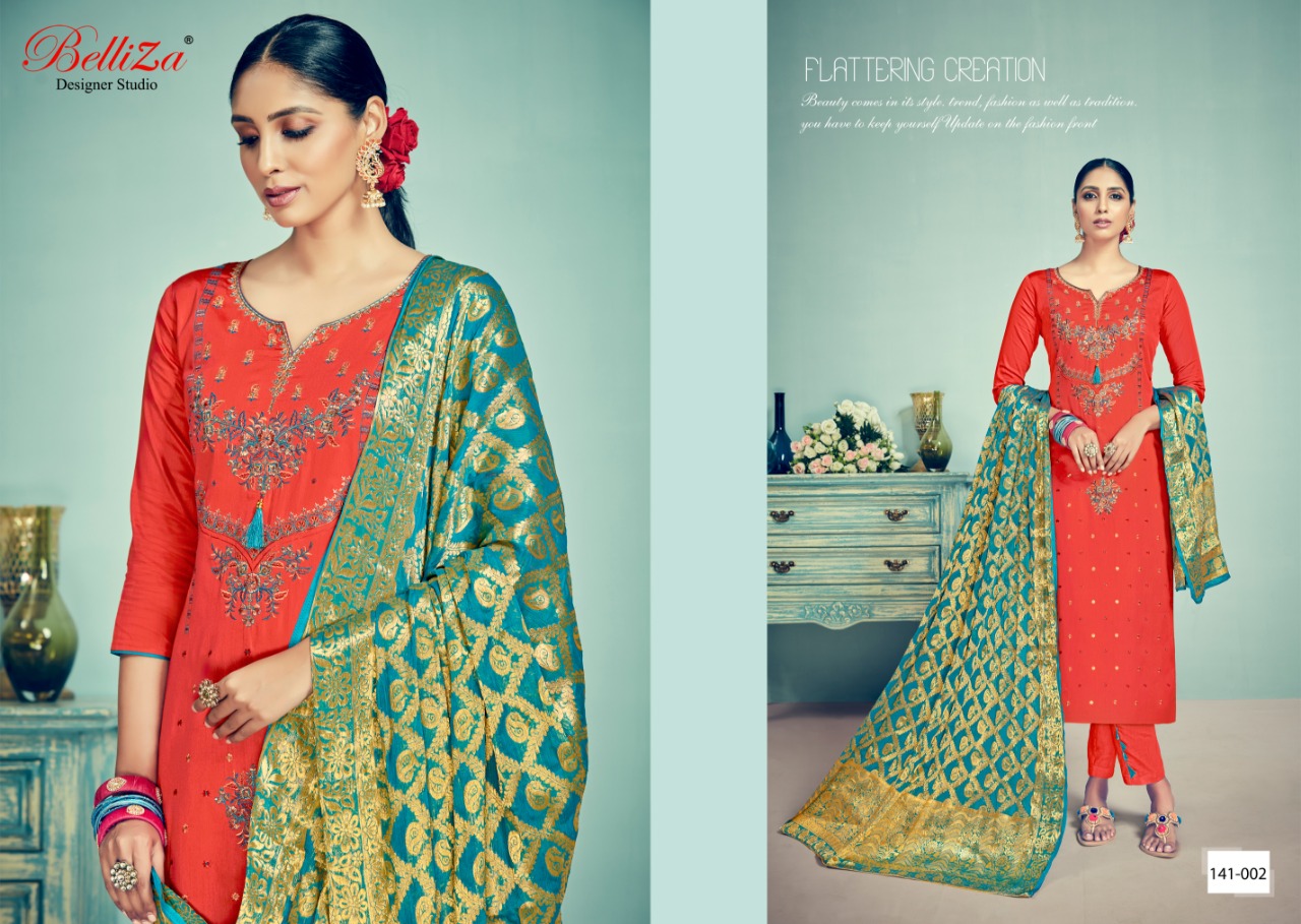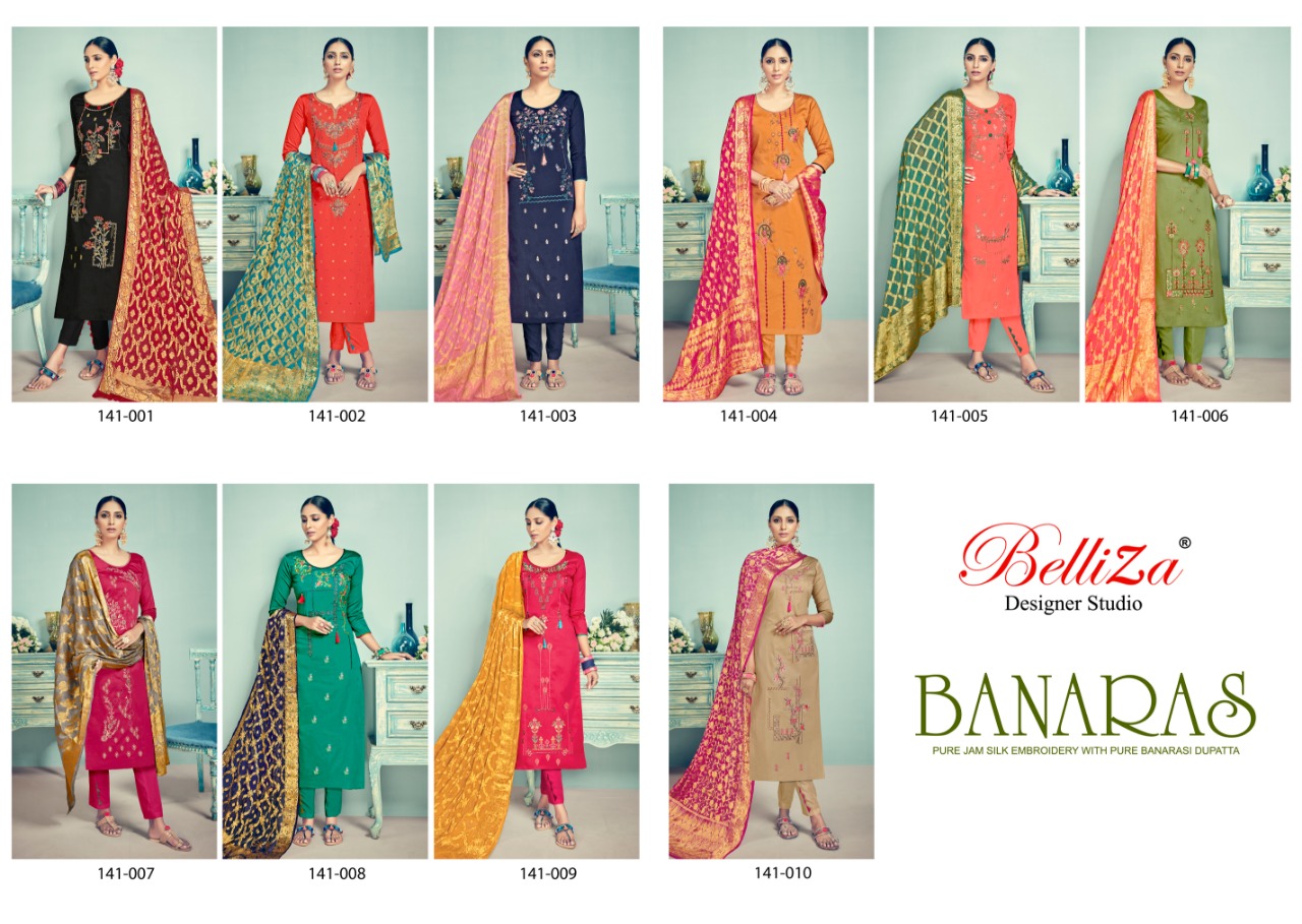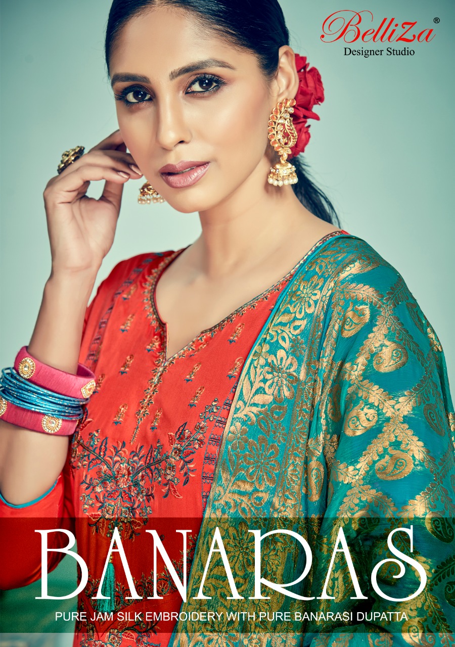 Banaras By Belliza Desinger Studio Jam Silk Heavy Embroidered Designer Party Wear Suits Wholesale Supplier And Dealer Suart