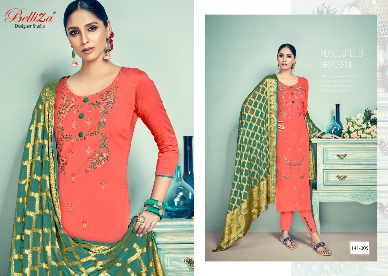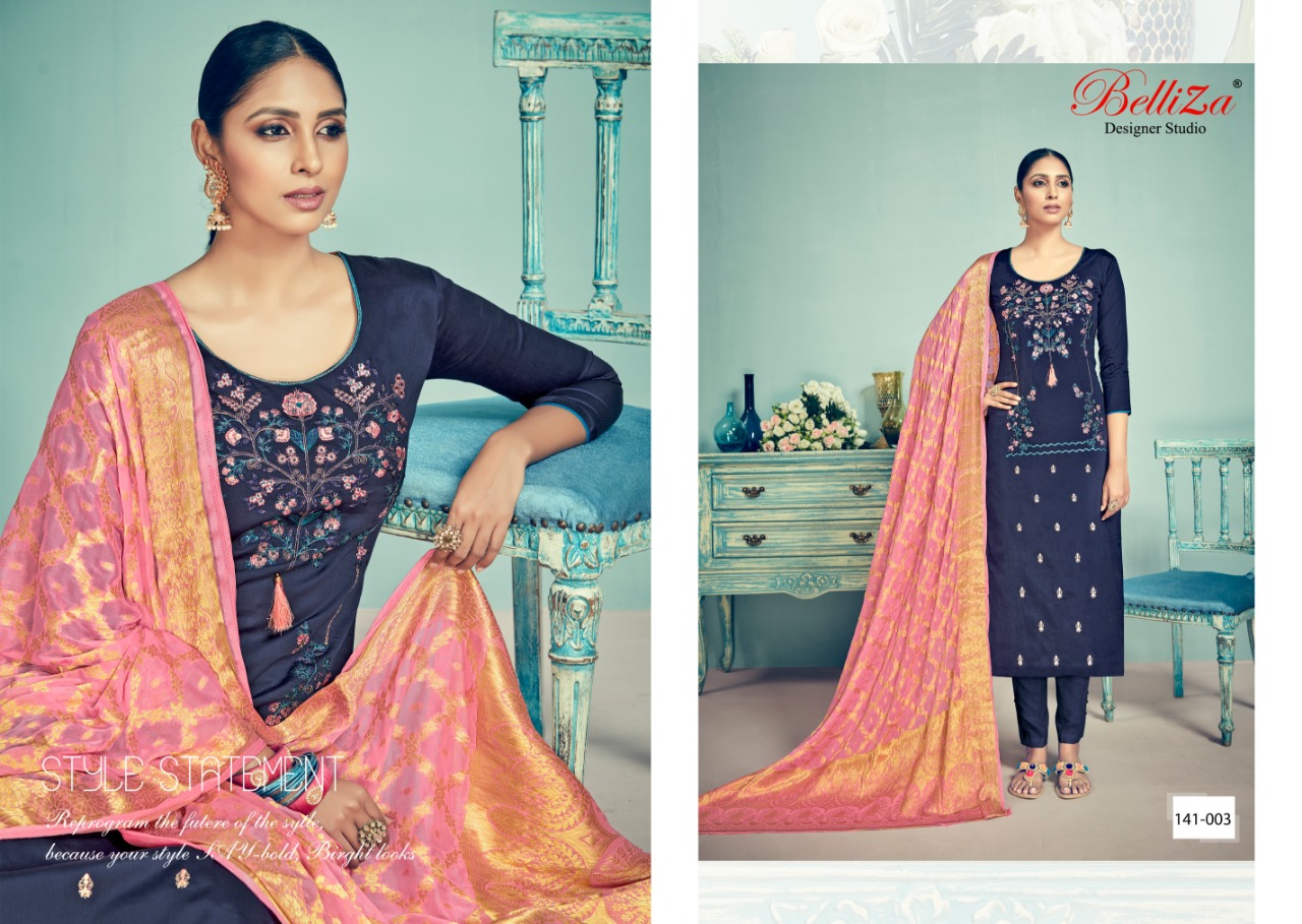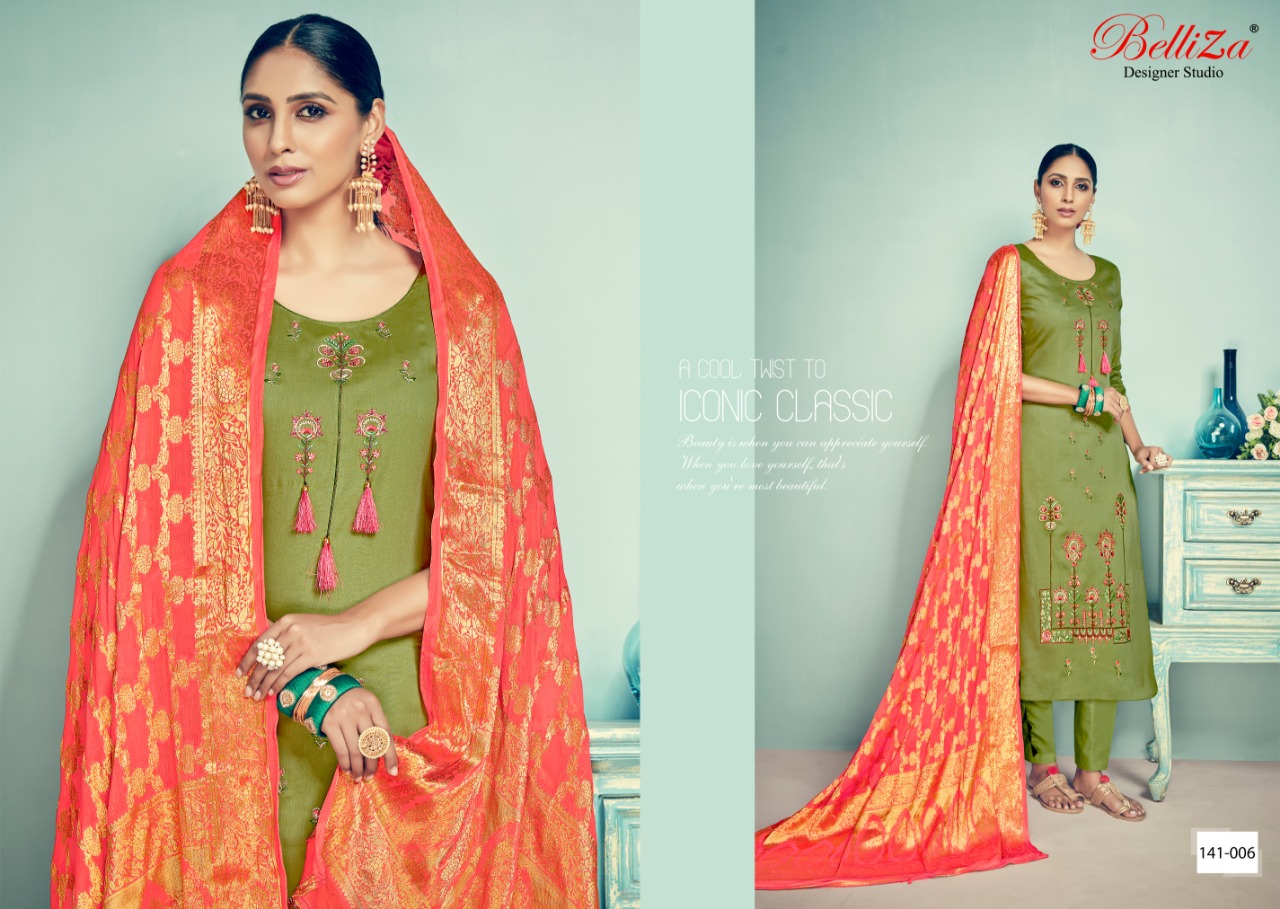 Banaras By Belliza Desinger Studio Jam Silk Heavy Embroidered Designer Party Wear Suits Wholesale Supplier And Dealer Suart