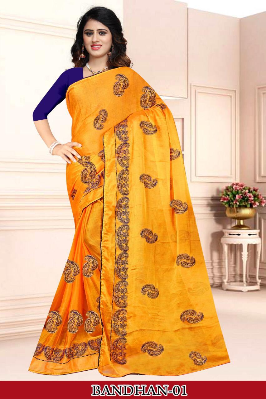 Buy Online Bandhan 1 By Right One Sai Chiffon 2 Ton Sarees Collection Wholesale Supplier India 6 Pcs of Full Catalogue at Wholesale Price. Looking for Bandhan 1 By Right One Sai Chiffon 2 Ton Sarees Collection Wholesale Supplier India Full Catalouge at Best Price? Buy Now Bandhan 1 By Right One Sai Chiffon 2 Ton Sarees Collection Wholesale Supplier India at Wholesale Rate of Rs 3150 with Total 6 Pcs from authroized dealer and supplier of Right one Brand. Cost of Each piece is just only Rs 525 which is very low and affordable price to resale the product in your retail store ,This is Surat based Wholesale Supplier & Dealer of Right one Brand. Click on Brand name to Know more about Right one Brand's products.Call or Whatsapp on 9898838984 for booking or enquiry