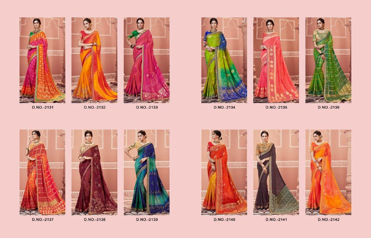 Brand - Kessi . Catlog name - Bandhej Vol -10. Series-2131 To 2142 Set & Loose. Rate -999 per pcs . Single Extra 100 on company GST 5 Percent Extra x Delivery from today |