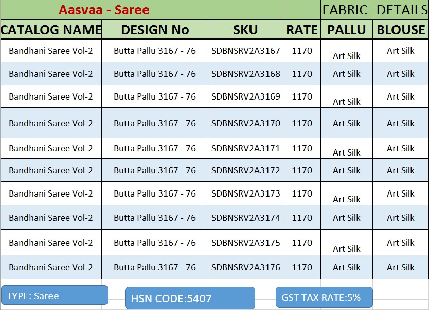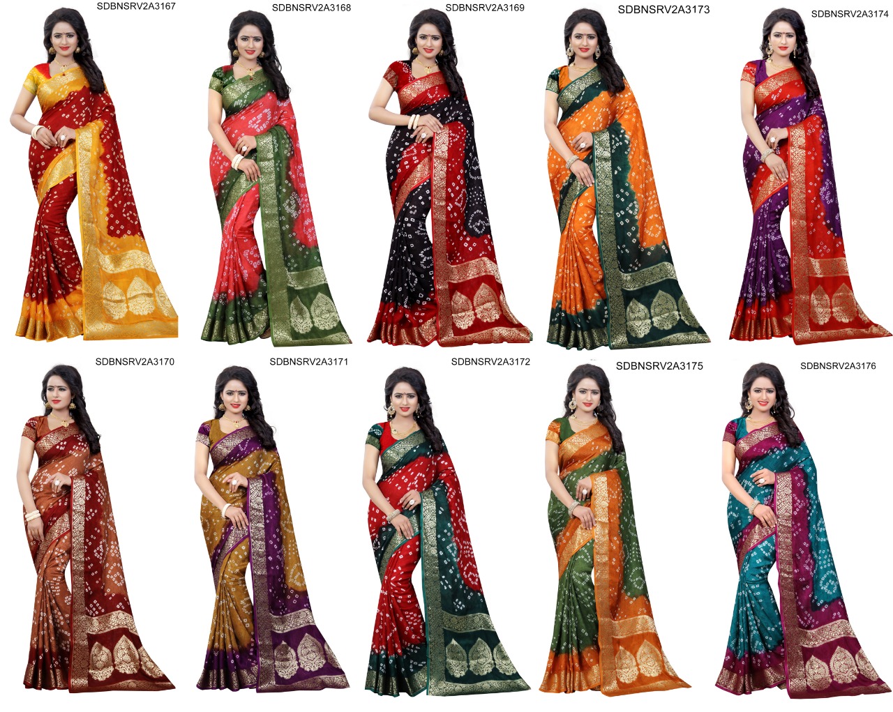Buy Online Bandhni Saree 2 By Nitya Nx Bandhni Printed Sarees Manufacturer Surat 10 Pcs of Full Catalogue at Wholesale Price. Looking for Bandhni Saree 2 By Nitya Nx Bandhni Printed Sarees Manufacturer Surat Full Catalouge at Best Price? Buy Now Bandhni Saree 2 By Nitya Nx Bandhni Printed Sarees Manufacturer Surat at Wholesale Rate of Rs 11700 with Total 10 Pcs from authroized dealer and supplier of BRAND'S Brand. Cost of Each piece is just only Rs 1170 which is very low and affordable price to resale the product in your retail store ,This is Surat based Wholesale Supplier & Dealer of BRAND'S Brand. Click on Brand name to Know more about BRAND'S Brand's products.Call or Whatsapp on 9898838984 for booking or enquiry