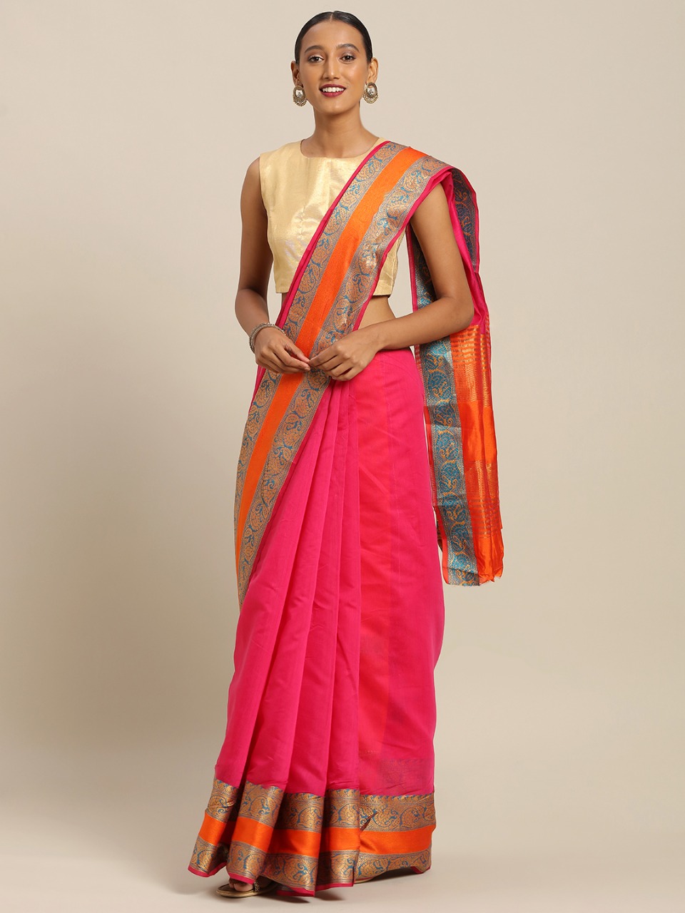 CATALOG: *BANSURI VOL-2* FABRIC: HANDLOOM SILK WITH EMBROIDERY BLOUSE SINGLE RATE: 799+5%GST+SHIP WITH BLOUSE PIECE ATTACHED CONTRASTED BORDER & PALLU ?*BOOK YOUR ORDERS NOW*? |
