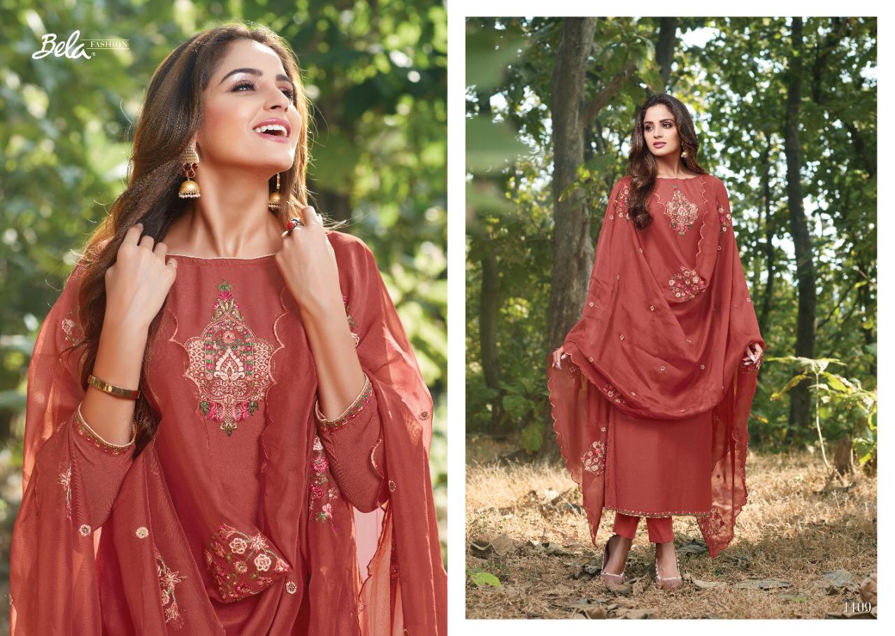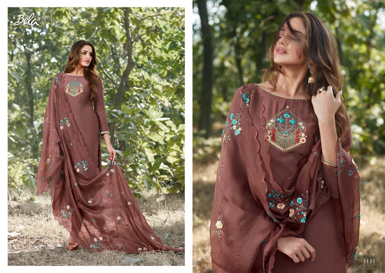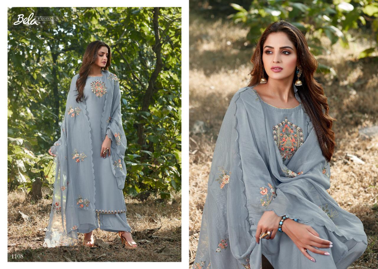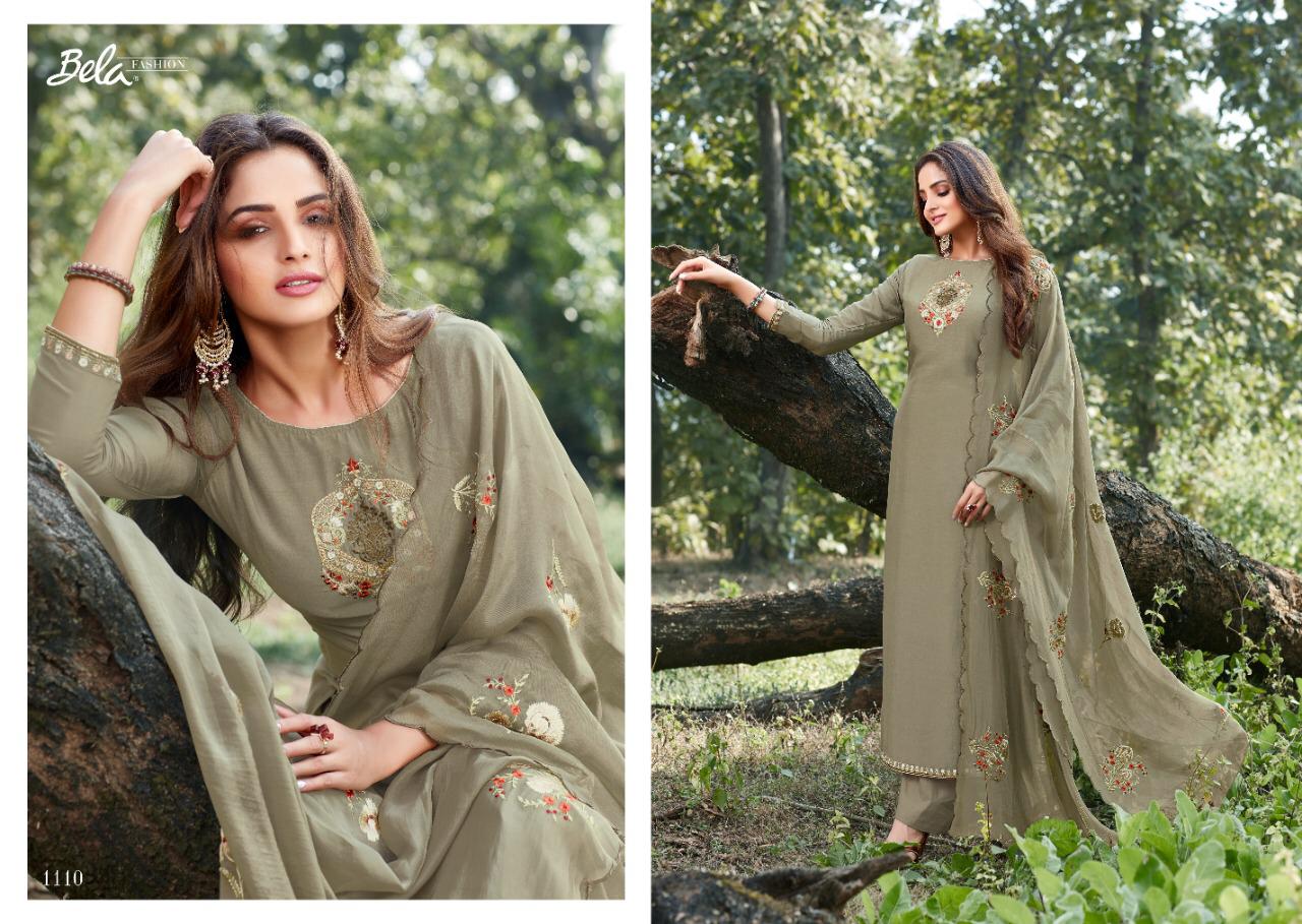 Brand - BELA . Type - suit . Catlog name - MANZIL . Series - 1107 to 1113. Set & loose . Single extra 100 GST 5 Percent Extra Delivery 2 days |
