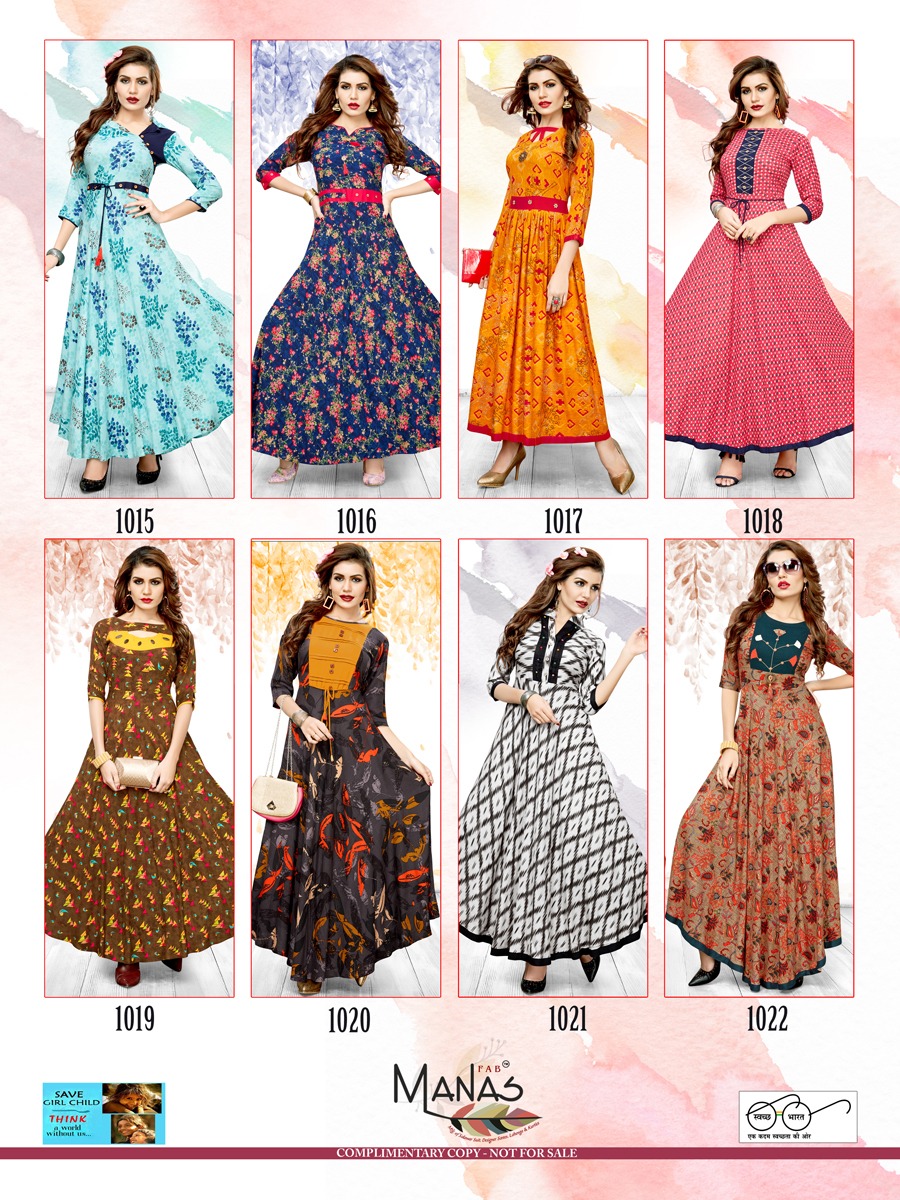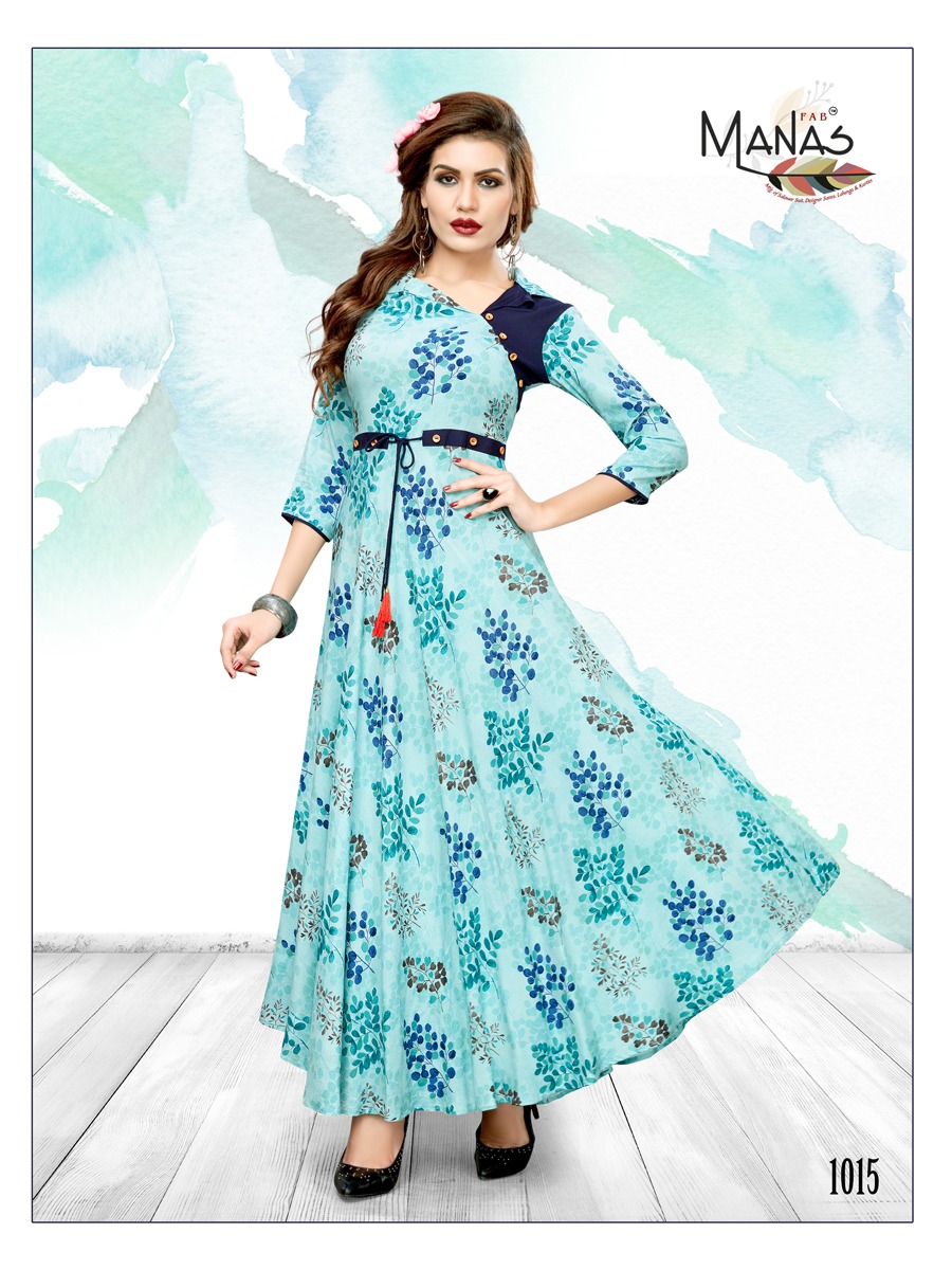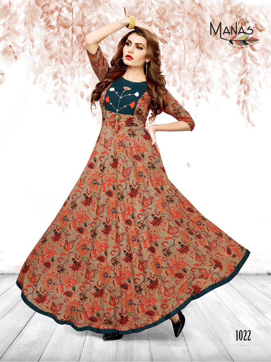 Bhakti Vol 3 By Manas 1015 Series Designer Reyon Print Gown Style Kurti Catlog Wholesale Dealer And Supplier Surat