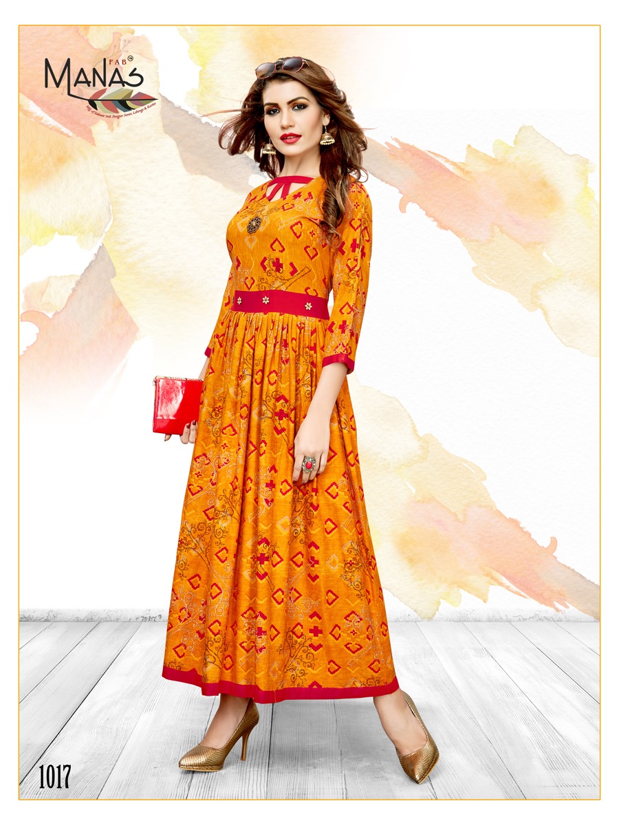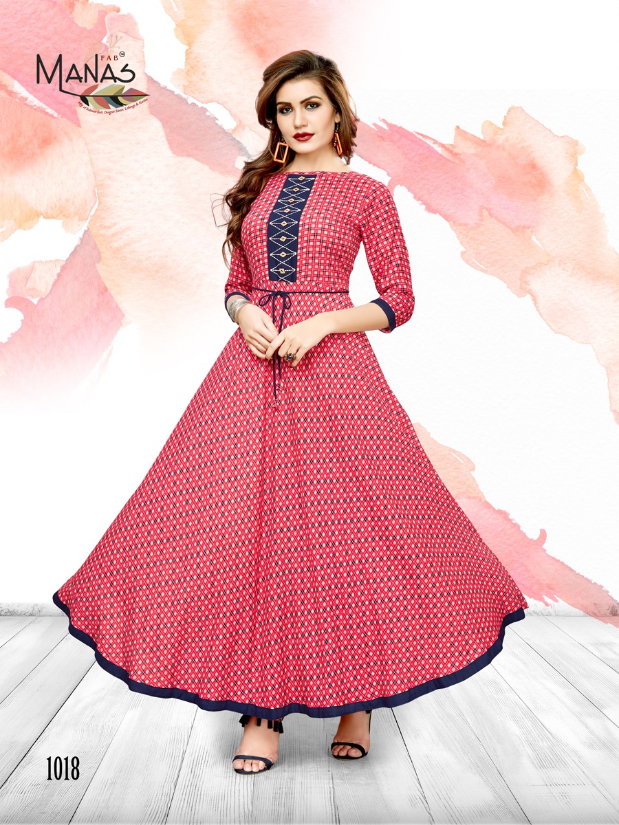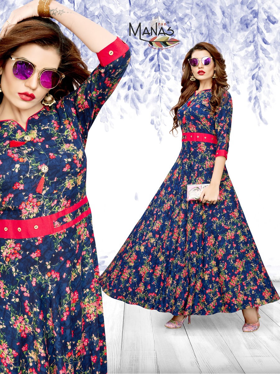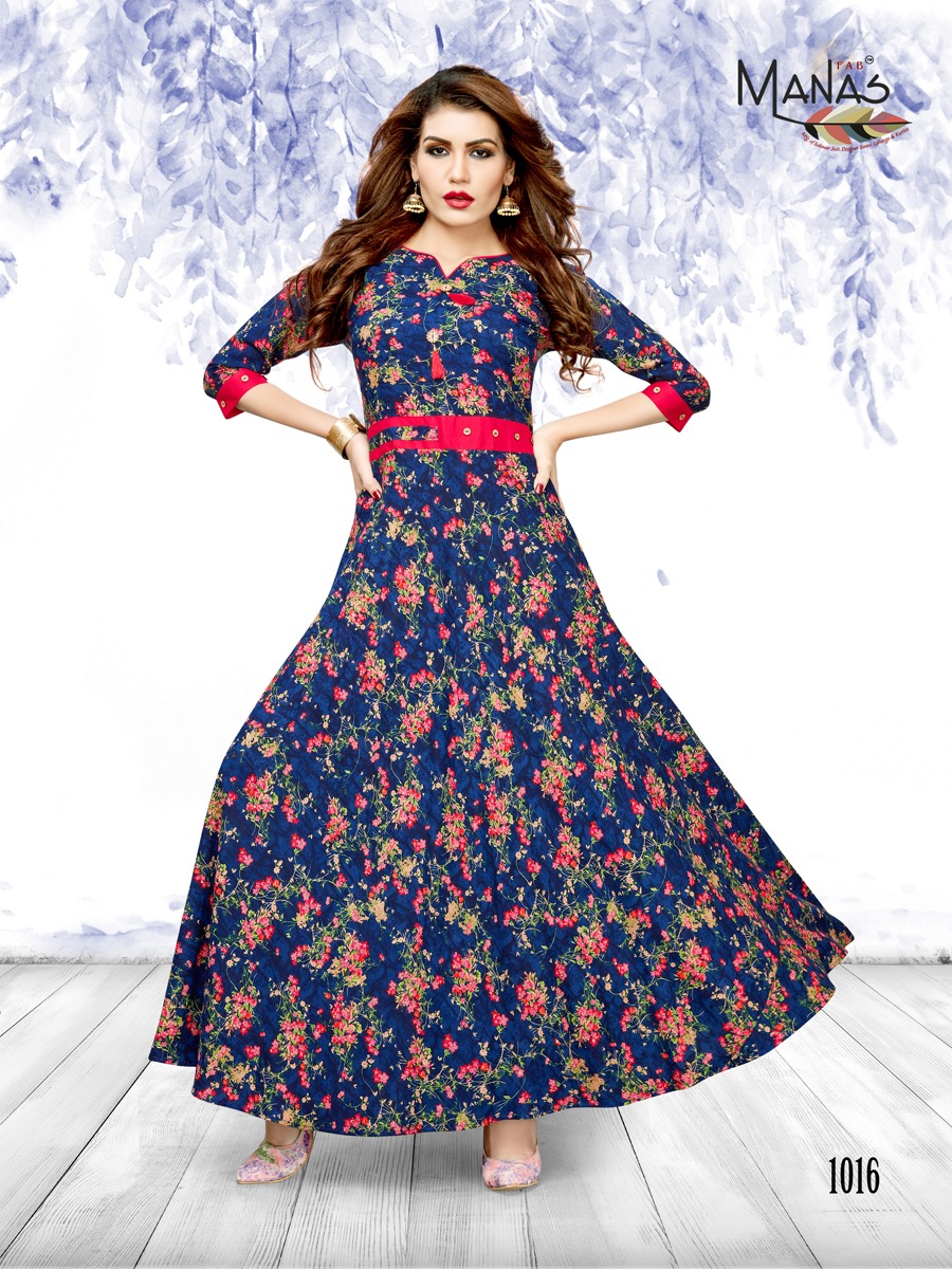 Bhakti Vol 3 By Manas 1015 Series Designer Reyon Print Gown Style Kurti Catlog Wholesale Dealer And Supplier Surat