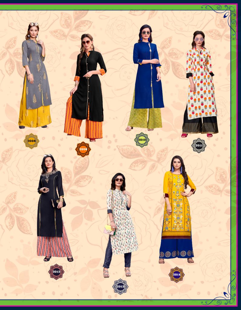 Buy Online Bibas Vol 2 By Diya Trendz Kurtis With Plazzo Wholesale Supplier Surat 14 Pcs of Full Catalogue at Wholesale Price. Looking for Bibas Vol 2 By Diya Trendz Kurtis With Plazzo Wholesale Supplier Surat Full Catalouge at Best Price? Buy Now Bibas Vol 2 By Diya Trendz Kurtis With Plazzo Wholesale Supplier Surat at Wholesale Rate of Rs 6986 with Total 14 Pcs from authroized dealer and supplier of KAJAL STYLE Brand. Cost of Each piece is just only Rs 499 which is very low and affordable price to resale the product in your retail store ,This is Surat based Wholesale Supplier & Dealer of KAJAL STYLE Brand. Click on Brand name to Know more about KAJAL STYLE Brand's products.Call or Whatsapp on 9898838984 for booking or enquiry