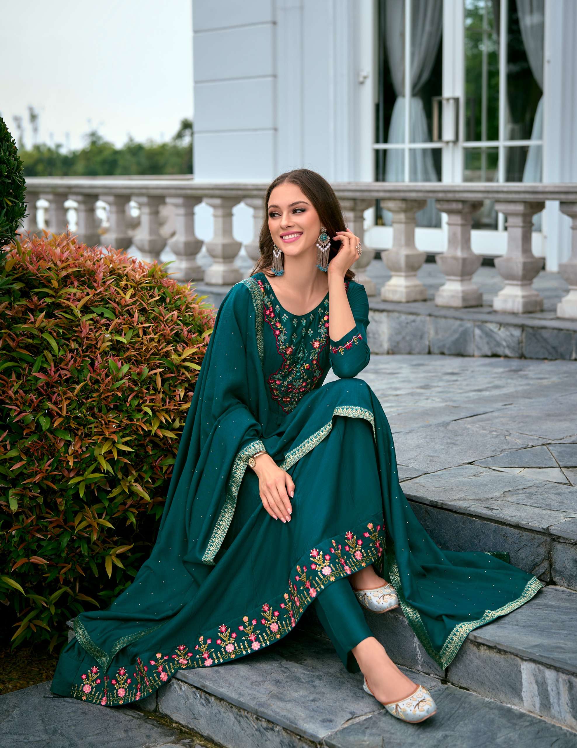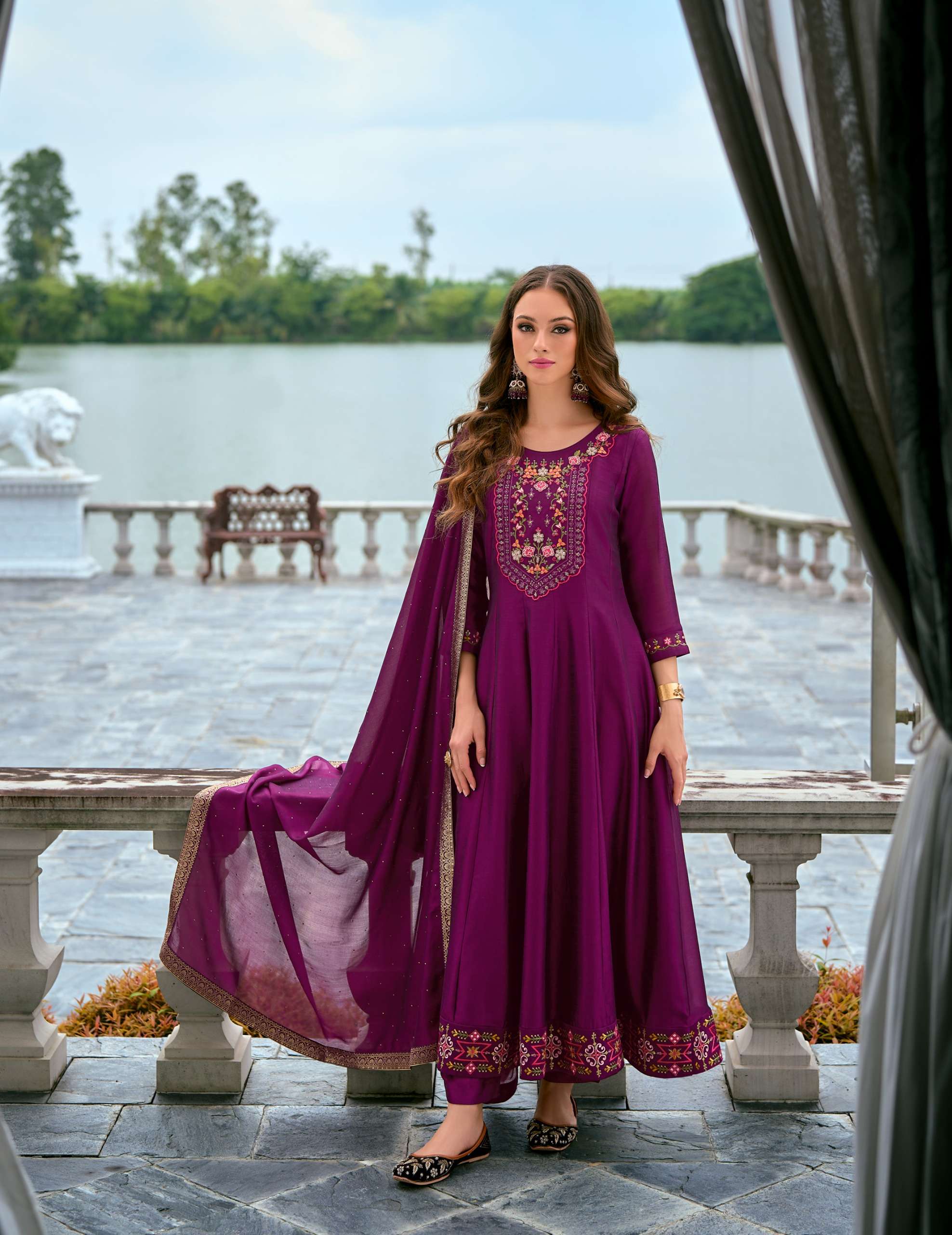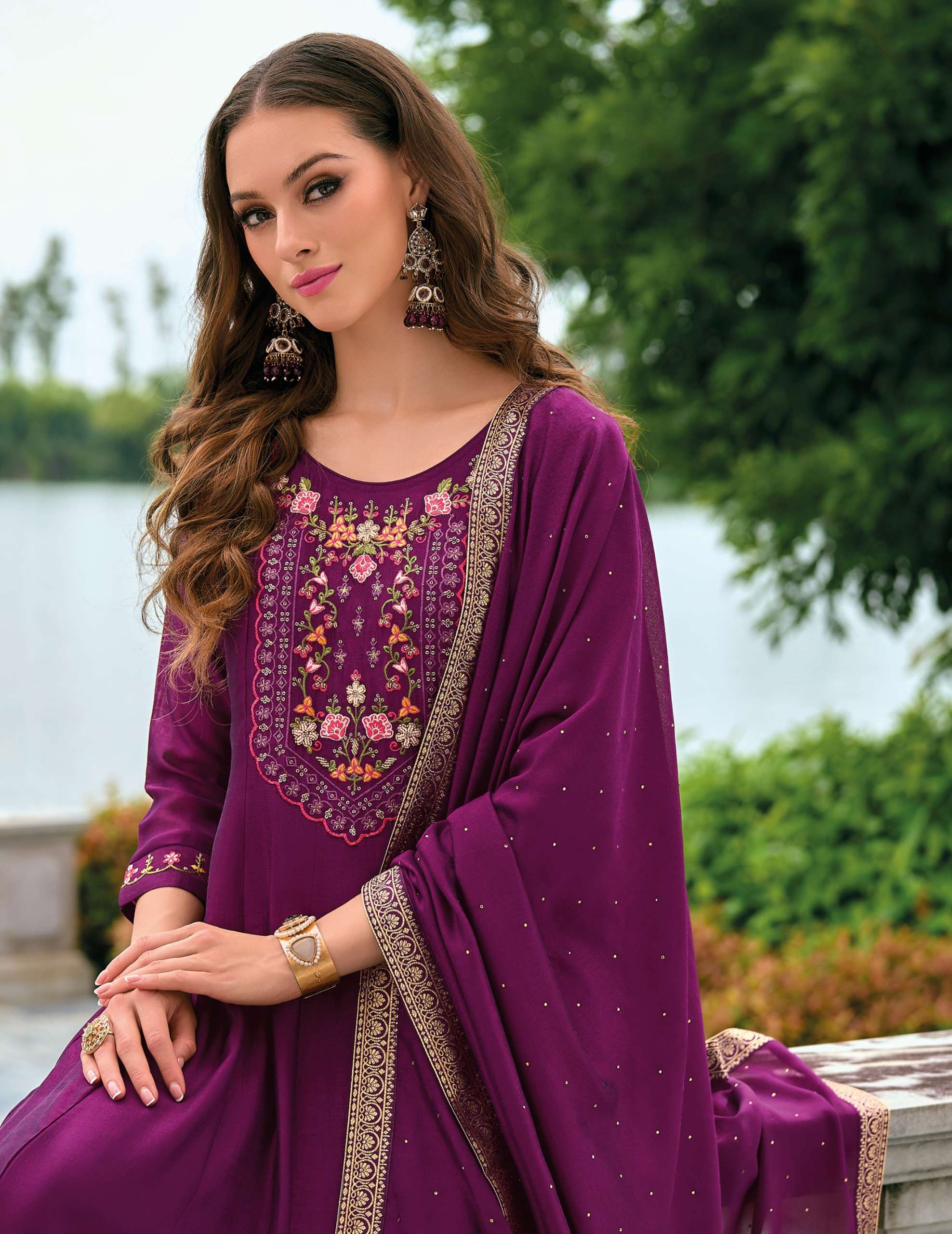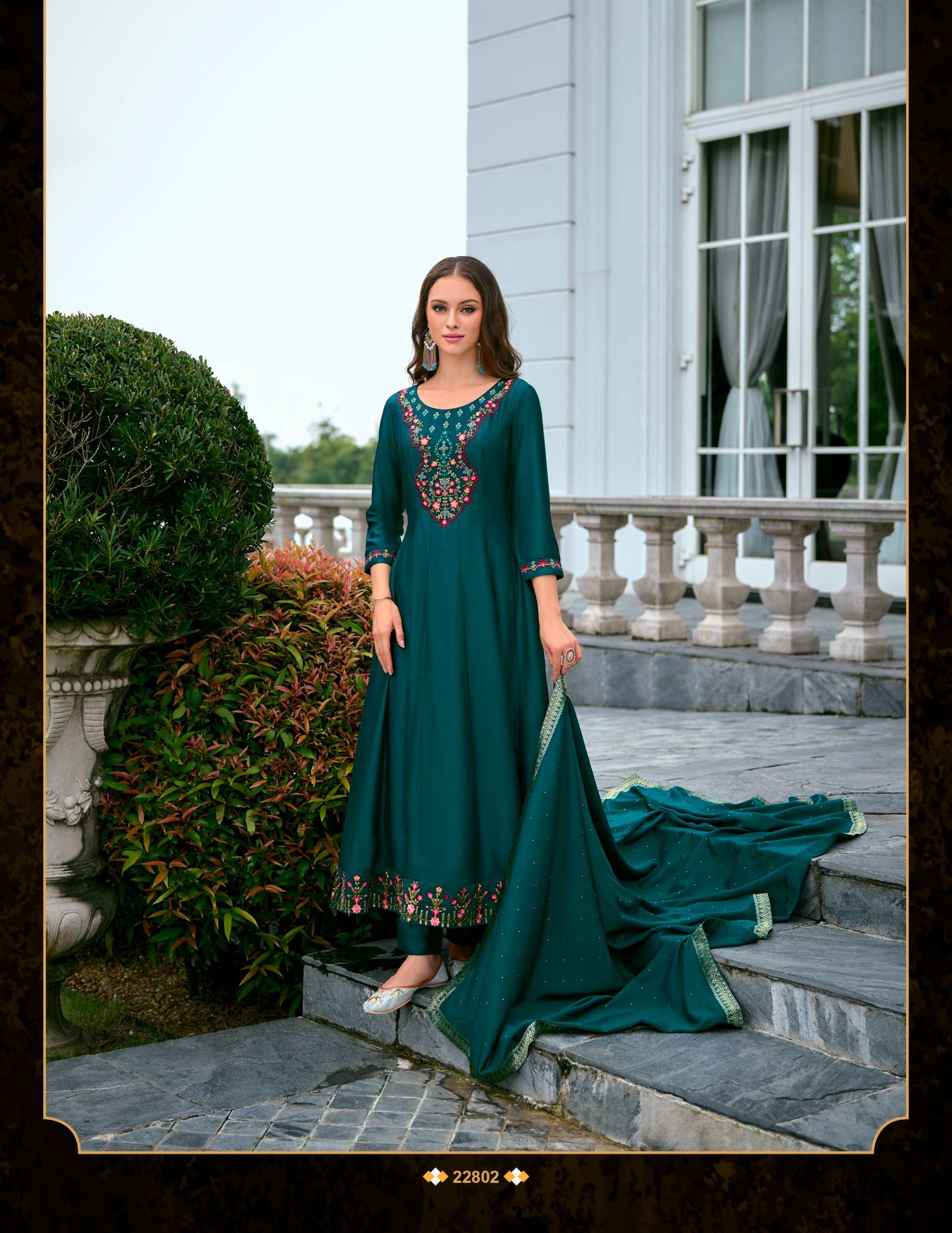 ✅*Top* 👗 -ANARKALI STYLE DRESS WITH EMBROIDERY AND HANDWORK ON VICHITRA SILK