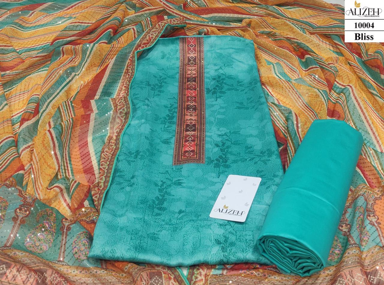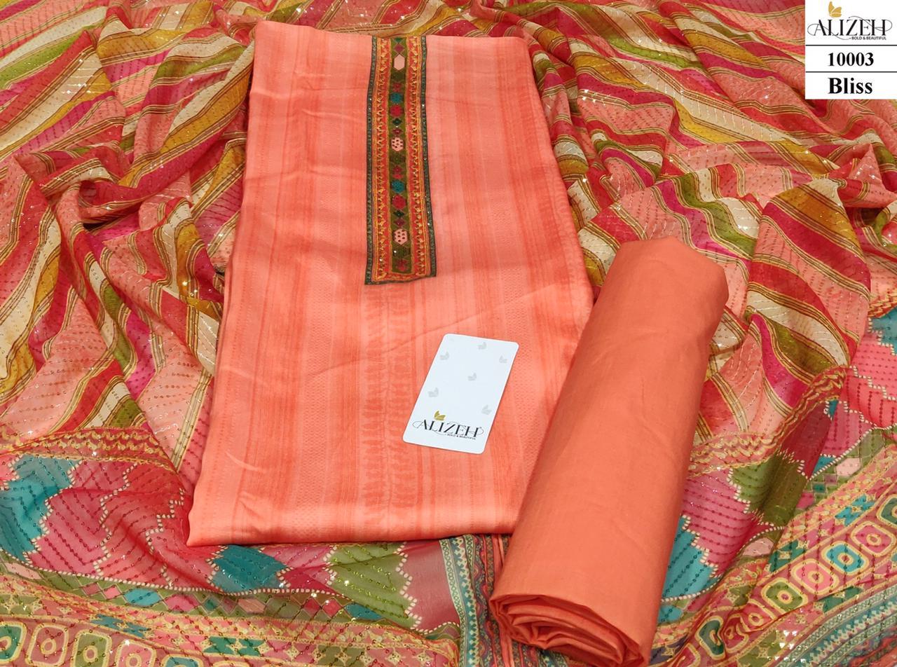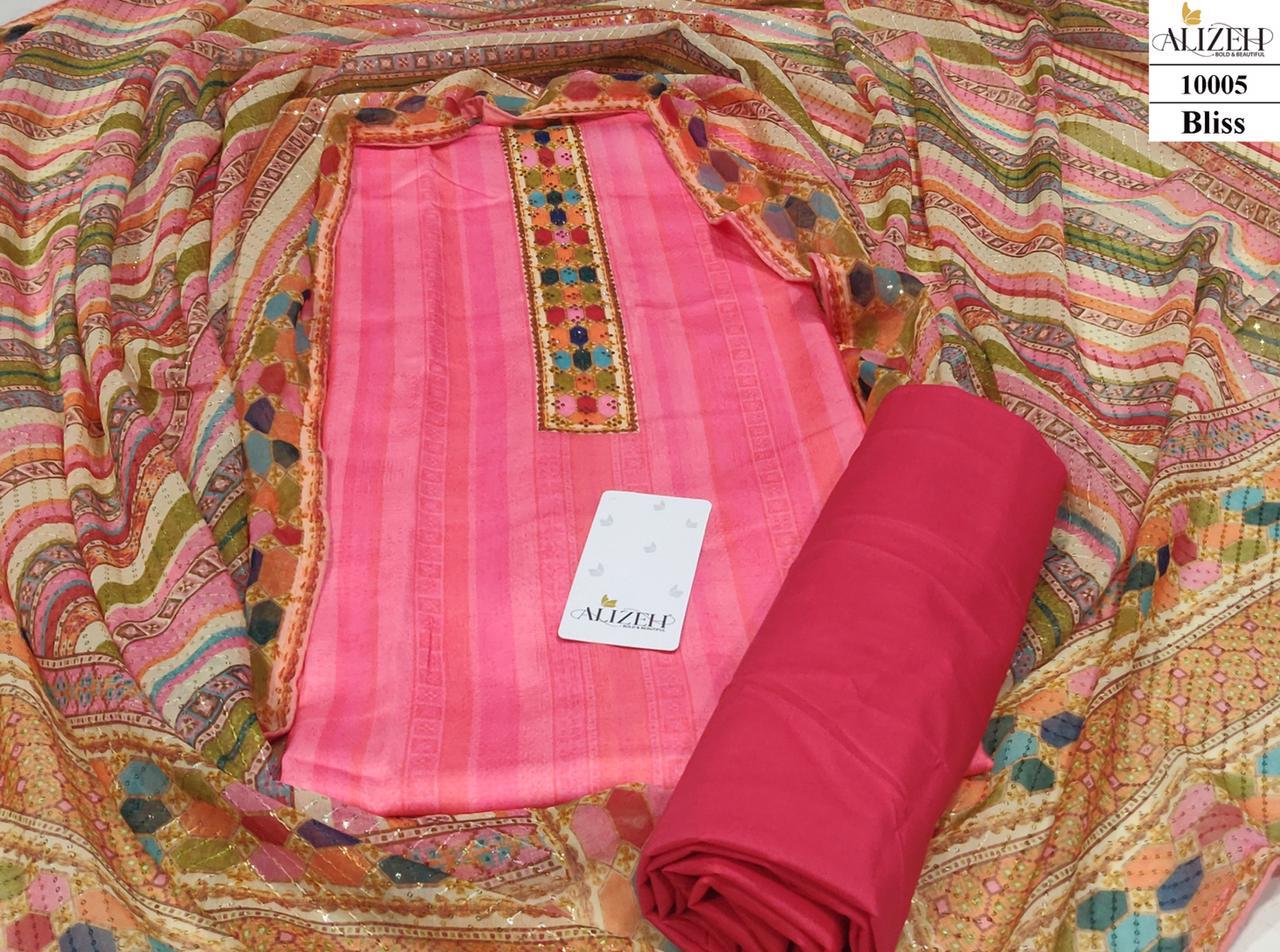 Buy Online Bliss Series 10003 To 10010 By Alizeh Single And Set Stockiest And Supplier From Surat 8 Pcs of Full Catalogue at Wholesale Price. Looking for Bliss Series 10003 To 10010 By Alizeh Single And Set Stockiest And Supplier From Surat Full Catalouge at Best Price? Buy Now Bliss Series 10003 To 10010 By Alizeh Single And Set Stockiest And Supplier From Surat at Wholesale Rate of Rs 7992 with Total 8 Pcs from authroized dealer and supplier of Brand. Cost of Each piece is just only Rs 999 which is very low and affordable price to resale the product in your retail store ,This is Surat based Wholesale Supplier & Dealer of Brand. Click on Brand name to Know more about Brand's products.Call or Whatsapp on 9898838984 for booking or enquiry