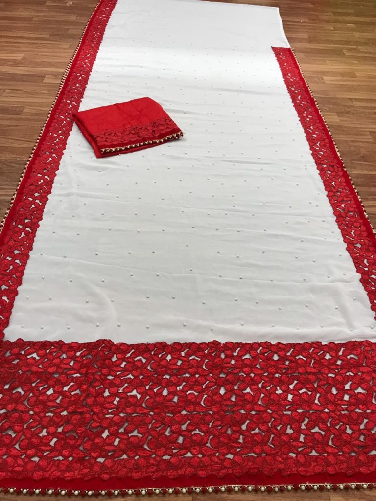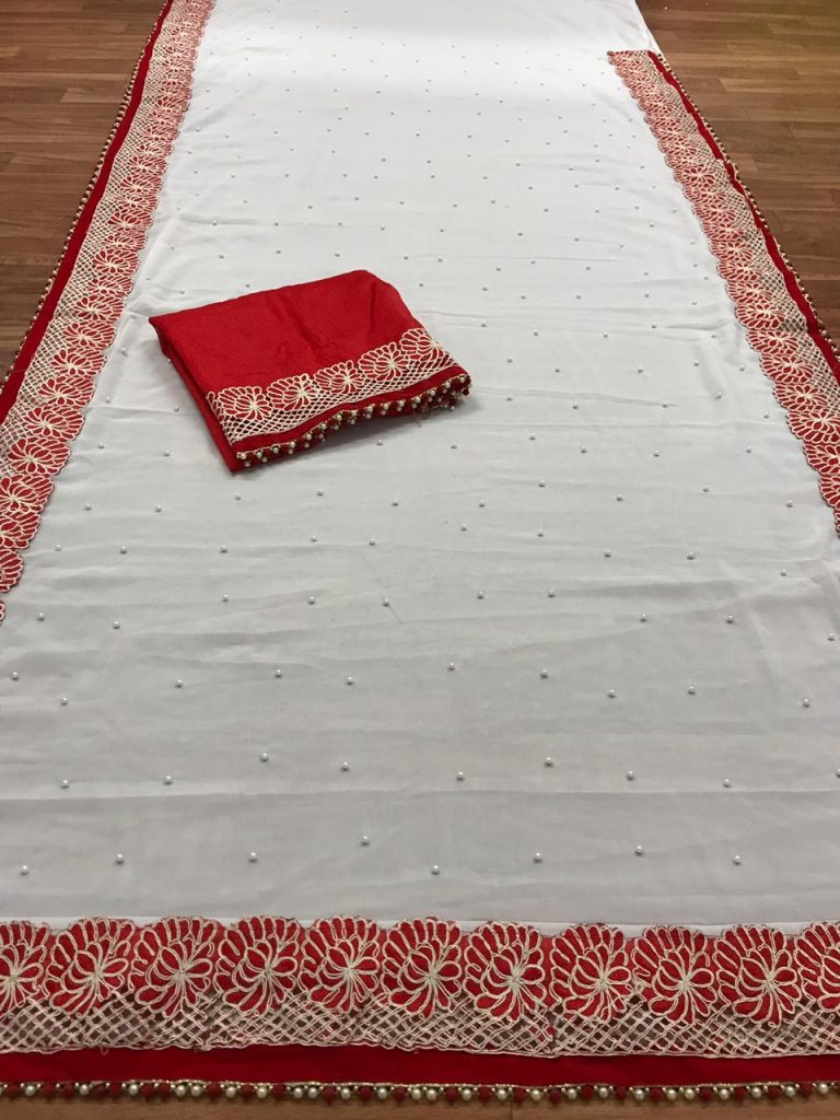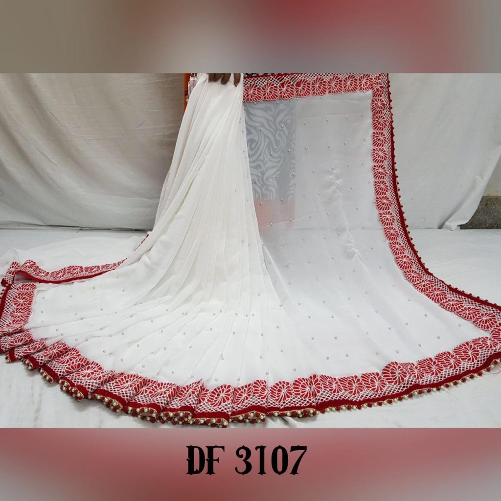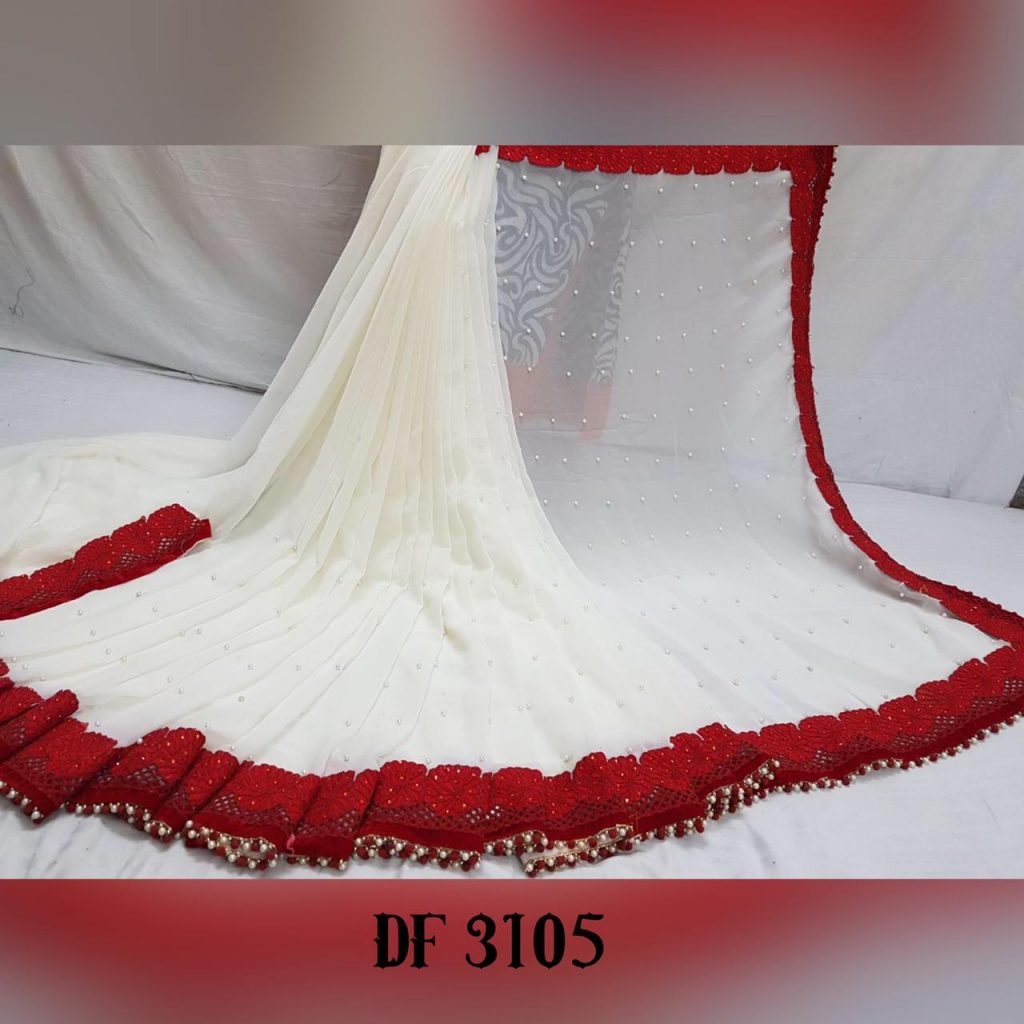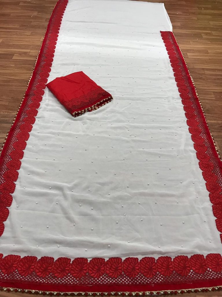 *Launching New Version Blockbuster Superhit Design* Here We Presents *CODE~ 3105,3106,3107* *PRICE-1090* Gst ship extra *SINGLE TRENDY COLOUR*? *FABRIC DETAILS*? ?Full Saree of 60 Gram georgette With Heavy Embrodery Lace Border Work ?Blouse Of Plain Red Colour Banglori Silk With Lace Border ?Saree Cut-6.30 With Blouse *Handwork Details*? New Stylish Shining Rebet Machinery Stone on Pallu & Skirt *Heavy Moti Lace Border Attached With Border* *Best Design Haves Always Best Orders*? |
