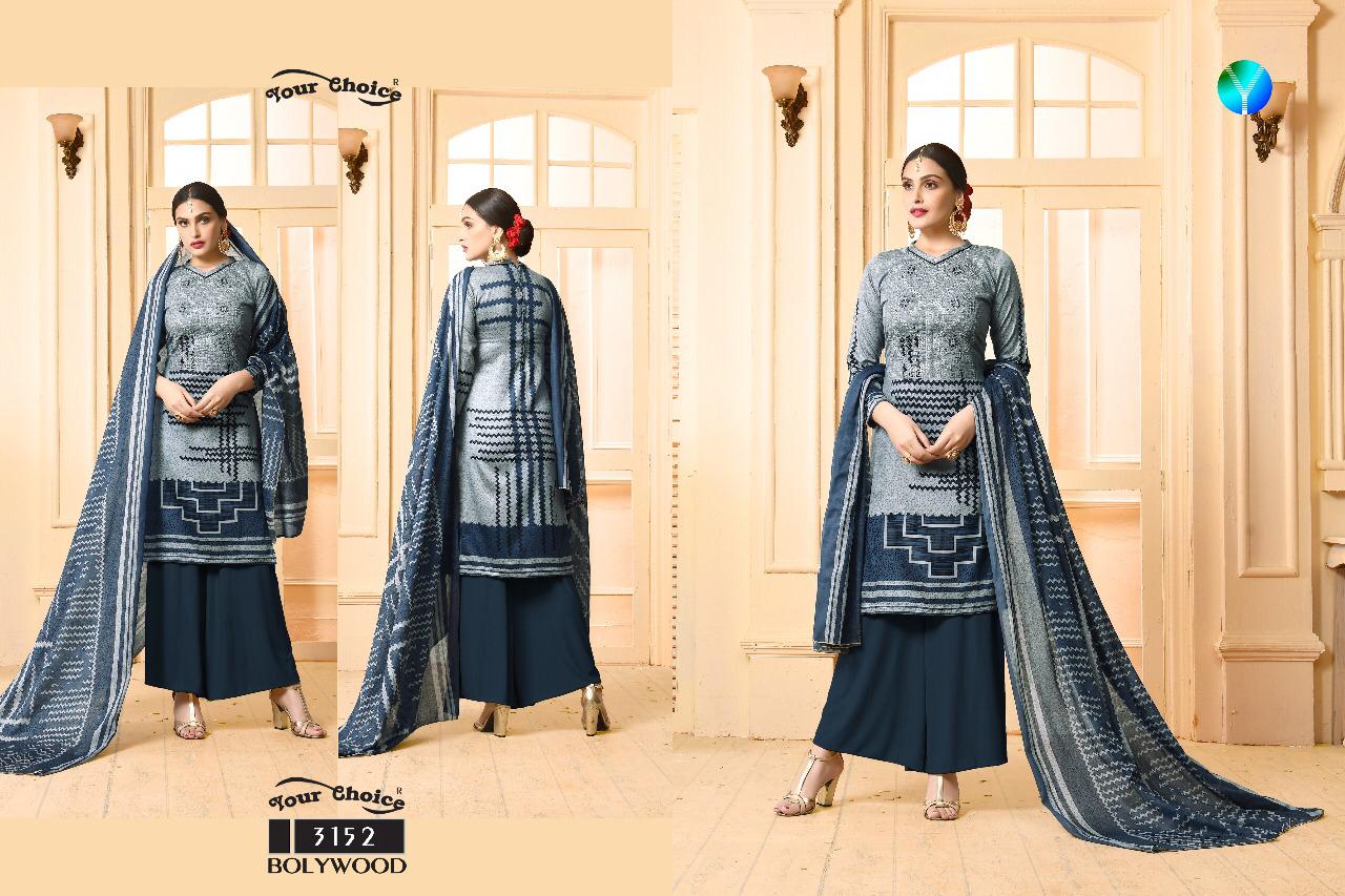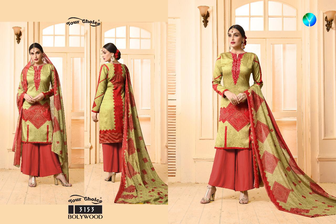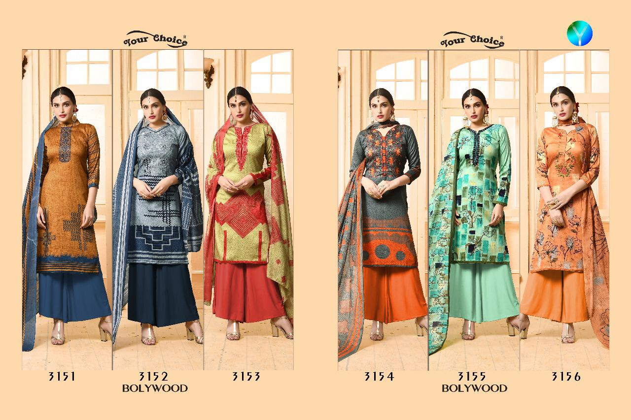 Buy Online Bollywood By Your Choice 3151 Series Fancy Jam Silk Printed Salwar Kameez Catlog Wholesale Dealer Surat 6 Pcs of Full Catalogue at Wholesale Price. Looking for Bollywood By Your Choice 3151 Series Fancy Jam Silk Printed Salwar Kameez Catlog Wholesale Dealer Surat Full Catalouge at Best Price? Buy Now Bollywood By Your Choice 3151 Series Fancy Jam Silk Printed Salwar Kameez Catlog Wholesale Dealer Surat at Wholesale Rate of Rs 4170 with Total 6 Pcs from authroized dealer and supplier of YOUR CHOICE Brand. Cost of Each piece is just only Rs 695 which is very low and affordable price to resale the product in your retail store ,This is Surat based Wholesale Supplier & Dealer of YOUR CHOICE Brand. Click on Brand name to Know more about YOUR CHOICE Brand's products.Call or Whatsapp on 9898838984 for booking or enquiry