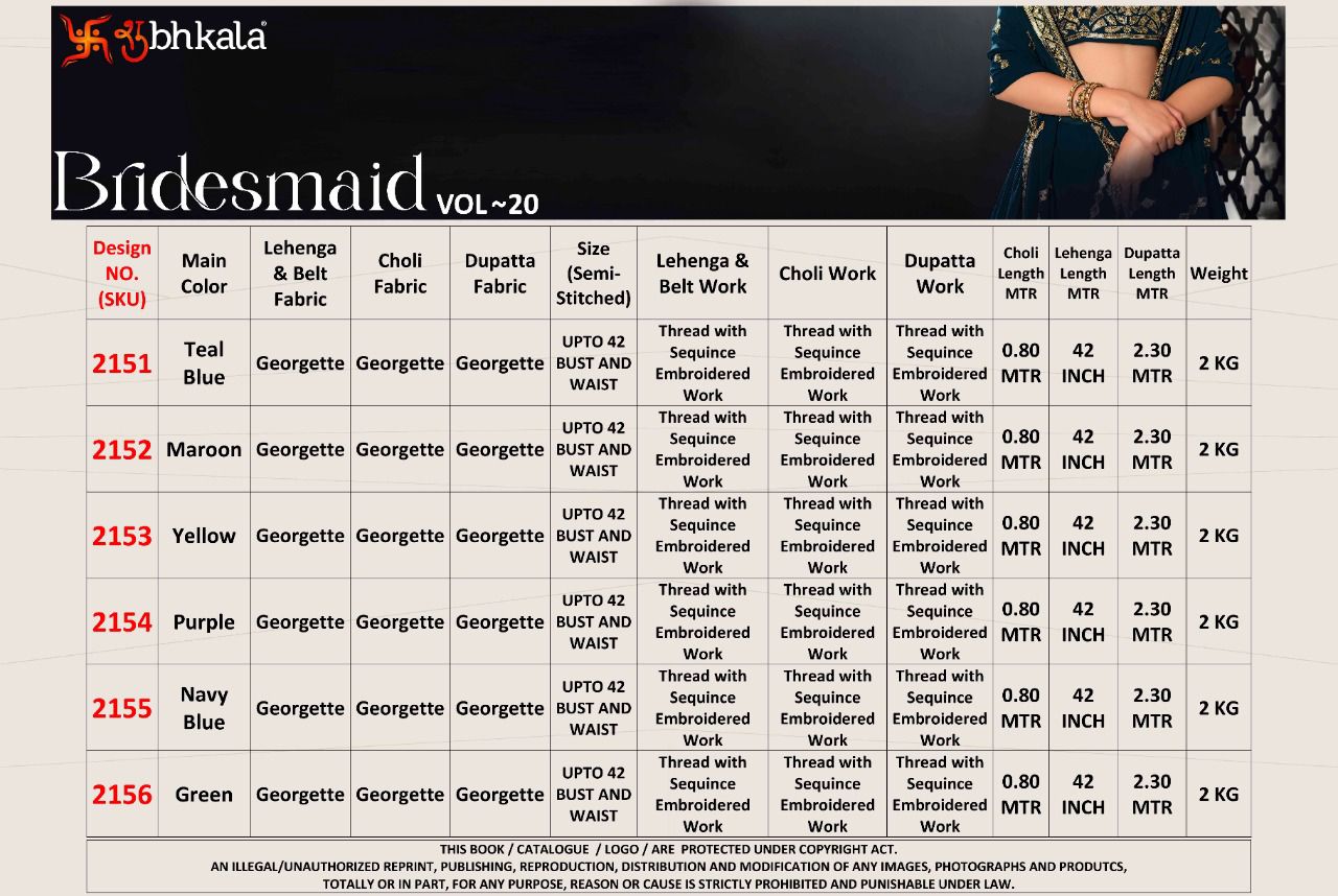 Bridesmaid Vol 20 By Shubhkala Designer Lehanga Choli Single Available Wholesaler Supplier From India