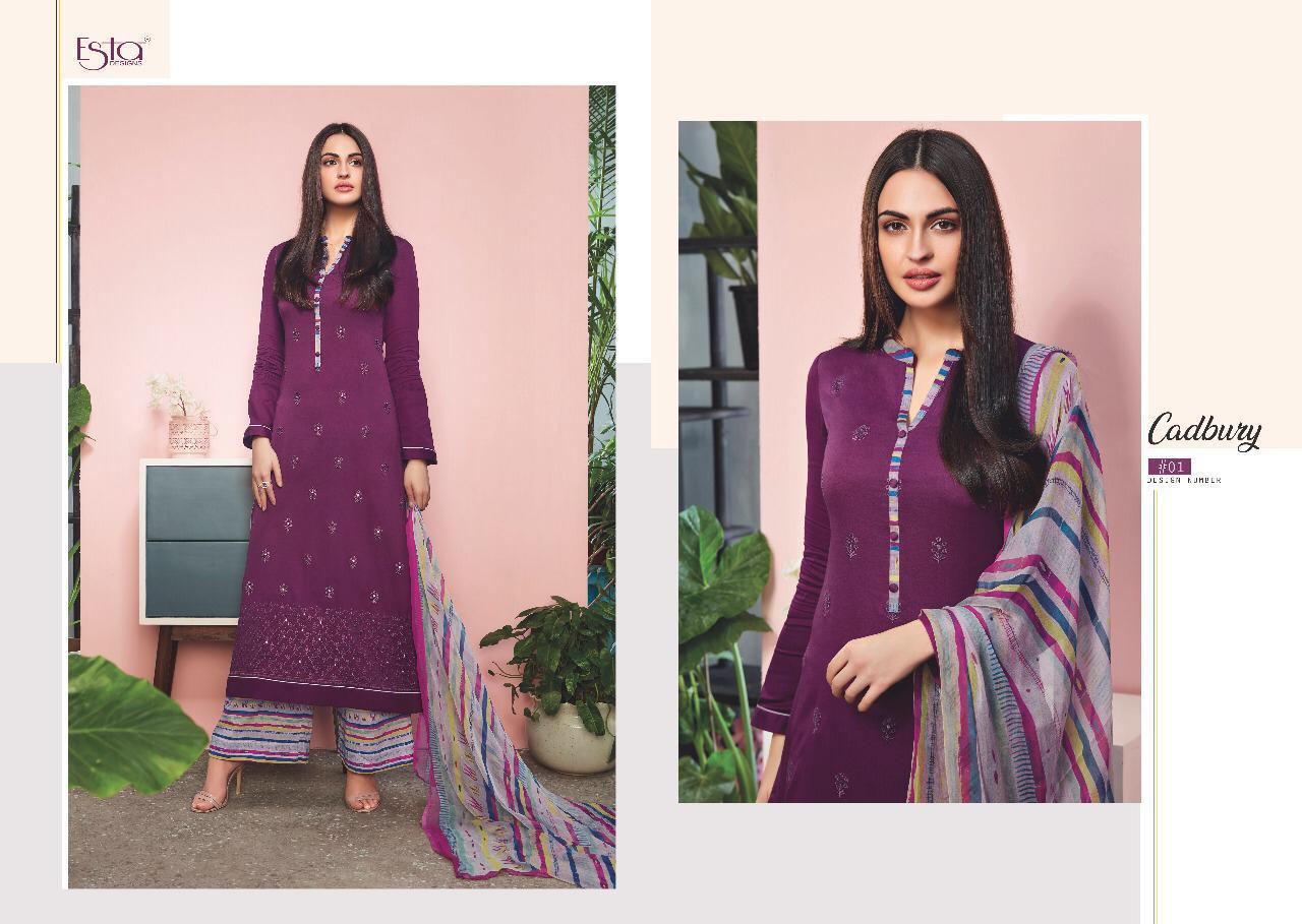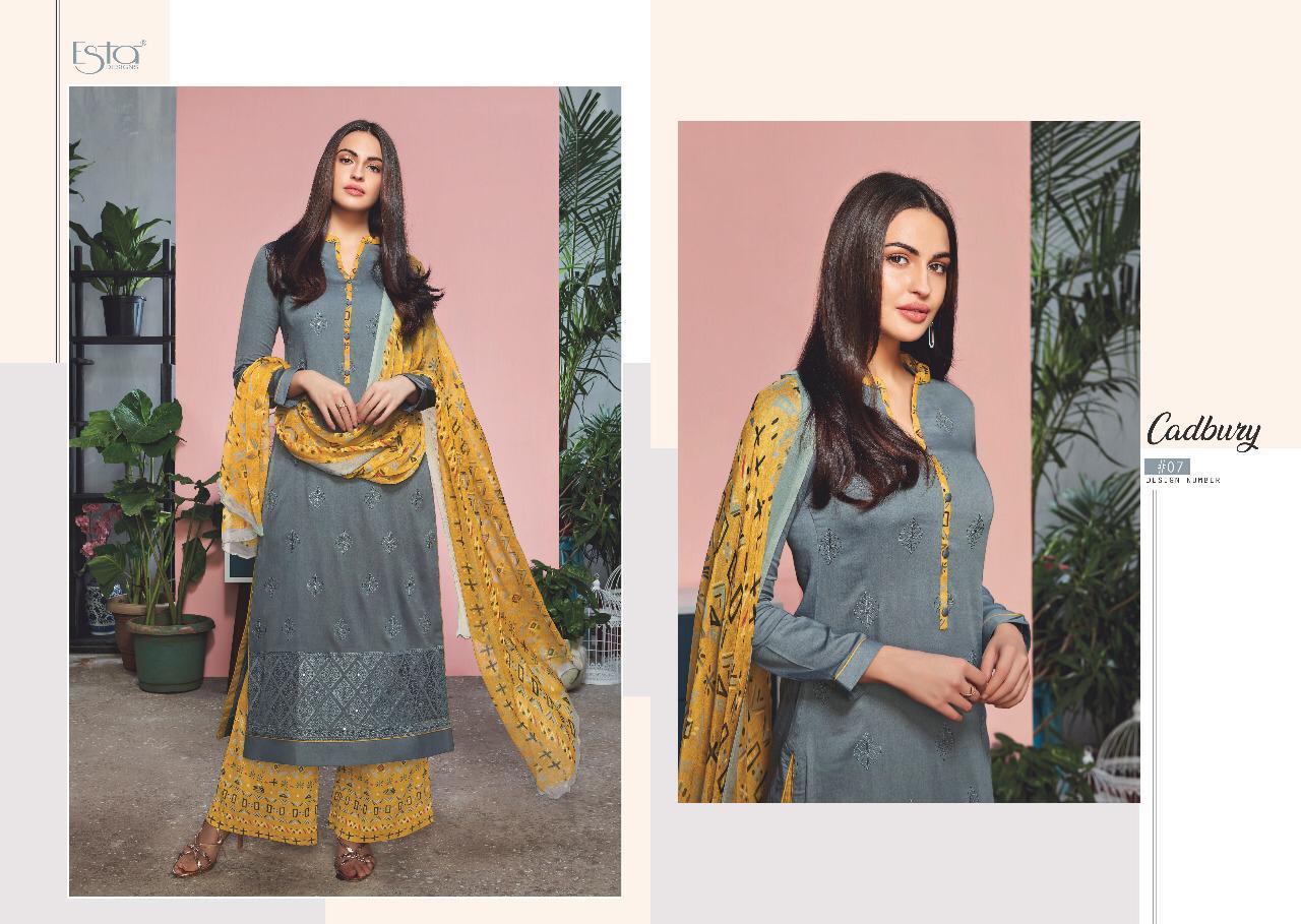 Cadbury By Esta Designs Sahiba 01 Series Fancy Cotton Satin Salwar Kameez Collection Wholesaler Surat