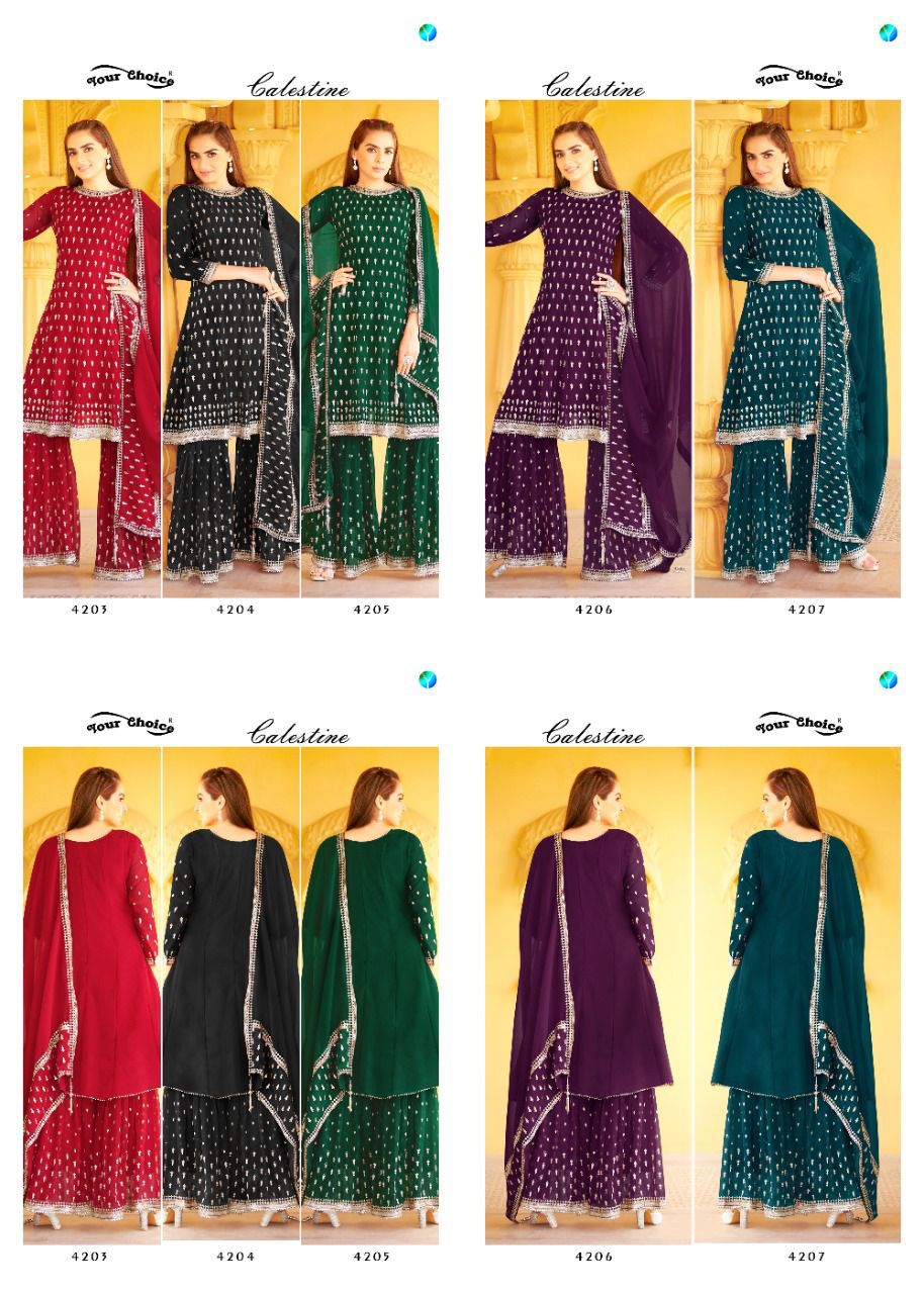 Buy Online Calestine By Your Choice Dealer From India 5 Pcs of Full Catalogue at Wholesale Price. Looking for Calestine By Your Choice Dealer From India Full Catalouge at Best Price? Buy Now Calestine By Your Choice Dealer From India at Wholesale Rate of Rs 11975 with Total 5 Pcs from authroized dealer and supplier of YOUR CHOICE Brand. Cost of Each piece is just only Rs 2395 which is very low and affordable price to resale the product in your retail store ,This is Surat based Wholesale Supplier & Dealer of YOUR CHOICE Brand. Click on Brand name to Know more about YOUR CHOICE Brand's products.Call or Whatsapp on 9898838984 for booking or enquiry