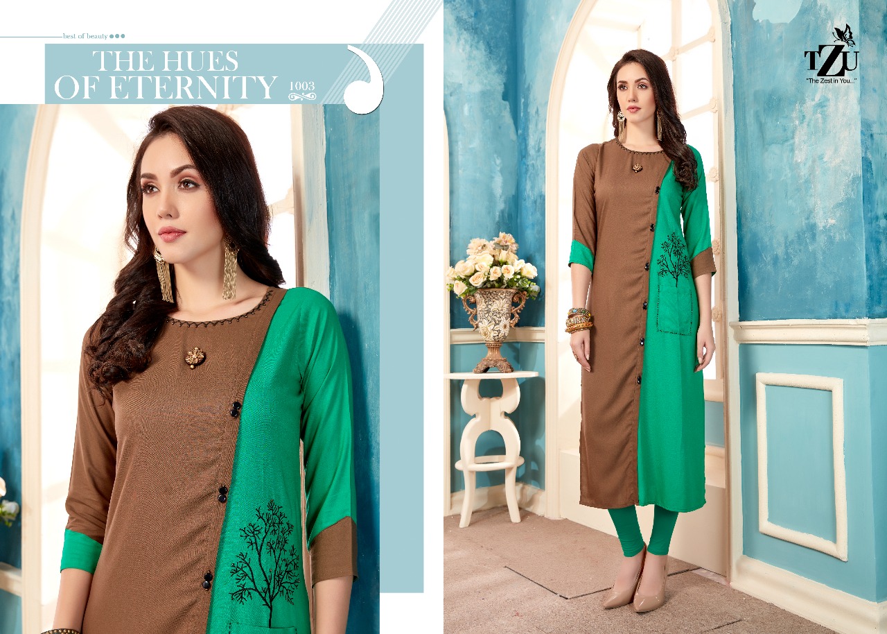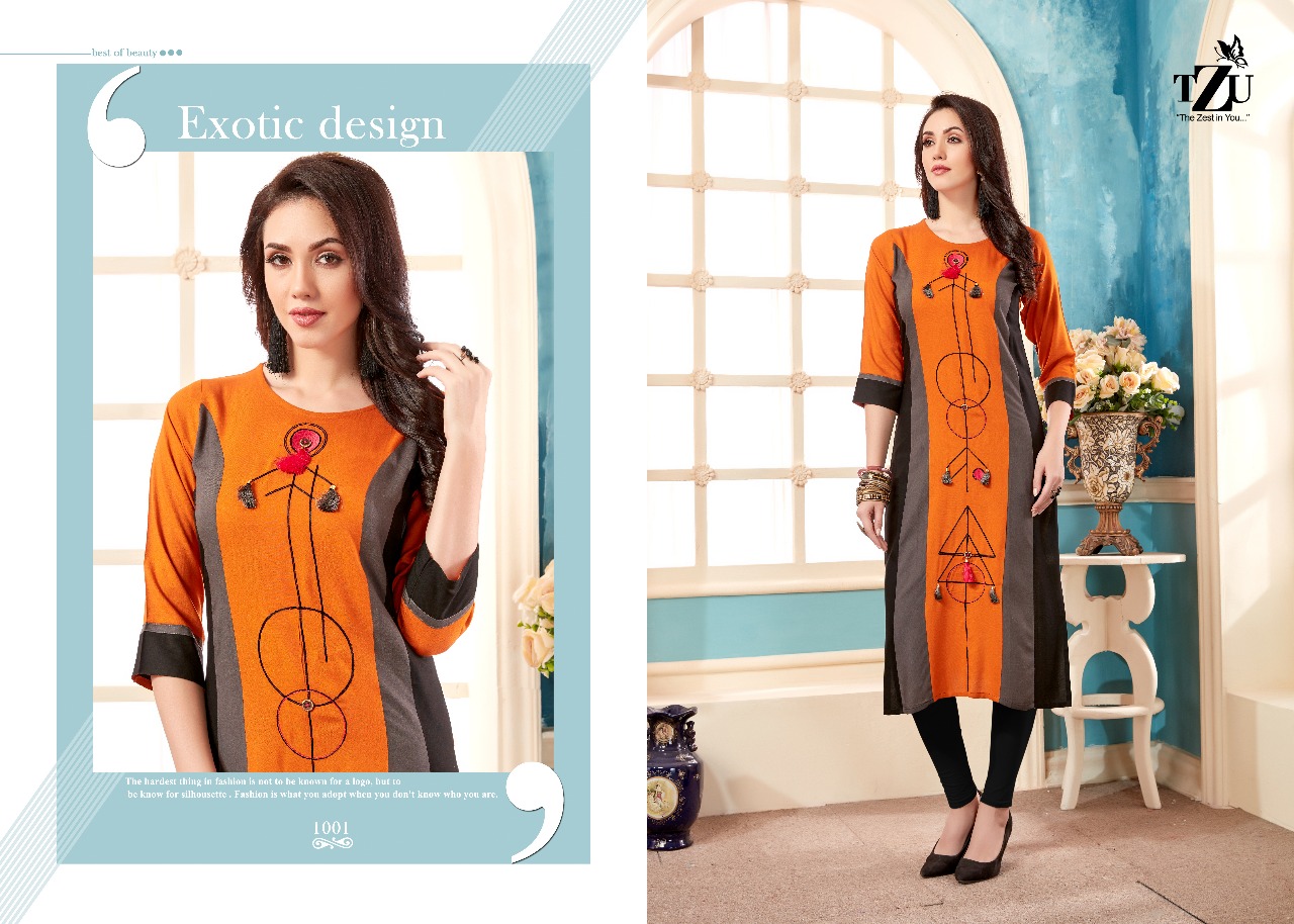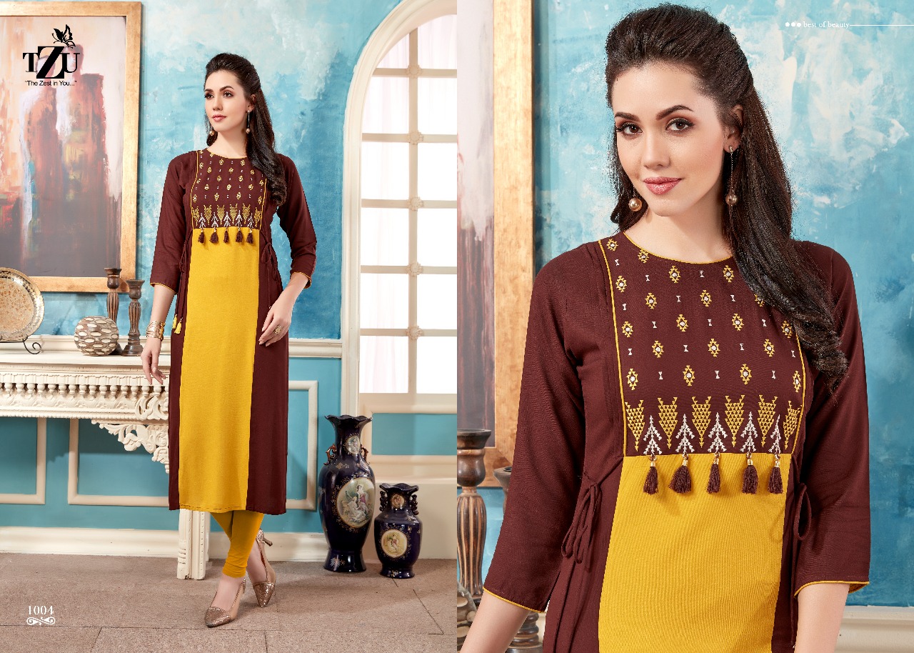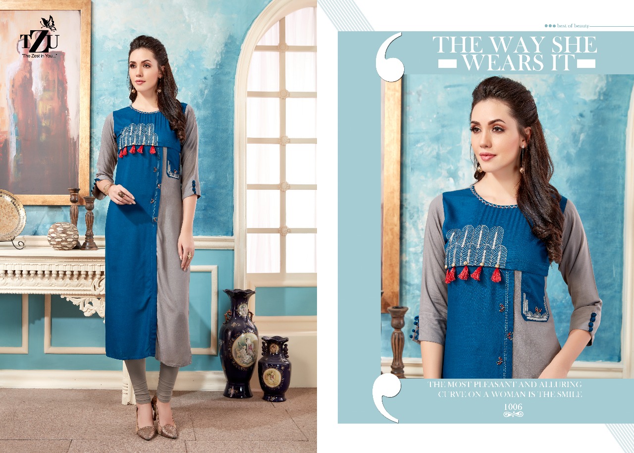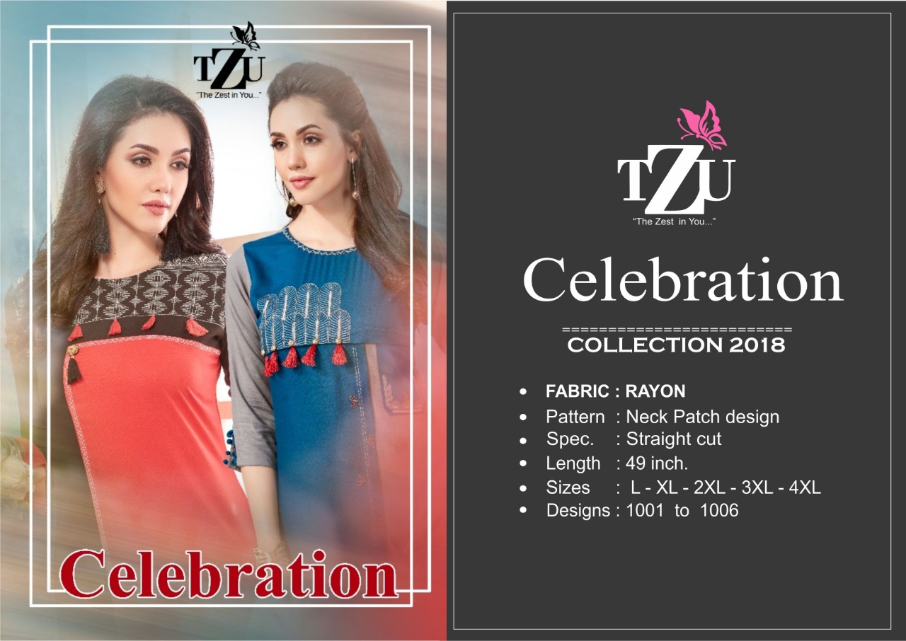 Buy Online Celebration By Tzu Lifestyle 1001 Series Fancy Reyon Printed Kurti Catlog Wholesale Dealer Surat 6 Pcs of Full Catalogue at Wholesale Price. Looking for Celebration By Tzu Lifestyle 1001 Series Fancy Reyon Printed Kurti Catlog Wholesale Dealer Surat Full Catalouge at Best Price? Buy Now Celebration By Tzu Lifestyle 1001 Series Fancy Reyon Printed Kurti Catlog Wholesale Dealer Surat at Wholesale Rate of Rs 4170 with Total 6 Pcs from authroized dealer and supplier of Brand. Cost of Each piece is just only Rs 695 which is very low and affordable price to resale the product in your retail store ,This is Surat based Wholesale Supplier & Dealer of Brand. Click on Brand name to Know more about Brand's products.Call or Whatsapp on 9898838984 for booking or enquiry