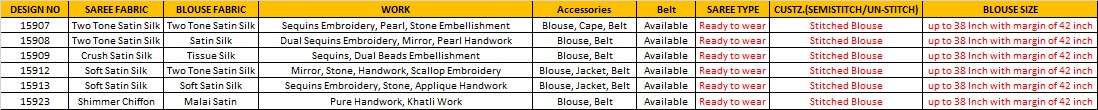 *REVISED PRICE :-* *15907-4565/-* *15908-3625/-* *15909-4355/-* *15912-4375/-* *15913-3995/-* *15917-4765/-* *15923-3575/-* +*GST EXTRA*