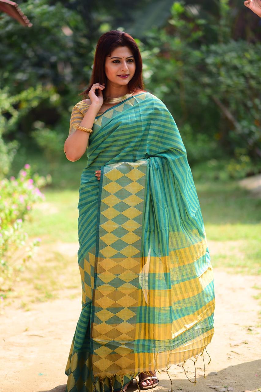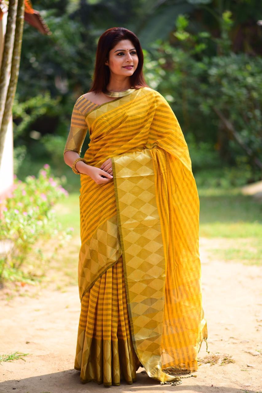 *BE IN STYLE WITH OUR NEW COLLECTION IN CHANDERI COTTON SAREE* Chanderi Handloom Weaving Cotton Saree With Lining Contrast Wooven Pallu With Royal Tassels n Resham Wooven Border With Contrast Blouse *Single Price ?680/-* 5% gst ship extra |