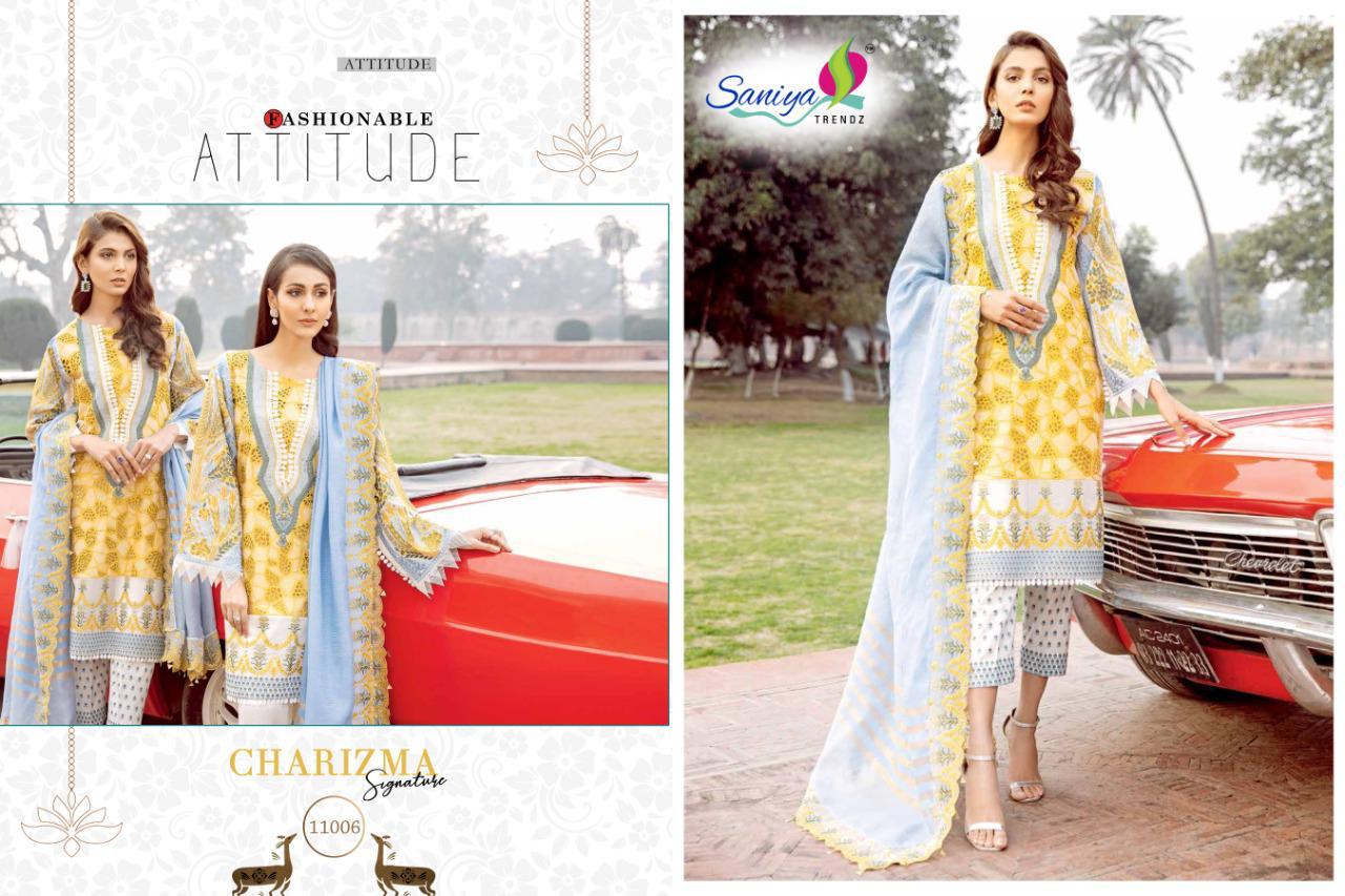 Buy Online Charizma Signature 2020 By Saniya Trendz Pakistani Suits Wholesale Supplier And Dealer Gujarat 3 Pcs of Full Catalogue at Wholesale Price. Looking for Charizma Signature 2020 By Saniya Trendz Pakistani Suits Wholesale Supplier And Dealer Gujarat Full Catalouge at Best Price? Buy Now Charizma Signature 2020 By Saniya Trendz Pakistani Suits Wholesale Supplier And Dealer Gujarat at Wholesale Rate of Rs 2997 with Total 3 Pcs from authroized dealer and supplier of Brand. Cost of Each piece is just only Rs 999 which is very low and affordable price to resale the product in your retail store ,This is Surat based Wholesale Supplier & Dealer of Brand. Click on Brand name to Know more about Brand's products.Call or Whatsapp on 9898838984 for booking or enquiry