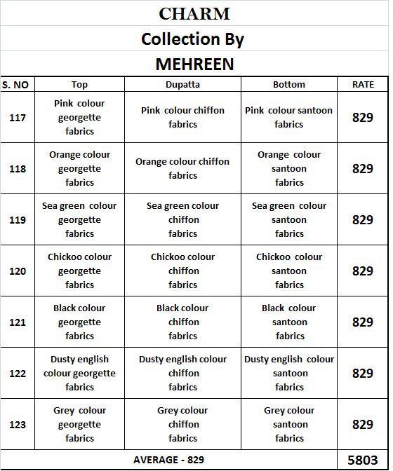 Charm By Mehreen Nakkashi Series 117 To 123 Designer Party Wear Suits Set And Single Wholesale Supplier Gujarat