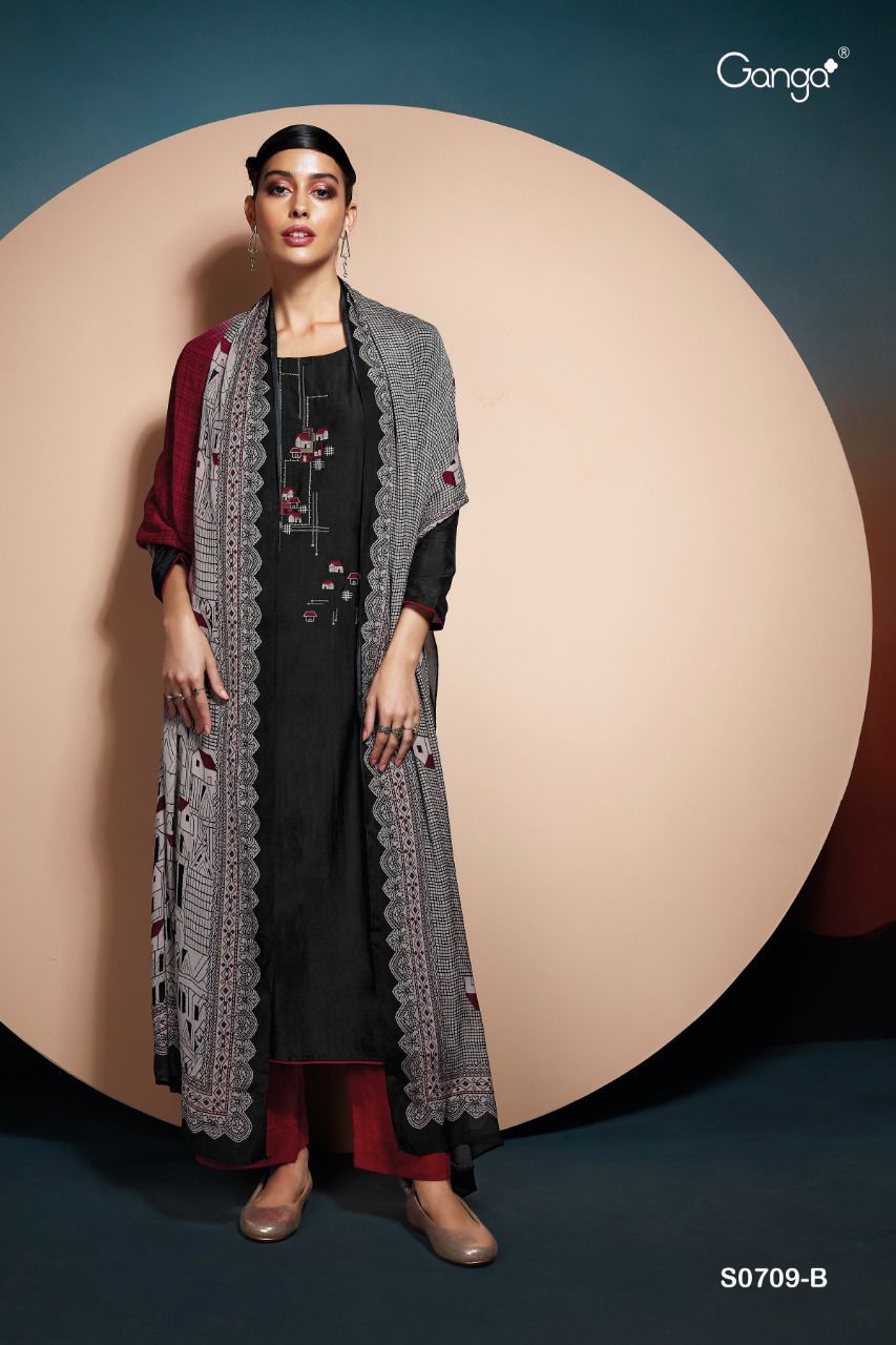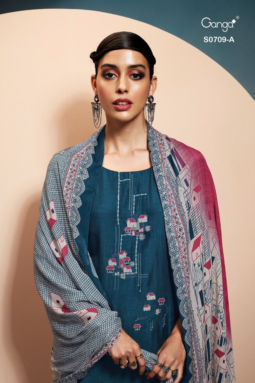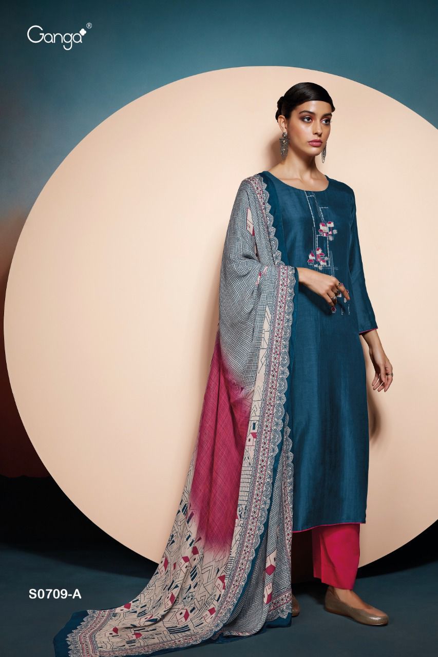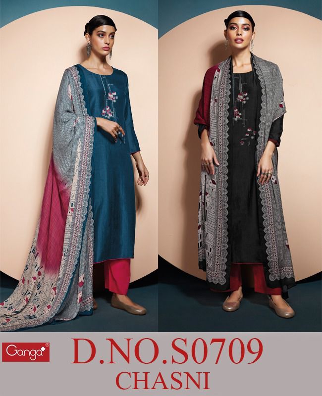 *GANGA* CHASNI 709 *TOP:* PREMIUM BEMBERG SILK WITH EMBROIDERY *BOTTOM:* PREMIUM COTTON SATIN *DUPATTA:* FINEST CHINON CHIFFON PRINTED |