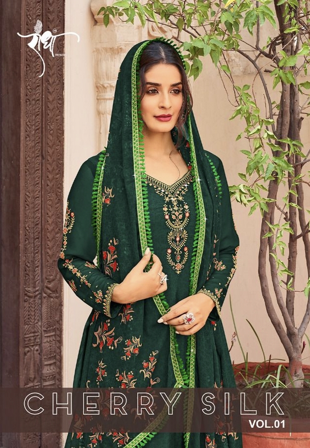 Buy Online Cherry Silk Radha Crape Embroidery Work Suit 5 Pcs of Full Catalogue at Wholesale Price. Looking for Cherry Silk Radha Crape Embroidery Work Suit Full Catalouge at Best Price? Buy Now Cherry Silk Radha Crape Embroidery Work Suit at Wholesale Rate of Rs 4975 with Total 5 Pcs from authroized dealer and supplier of Brand. Cost of Each piece is just only Rs 995 which is very low and affordable price to resale the product in your retail store ,This is Surat based Wholesale Supplier & Dealer of Brand. Click on Brand name to Know more about Brand's products.Call or Whatsapp on 9898838984 for booking or enquiry