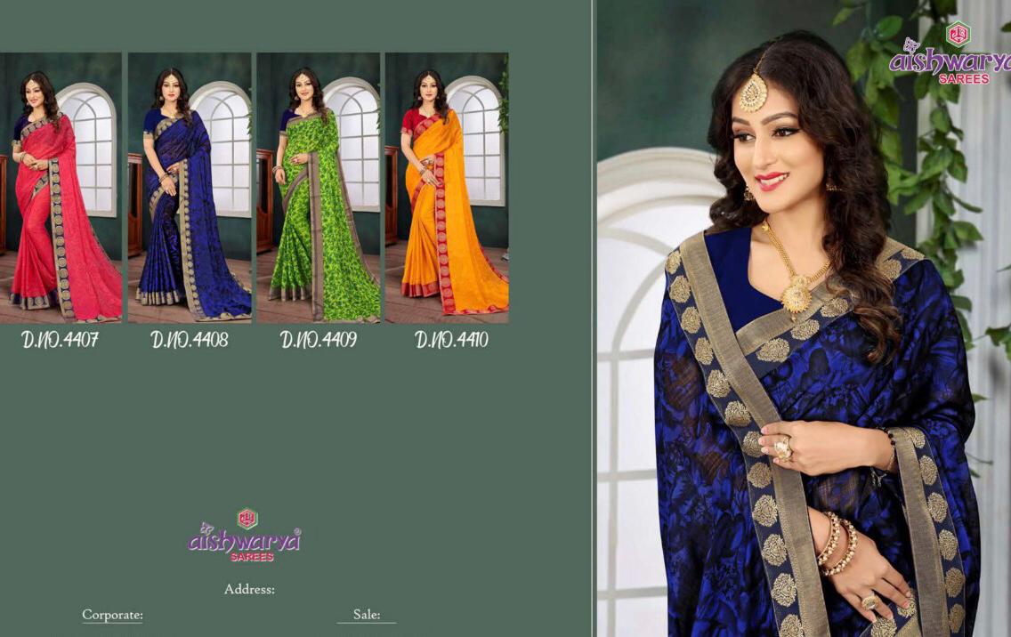 Buy Online Chiffon Silk By Aishwarya Sarees Wholesale Supplier And Dealer Gujarat 4 Pcs of Full Catalogue at Wholesale Price. Looking for Chiffon Silk By Aishwarya Sarees Wholesale Supplier And Dealer Gujarat Full Catalouge at Best Price? Buy Now Chiffon Silk By Aishwarya Sarees Wholesale Supplier And Dealer Gujarat at Wholesale Rate of Rs 2060 with Total 4 Pcs from authroized dealer and supplier of BRAND'S Brand. Cost of Each piece is just only Rs 515 which is very low and affordable price to resale the product in your retail store ,This is Surat based Wholesale Supplier & Dealer of BRAND'S Brand. Click on Brand name to Know more about BRAND'S Brand's products.Call or Whatsapp on 9898838984 for booking or enquiry