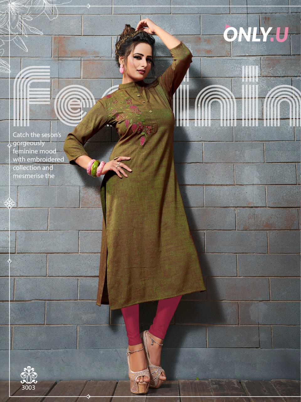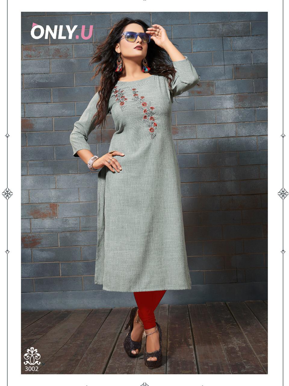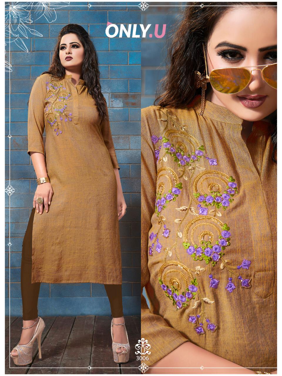 Buy Online Classic Linen 3 By Only U Reyon Embroidered Kurtis Wholesale Supplier And Trader India 6 Pcs of Full Catalogue at Wholesale Price. Looking for Classic Linen 3 By Only U Reyon Embroidered Kurtis Wholesale Supplier And Trader India Full Catalouge at Best Price? Buy Now Classic Linen 3 By Only U Reyon Embroidered Kurtis Wholesale Supplier And Trader India at Wholesale Rate of Rs 3594 with Total 6 Pcs from authroized dealer and supplier of BRAND'S Brand. Cost of Each piece is just only Rs 599 which is very low and affordable price to resale the product in your retail store ,This is Surat based Wholesale Supplier & Dealer of BRAND'S Brand. Click on Brand name to Know more about BRAND'S Brand's products.Call or Whatsapp on 9898838984 for booking or enquiry