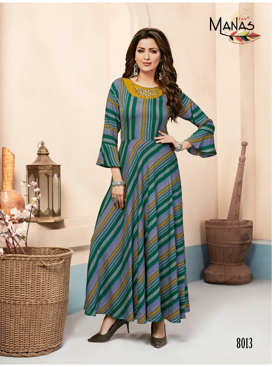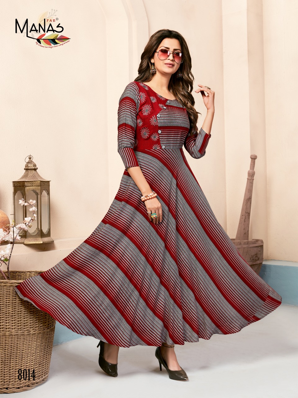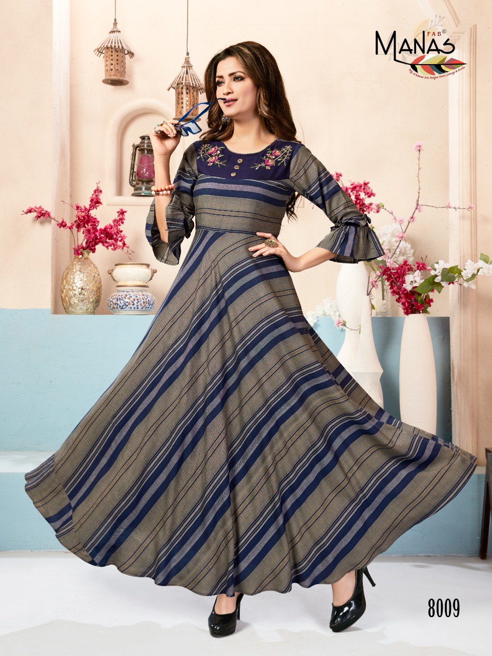 Brand Name : MANAS Catalog : *CLASSIC vol.2* Design : 8 Fabric : Rayon top dyed print Work: Embroidery work Size : M(38), L(40), XL(42), XXL(44),3XL(46) Length: 52 + Dispatched date : 07 December, 2019 Rs 725 + 5% gst |