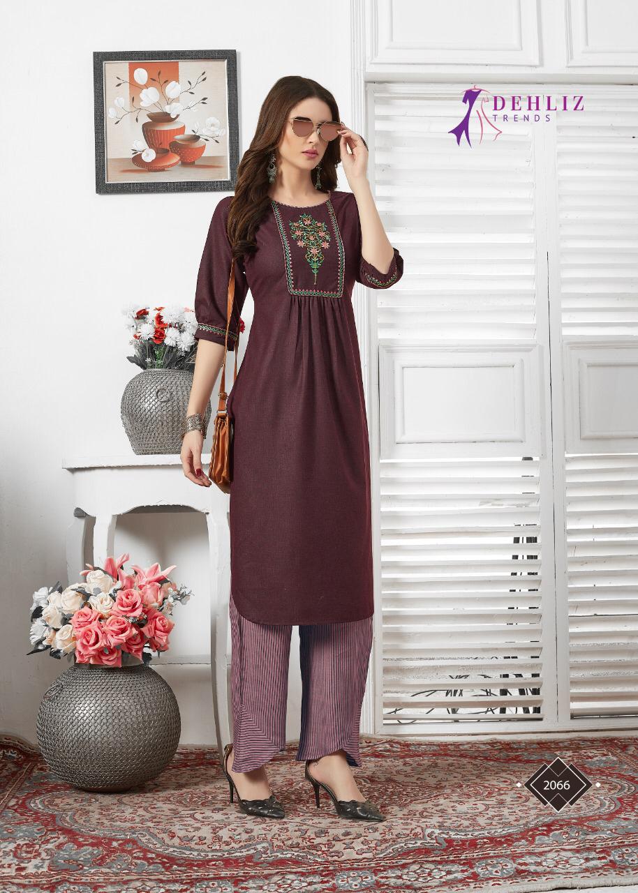 *DEHLIZ TRENDS* Catalogue name - *click vol 2* Two pis concept *Details* ?Fabrics - 1. Kurti -- RAJDHANI PREMIUM COTTON 2. Bottom---RAYON BASE STRIPE FABRICS ?Size - M(38) L(40) XL(42) XXL(44) Designs - 6? pcs ? Rate : 7?3?5? only Set To Set . GST 5 Percent Extra. Delivery from tomorrow |