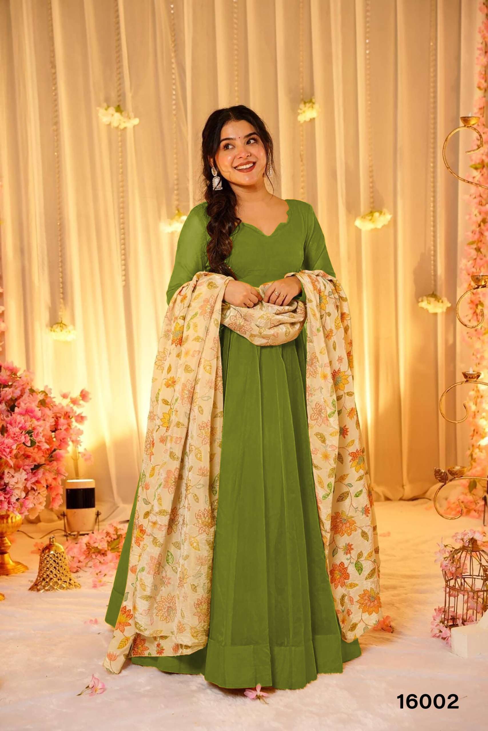 Presents this stunning Beautiful Ethnic wear flared gown set with contrast matching dupatta collection (set of 4 beautiful design 16001 to 16004)