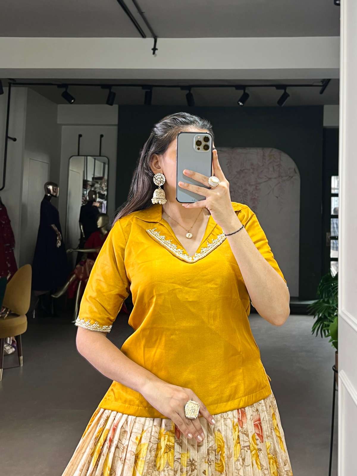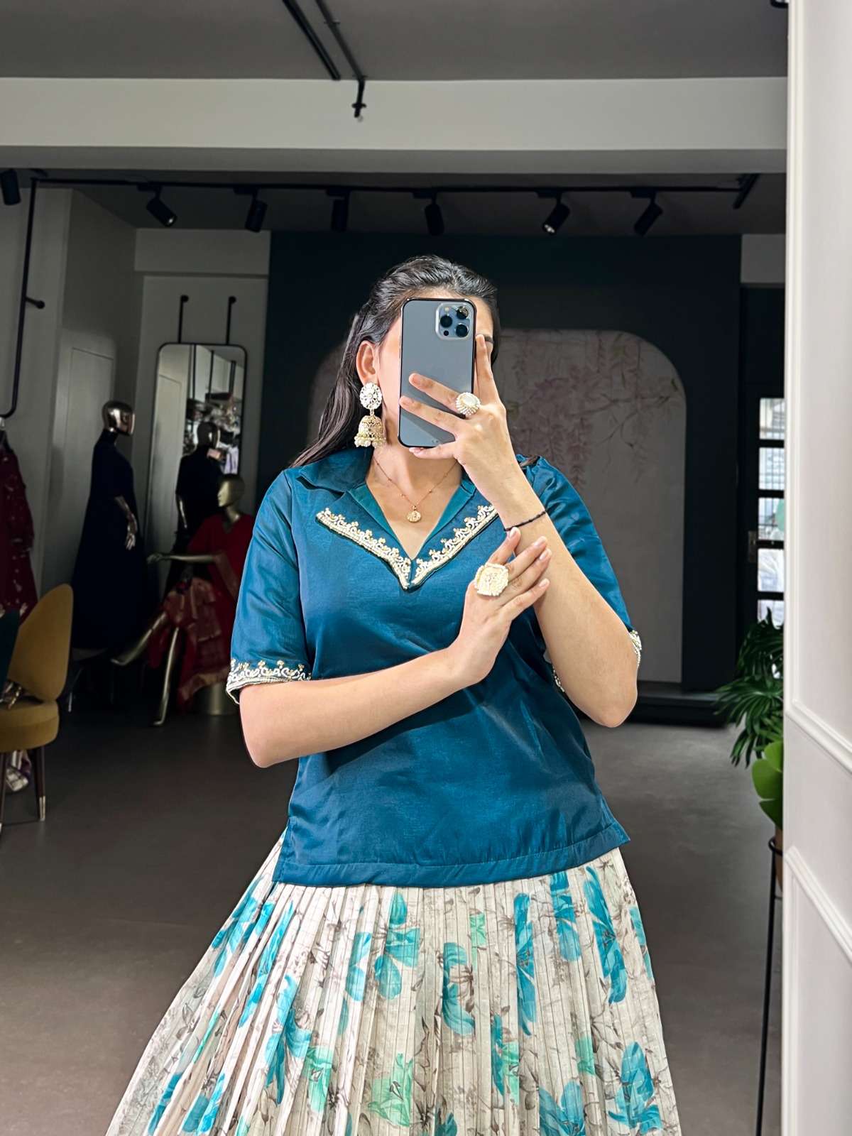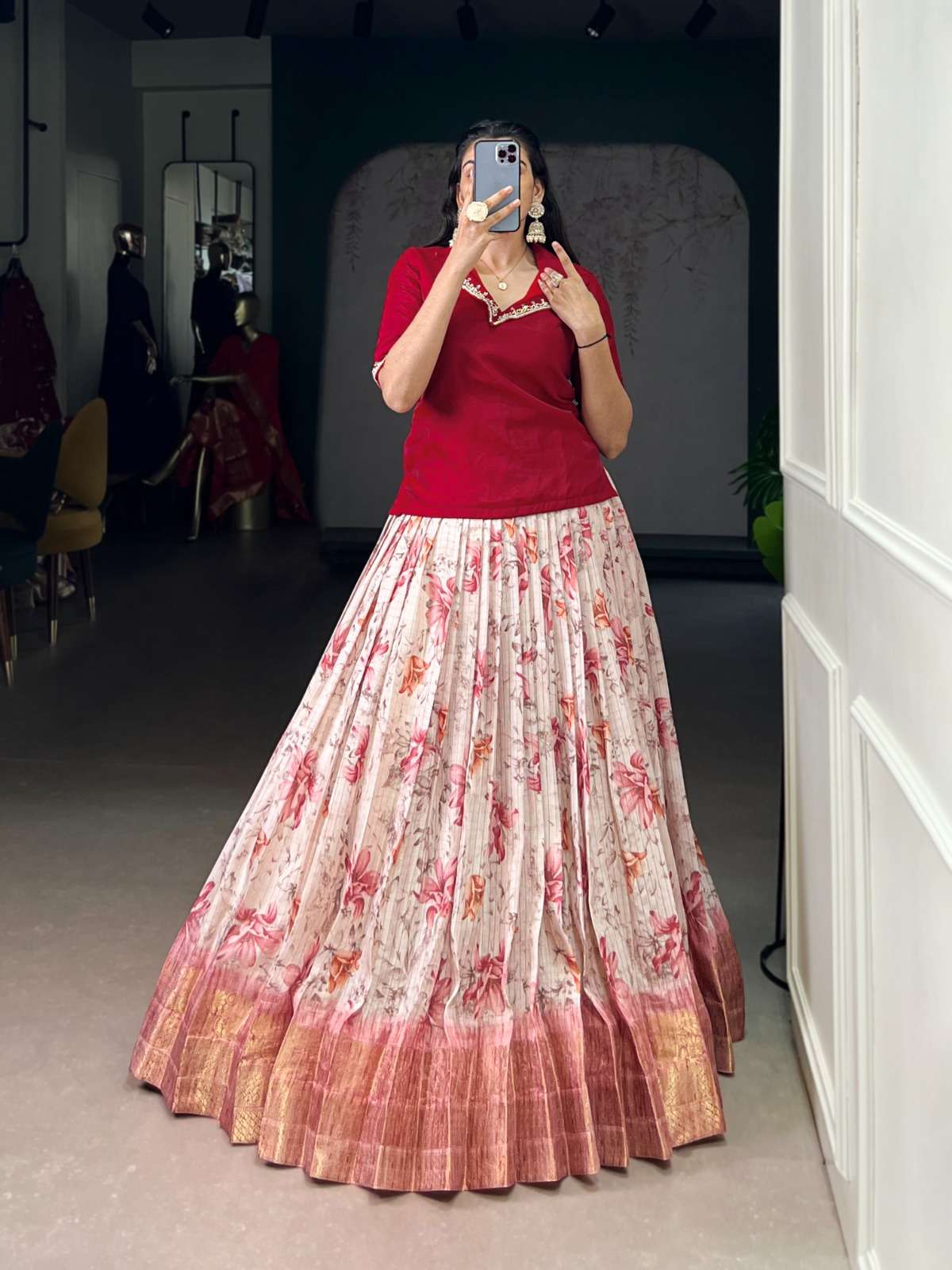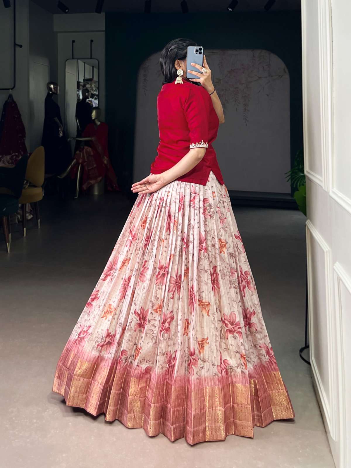 Every occasion in style with these elegant lehenga co-ords — featuring soft floral prints, luxurious borders, and vibrant blouses that radiate pure festive energy. 🌼