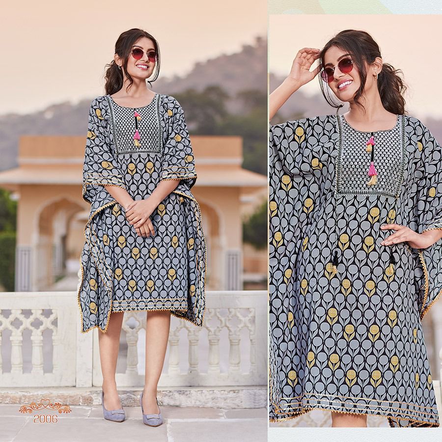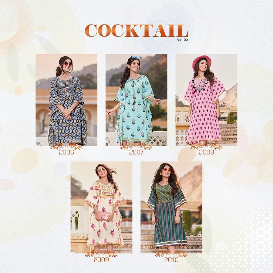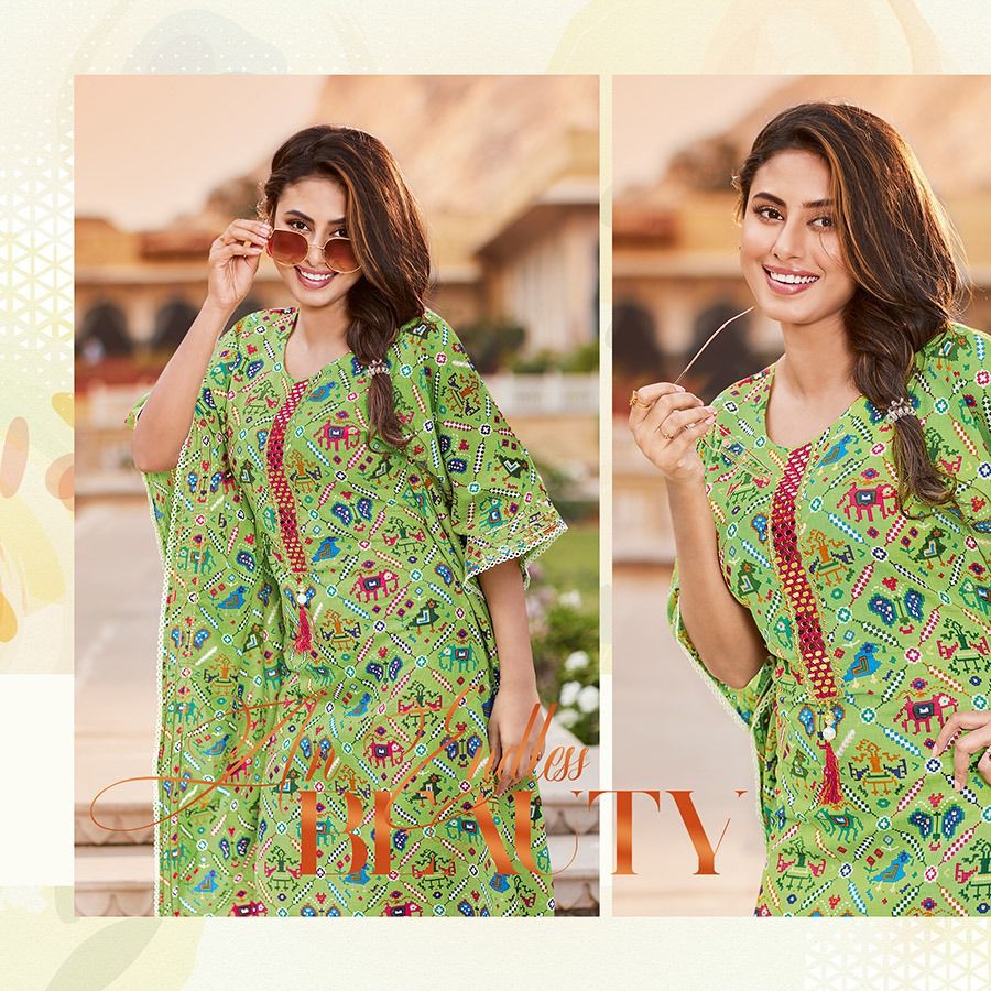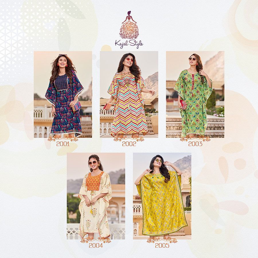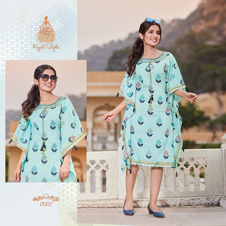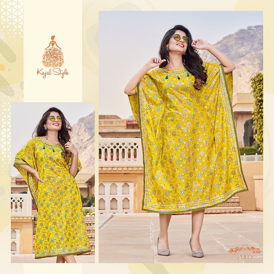An elegant appearance Kaftaan Designs for you ? ? ? *KAJAL STYLE* Catalogue name: ?*_Cocktail Vol.2 (Kaftan) _*? ?Details: ?Pattern :- *Kaftan* *?Fabrics* *?? Heavy Cotton* *?? Fancy Embroidery work* ?Size - *S M L XL 2XL 3XL 4XL* ? Length Â?> *44* ?Designs - *10pcs* Rate- 515/- per pcs Set to set ??????hurryyy uppp....Book your order now...????????? Regards, *Kajal style * |