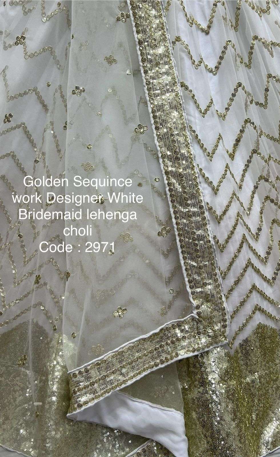 Golden Sequince work Designer White Bridemaid lehenga choli