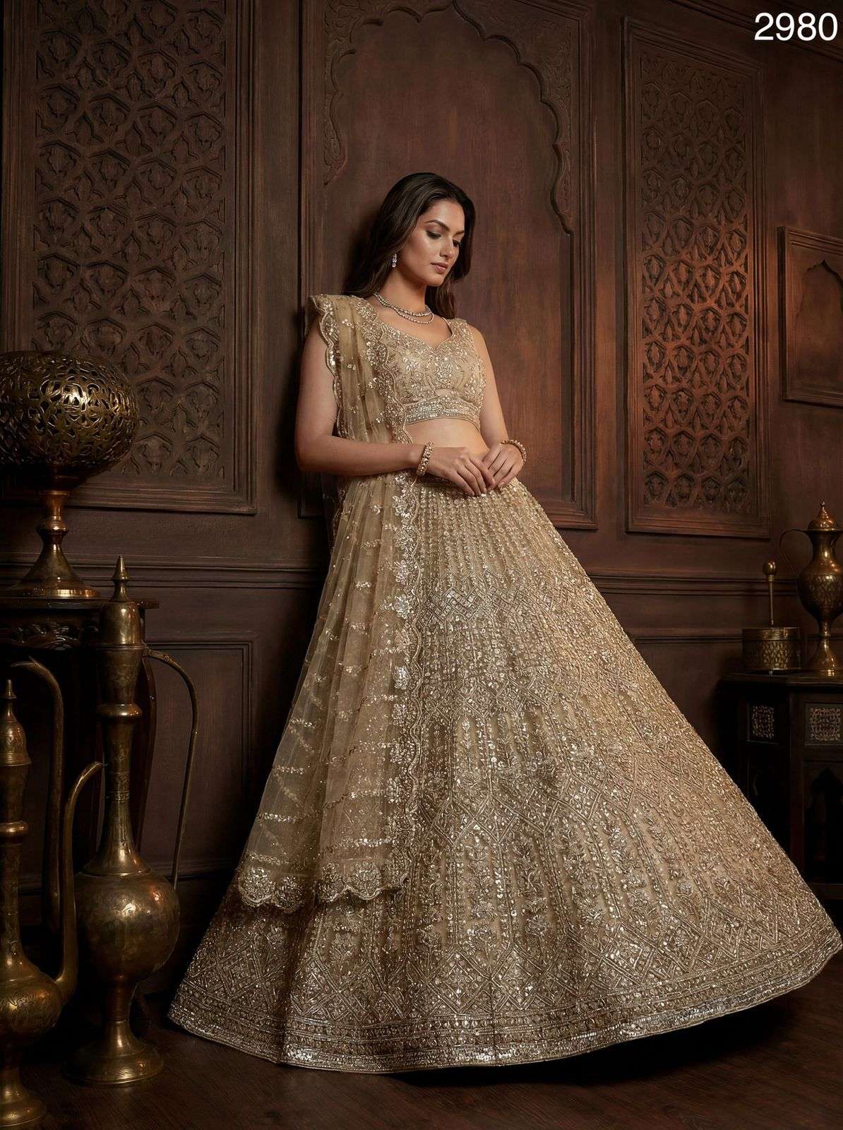 Code 2980 Golden Lehenga choli Designer Dupatta collection manufacturers surat