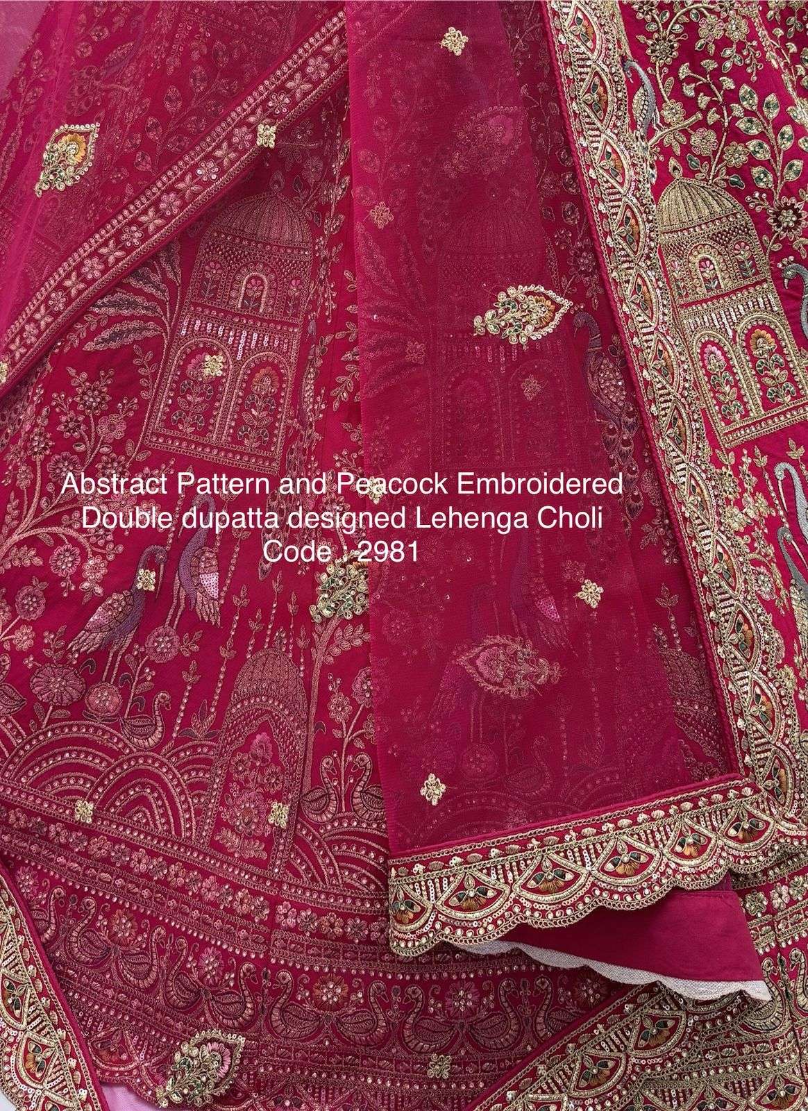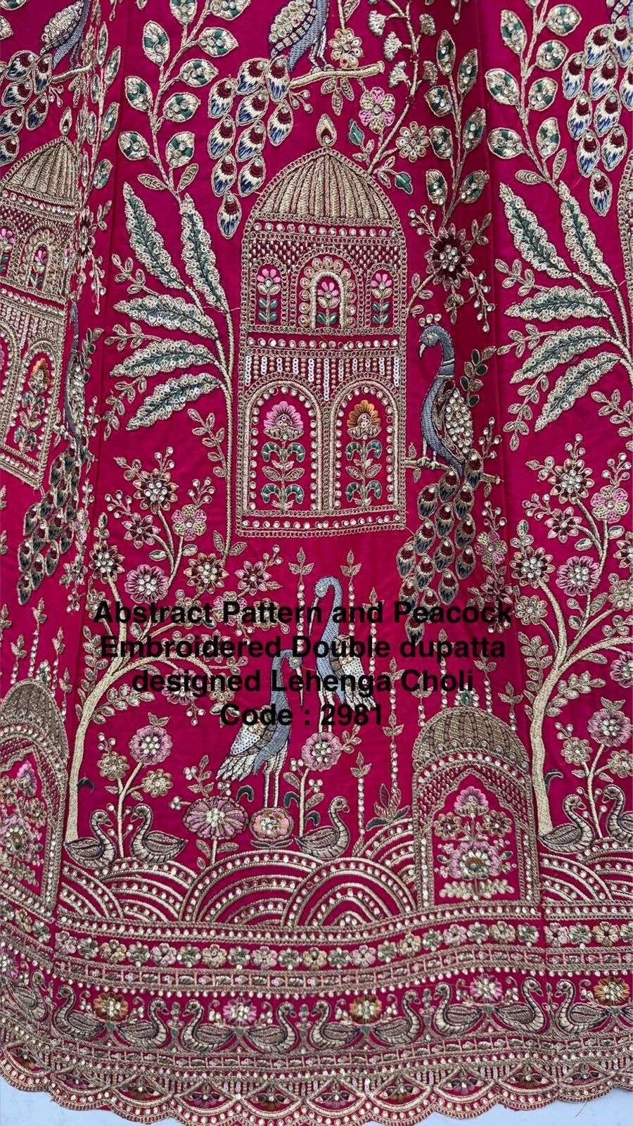 Abstract Pattern and Peacock Embroidered Double dupatta designed Lehenga Choli
