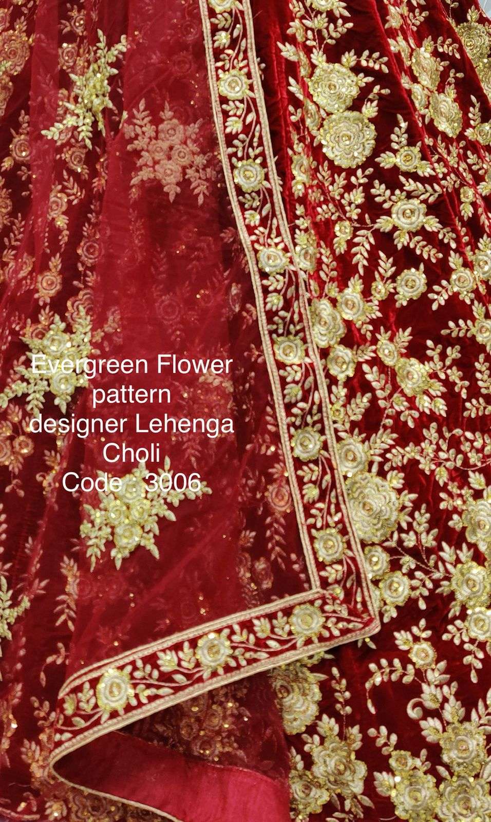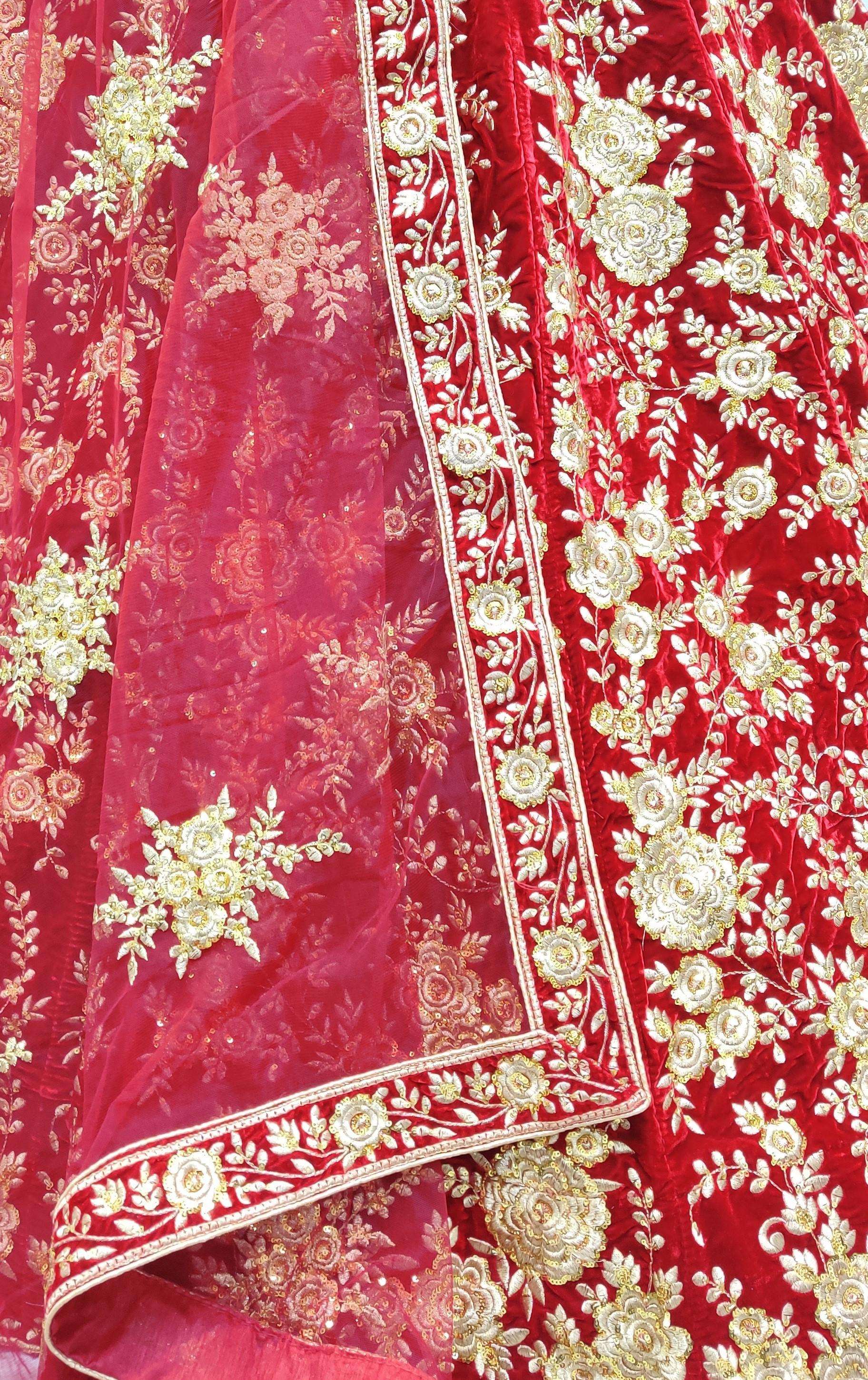 Code : 3006 Lehenga : Fabric - Velvet Work - Flower Fancy Embroidered Sequence work Zari and thread Embroidered Stitching - Standard Cancan and Canvas attached free size up to 42