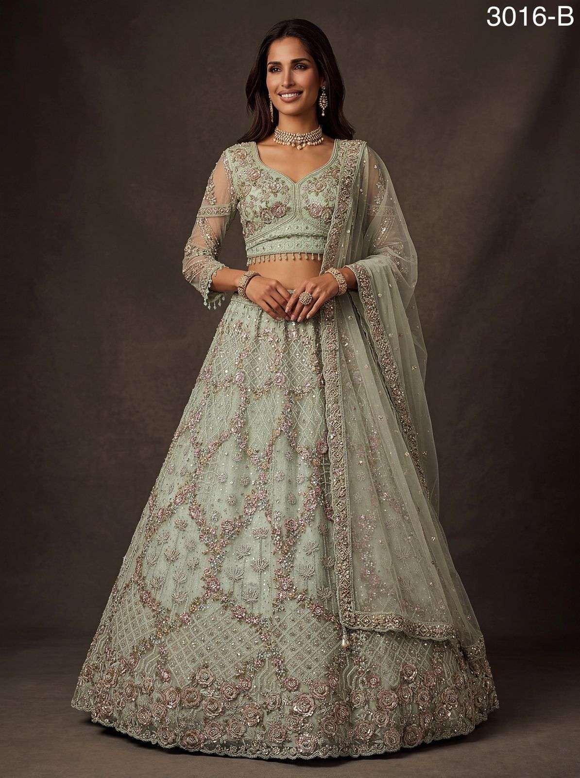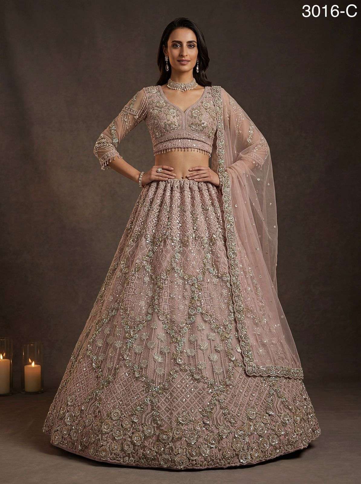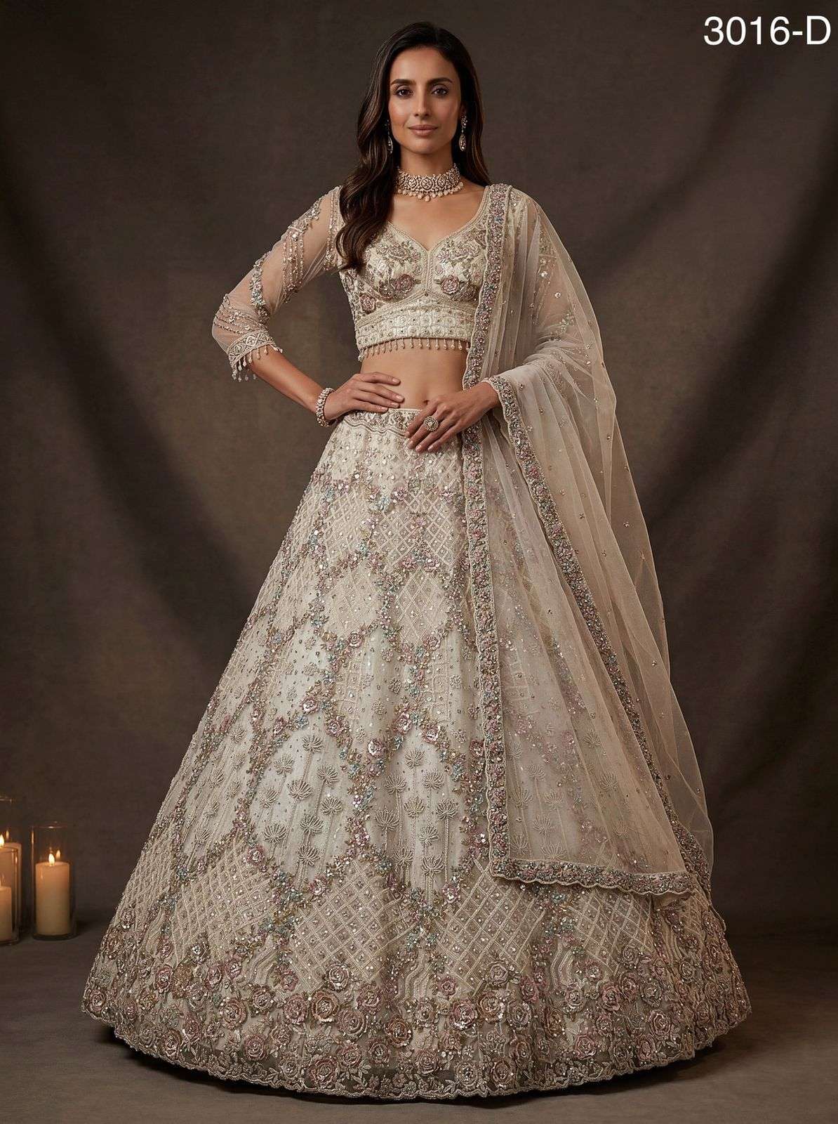 Code : 3016 Lehenga : Fabric - Double Net Crafted Work - • Double net Crafted • Dori Embroidery • Multi thread work • Sequence work Stitching - standard cancan and canvas attached free size lehenga Size - free size up to 42