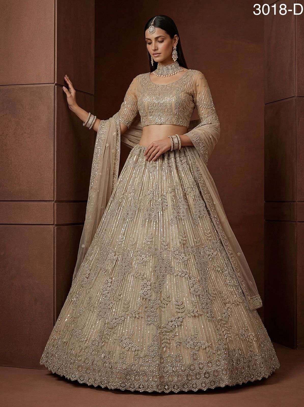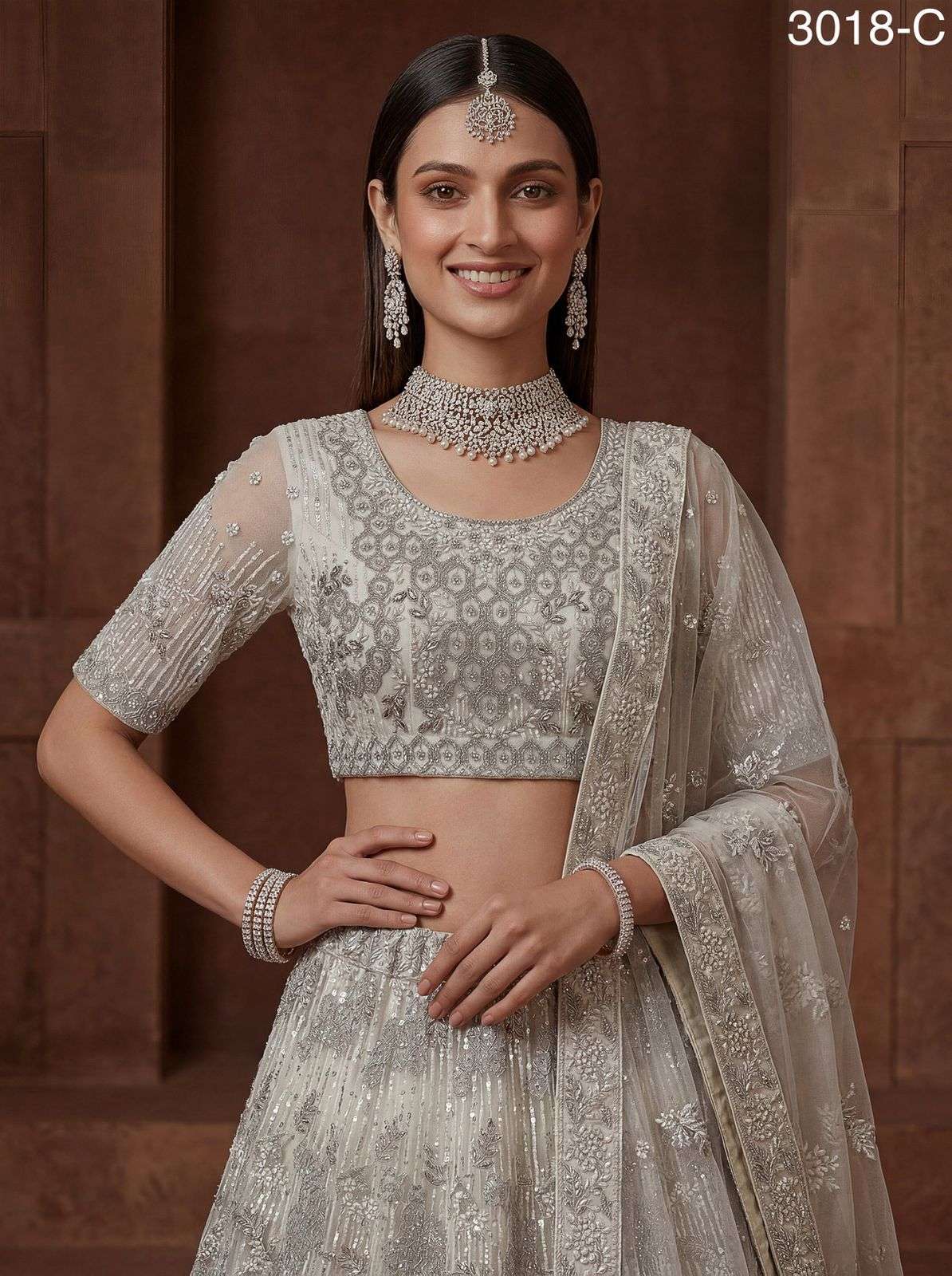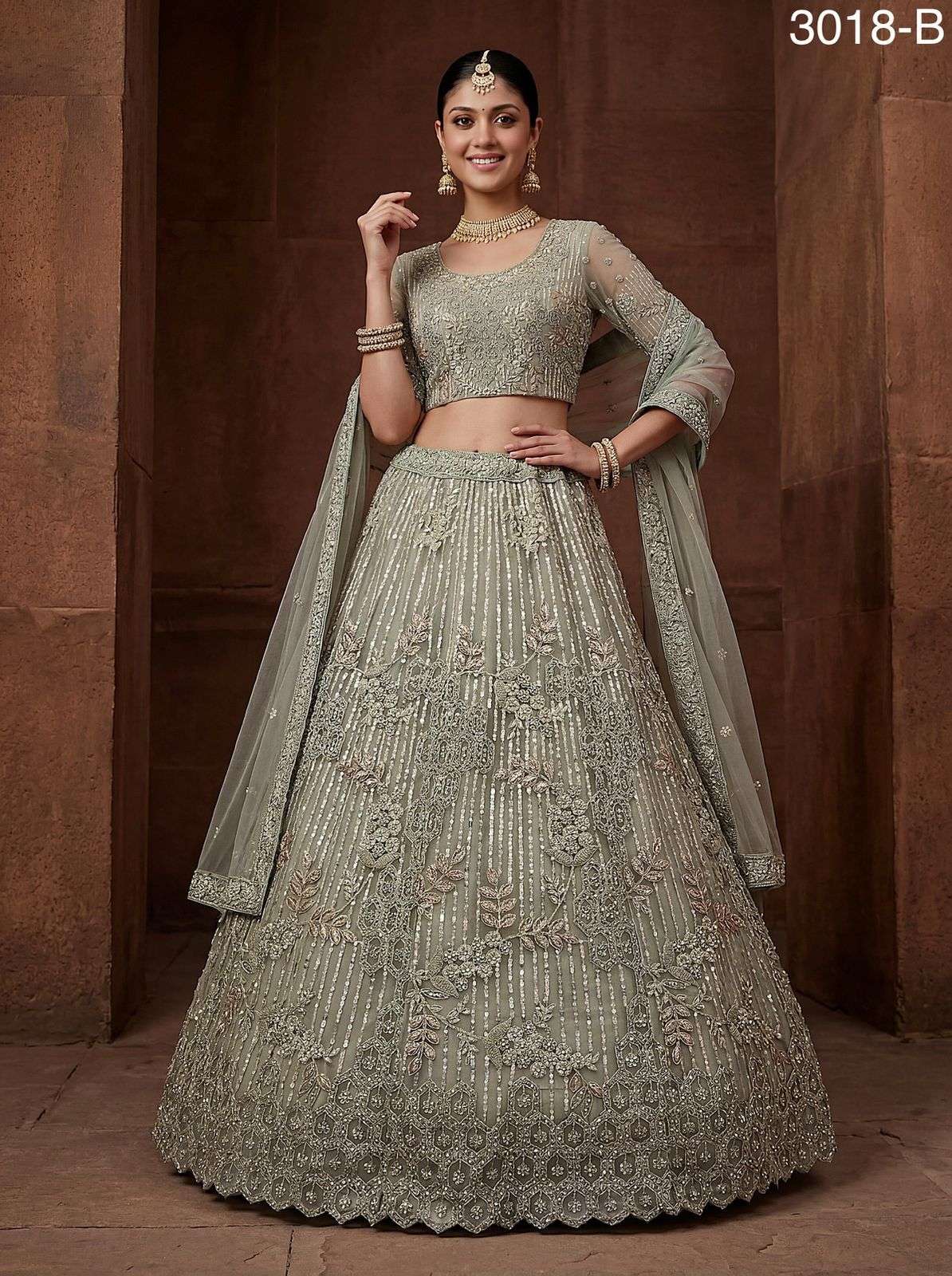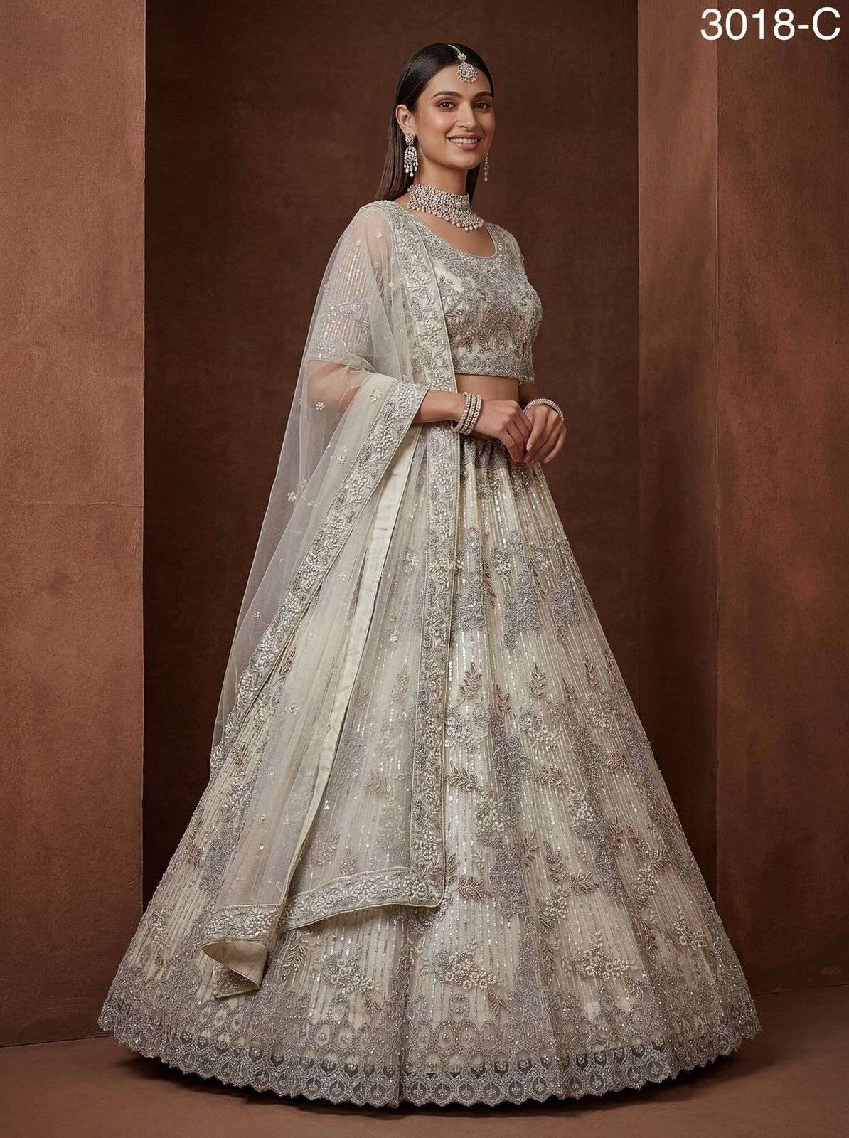 Code : 3018 Lehenga : Fabric - Net Work -Zari Embroidery Dori Work Sequince and Zircon Diamond Stitching - Standard Cancan and Canvas attached free size up to 42