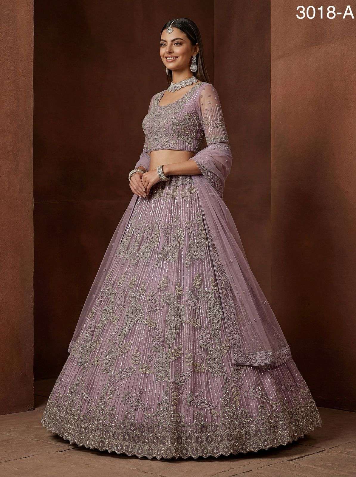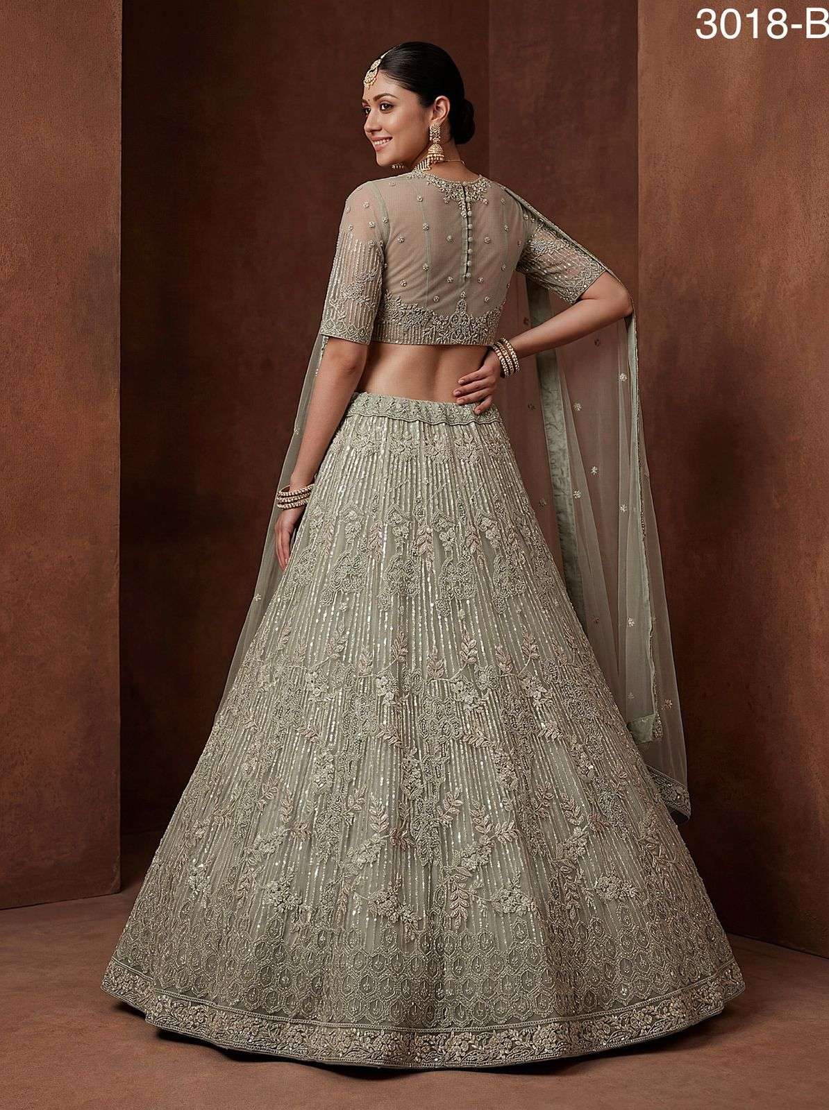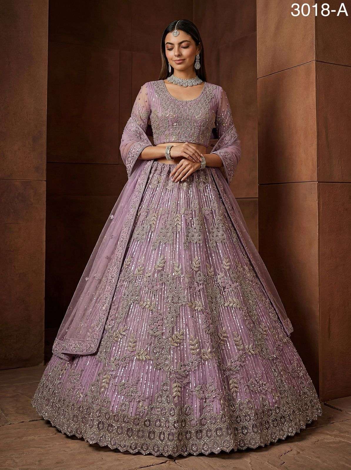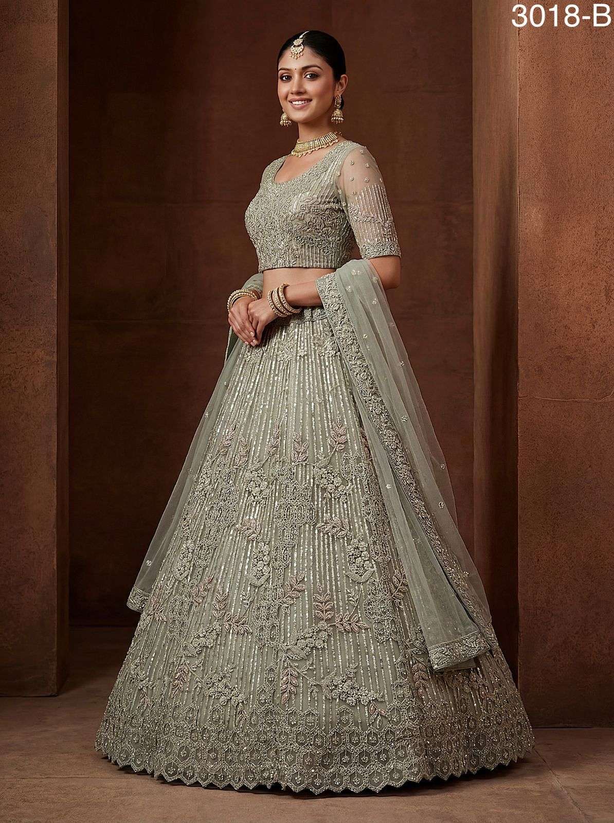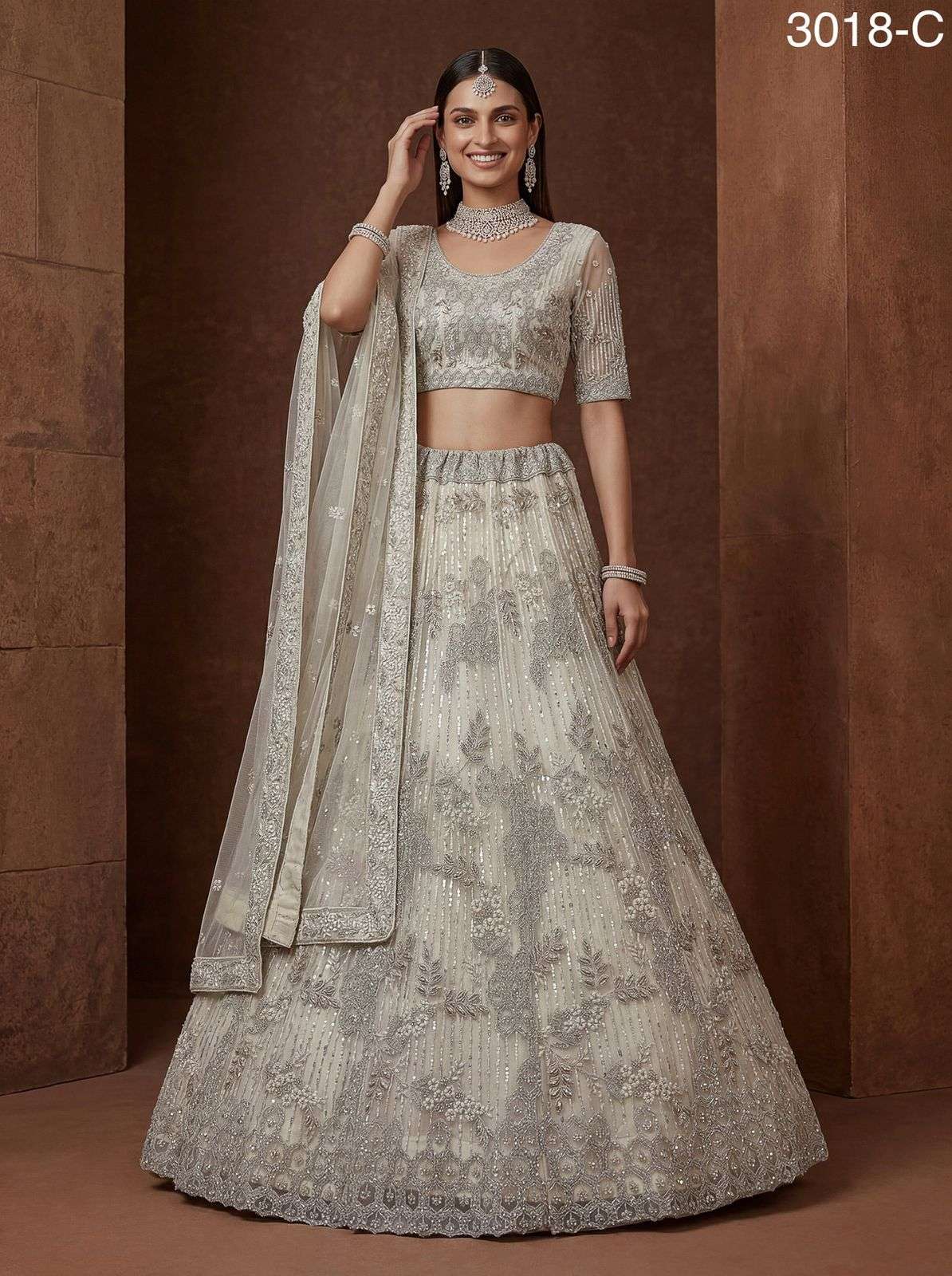Code : 3018 Lehenga : Fabric - Net Work -Zari Embroidery Dori Work Sequince and Zircon Diamond Stitching - Standard Cancan and Canvas attached free size up to 42