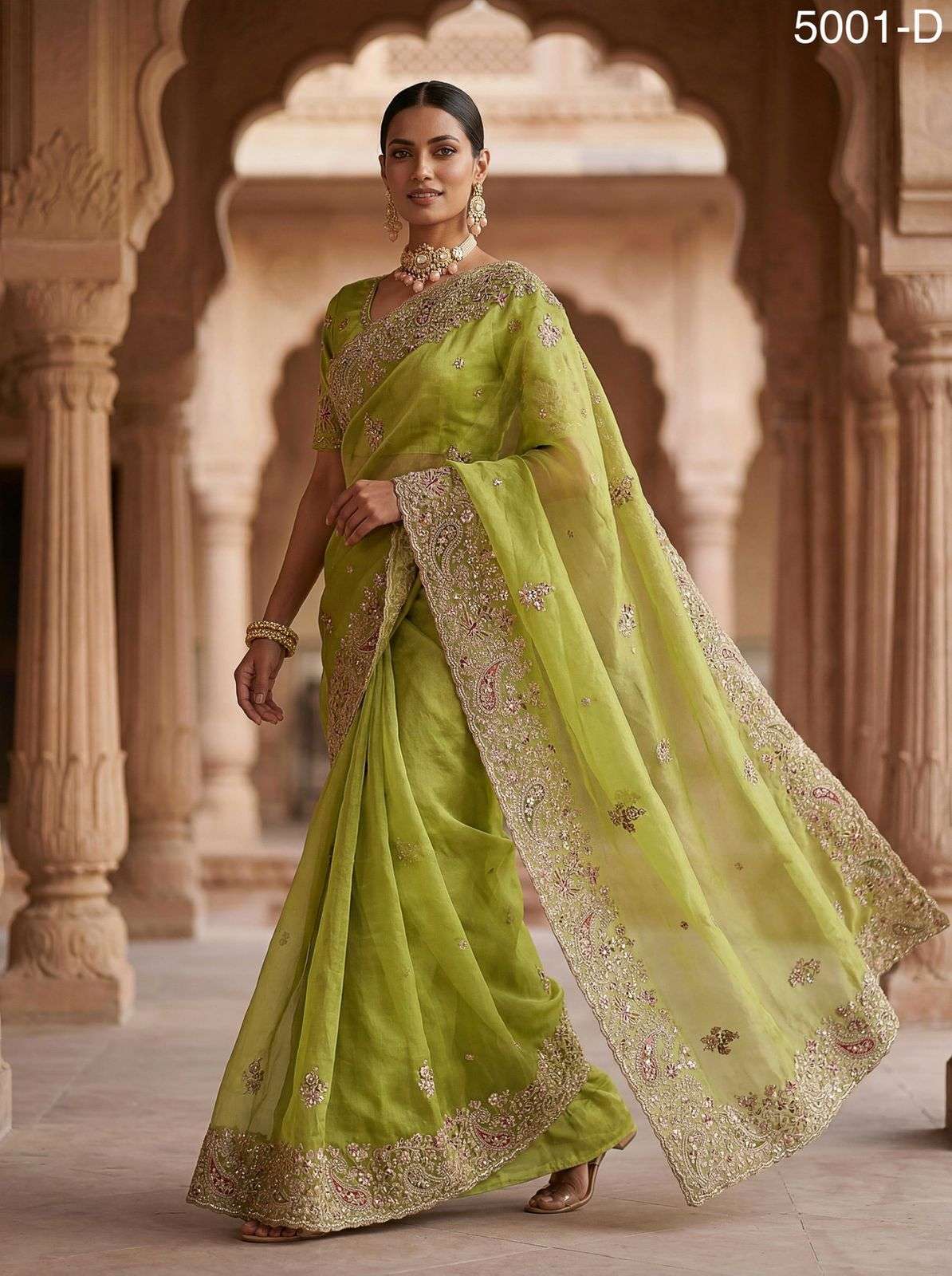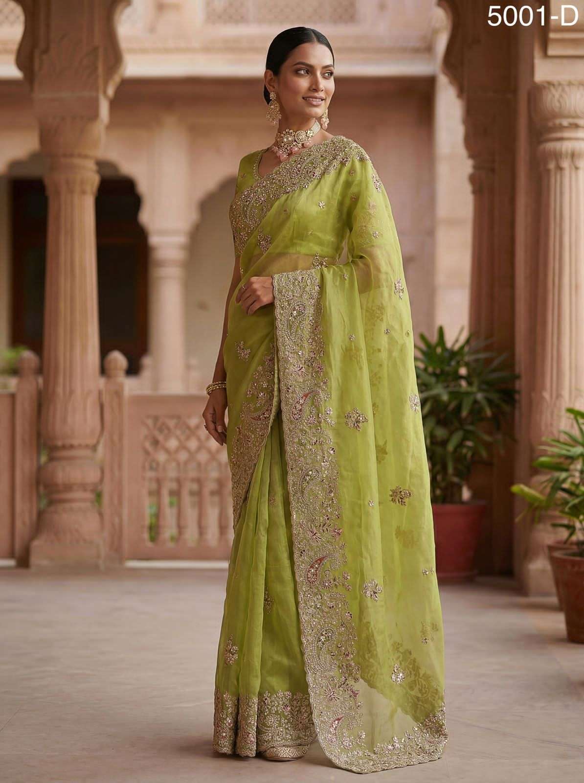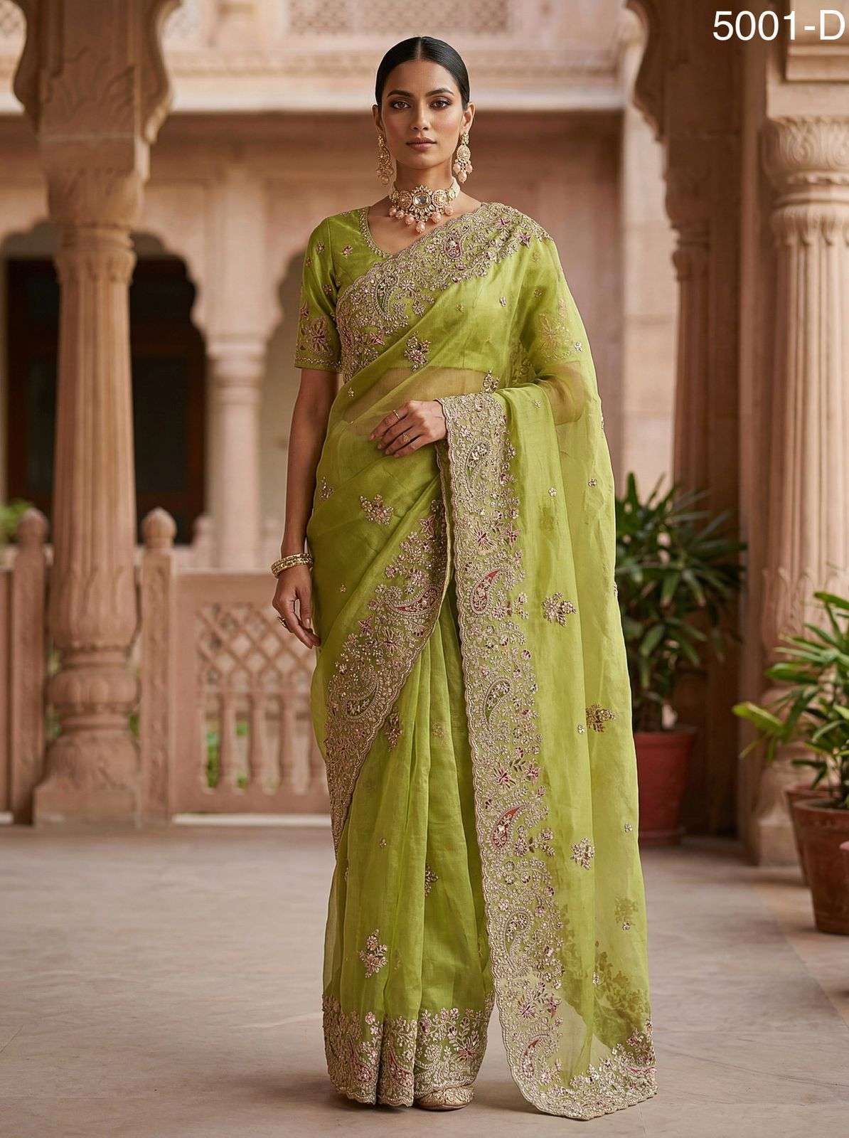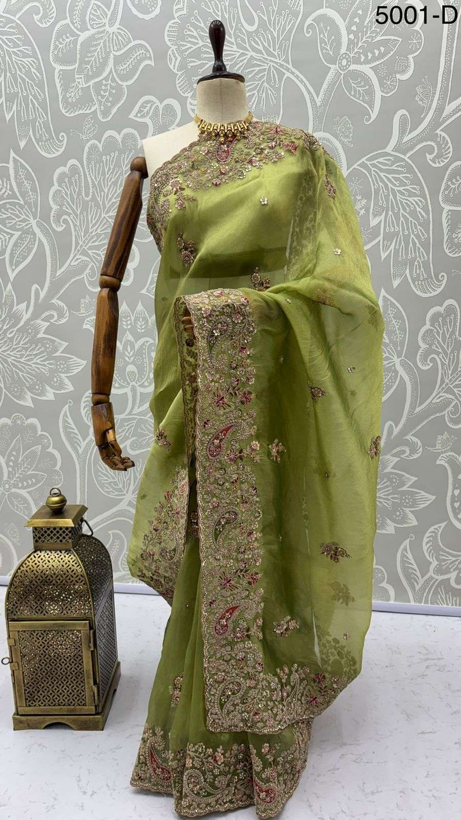 Buy Online Code 5001 Partywear Saree Collection manufacturers surat 5 Pcs of Full Catalogue at Wholesale Price. Looking for Code 5001 Partywear Saree Collection manufacturers surat Full Catalouge at Best Price? Buy Now Code 5001 Partywear Saree Collection manufacturers surat at Wholesale Rate of Rs 29995 with Total 5 Pcs from authroized dealer and supplier of BRAND'S Brand. Cost of Each piece is just only Rs 5999 which is very low and affordable price to resale the product in your retail store ,This is Surat based Wholesale Supplier & Dealer of BRAND'S Brand. Click on Brand name to Know more about BRAND'S Brand's products.Call or Whatsapp on 9898838984 for booking or enquiry
