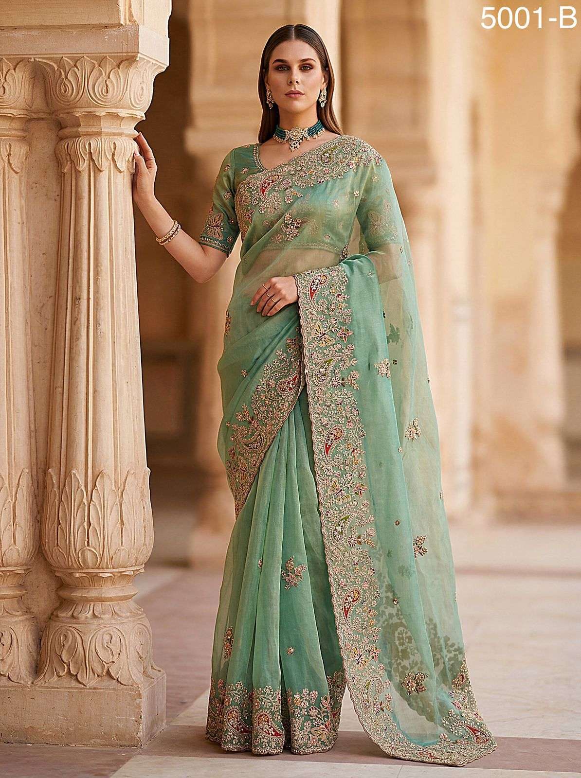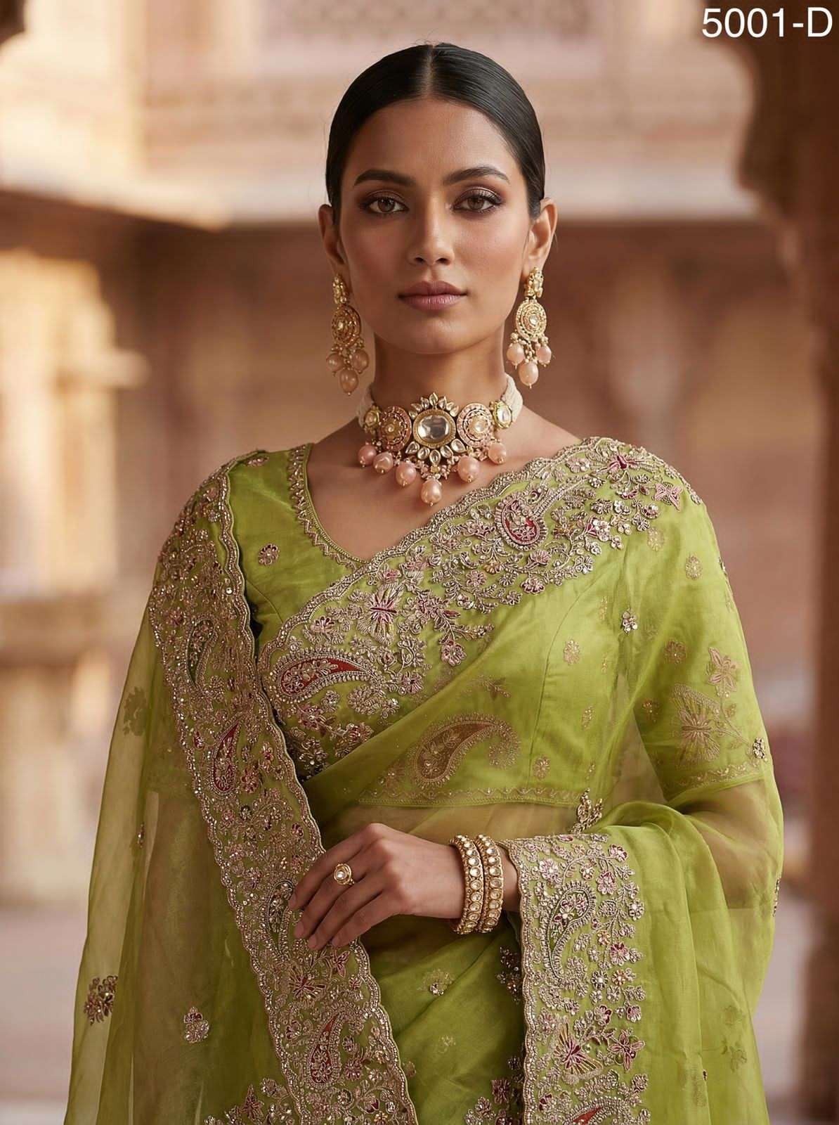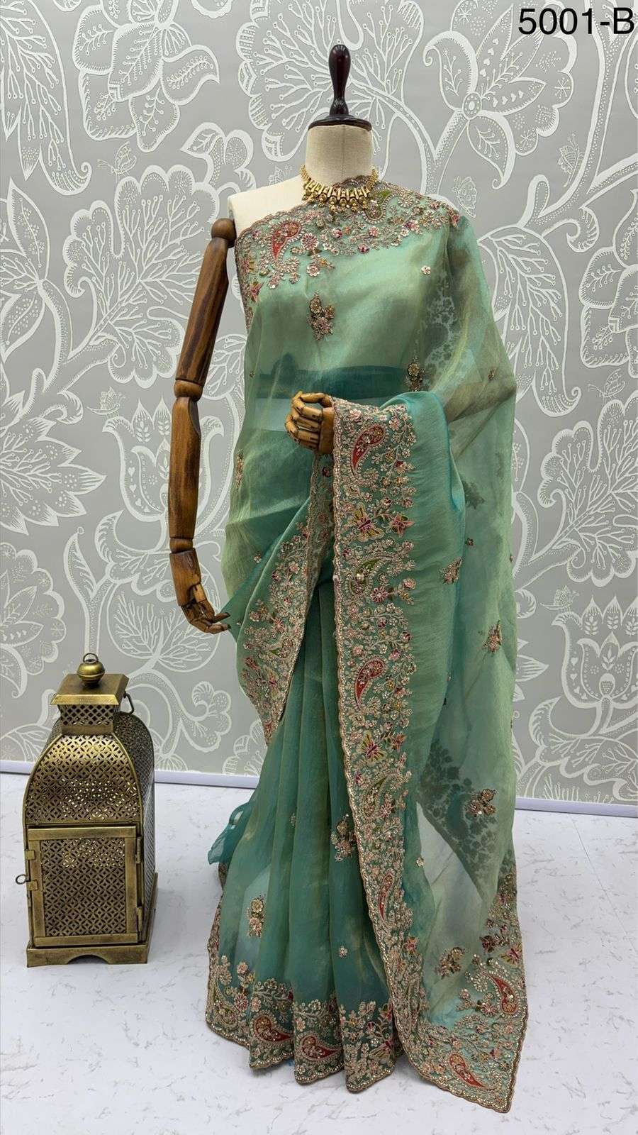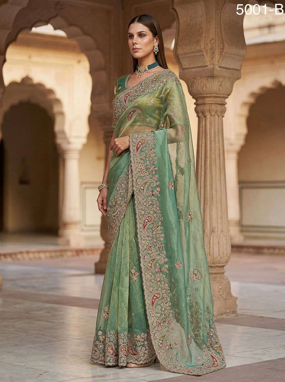Buy Online Code 5001 Partywear Saree Collection manufacturers surat 5 Pcs of Full Catalogue at Wholesale Price. Looking for Code 5001 Partywear Saree Collection manufacturers surat Full Catalouge at Best Price? Buy Now Code 5001 Partywear Saree Collection manufacturers surat at Wholesale Rate of Rs 29995 with Total 5 Pcs from authroized dealer and supplier of BRAND'S Brand. Cost of Each piece is just only Rs 5999 which is very low and affordable price to resale the product in your retail store ,This is Surat based Wholesale Supplier & Dealer of BRAND'S Brand. Click on Brand name to Know more about BRAND'S Brand's products.Call or Whatsapp on 9898838984 for booking or enquiry