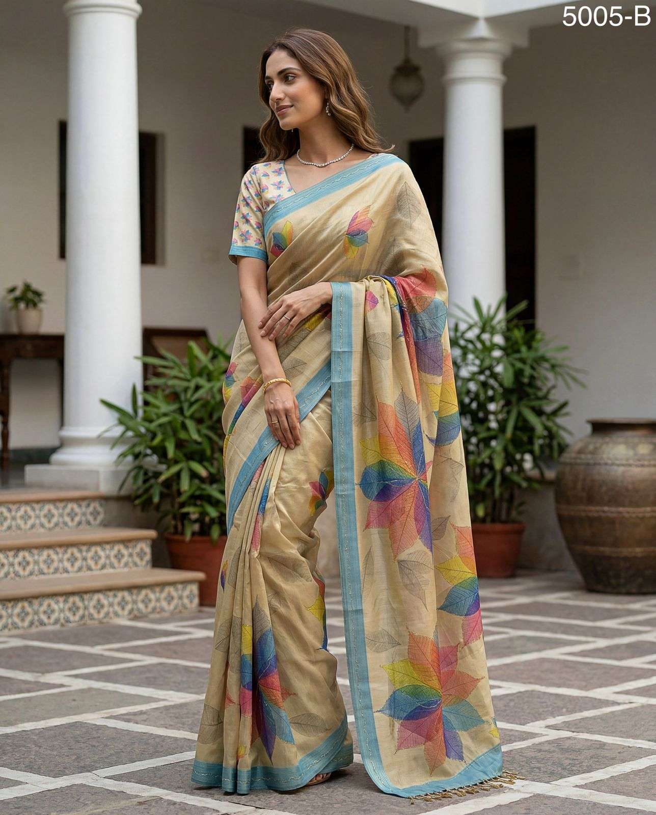 Code : 5005 Fabric - Virana Silk Work - Dori Work Print Work Size - 5.5 meter long saree