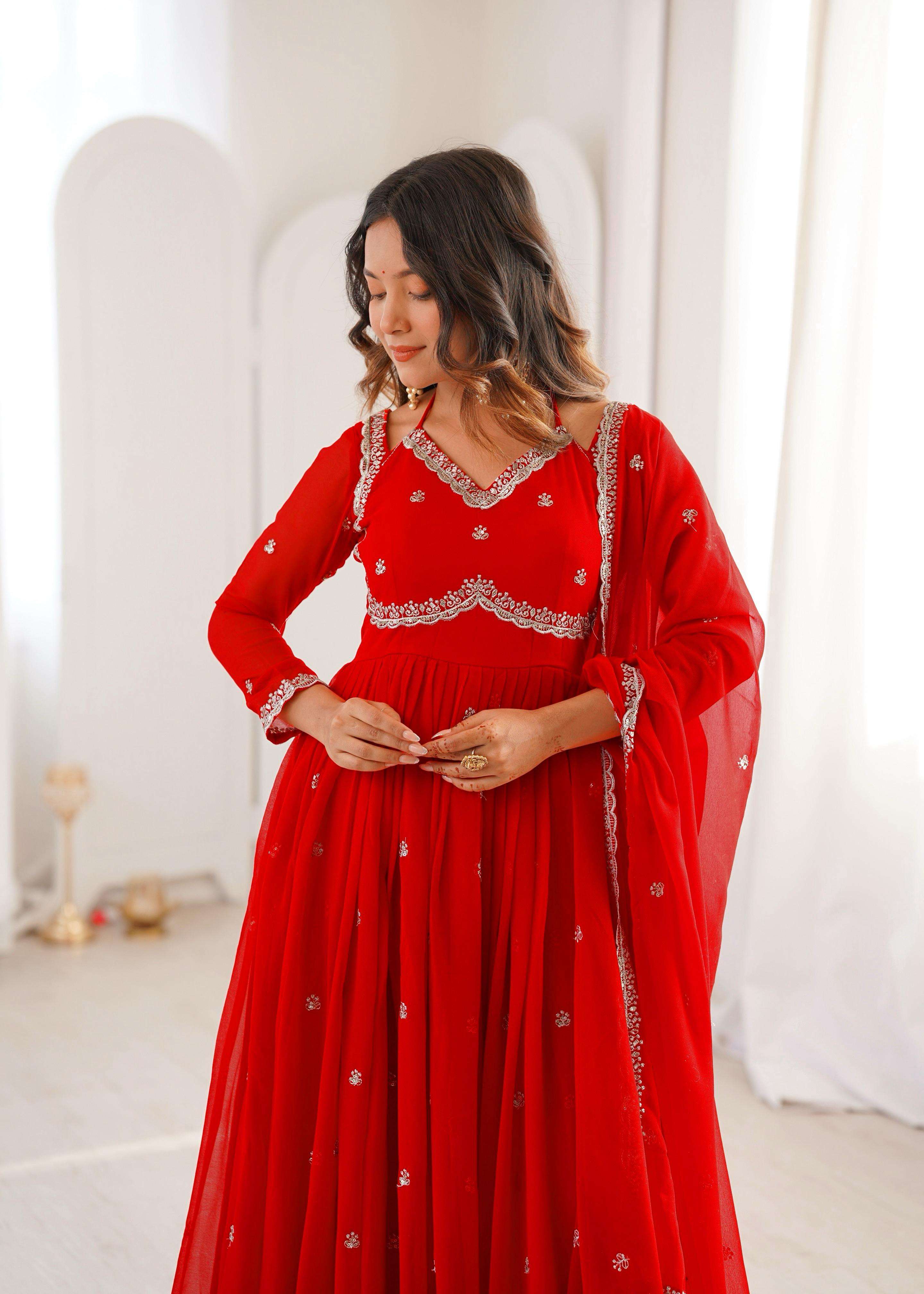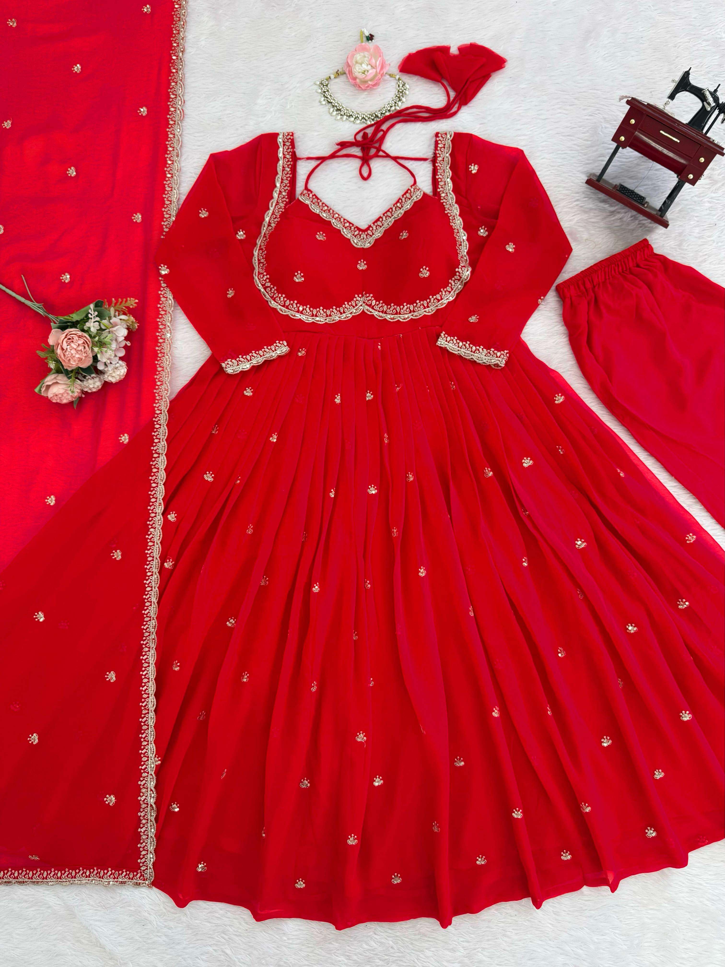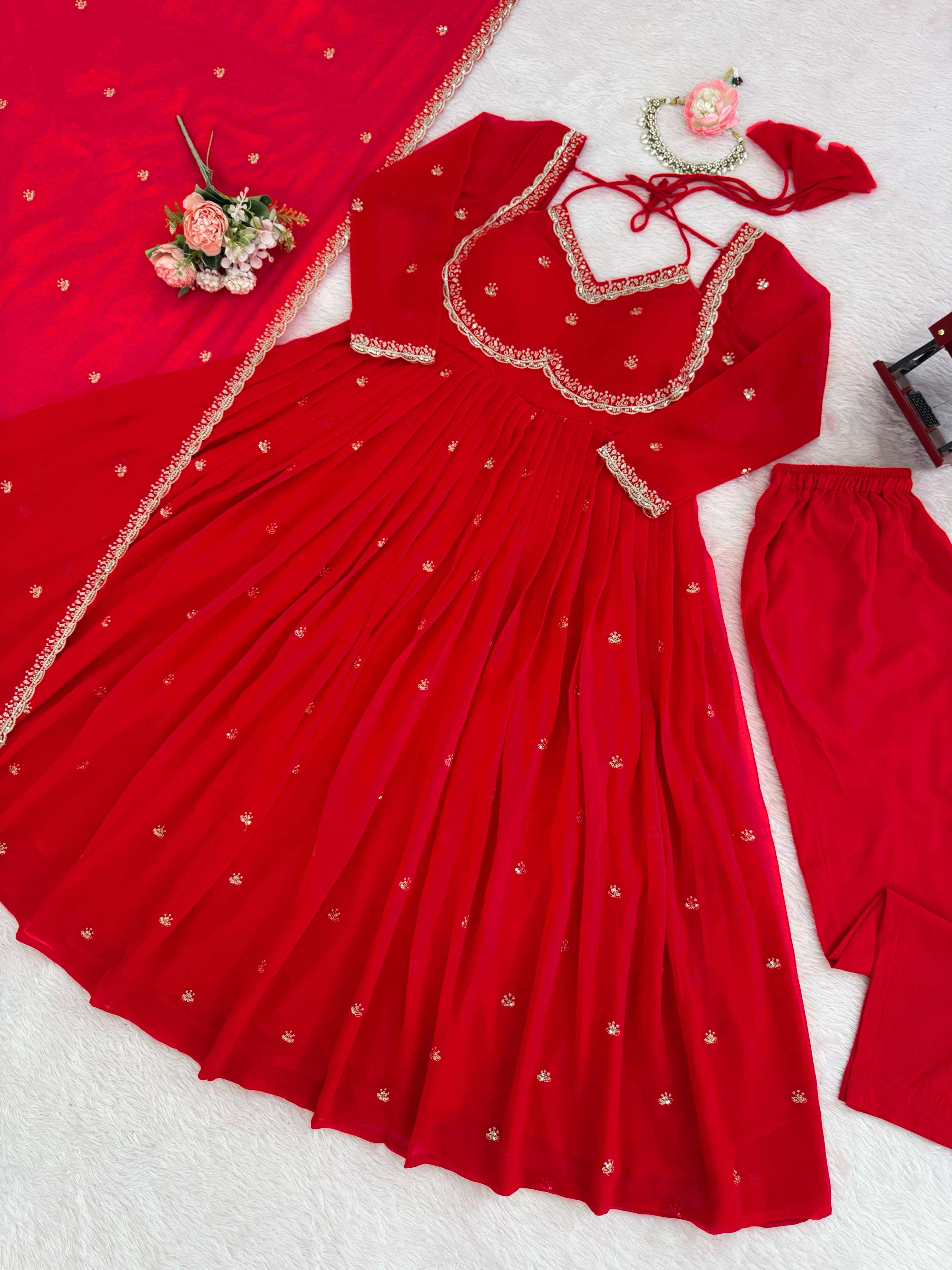 Gown • Fabric: Georgette • Lining: Soft Micro Inner • Work: Thread with Sequin Work • Flair: 3.5 meters • Stitching: S (36), M (38), L (40), XL (42), XXL (44) – Ready to Wear • Length: 52+ inches