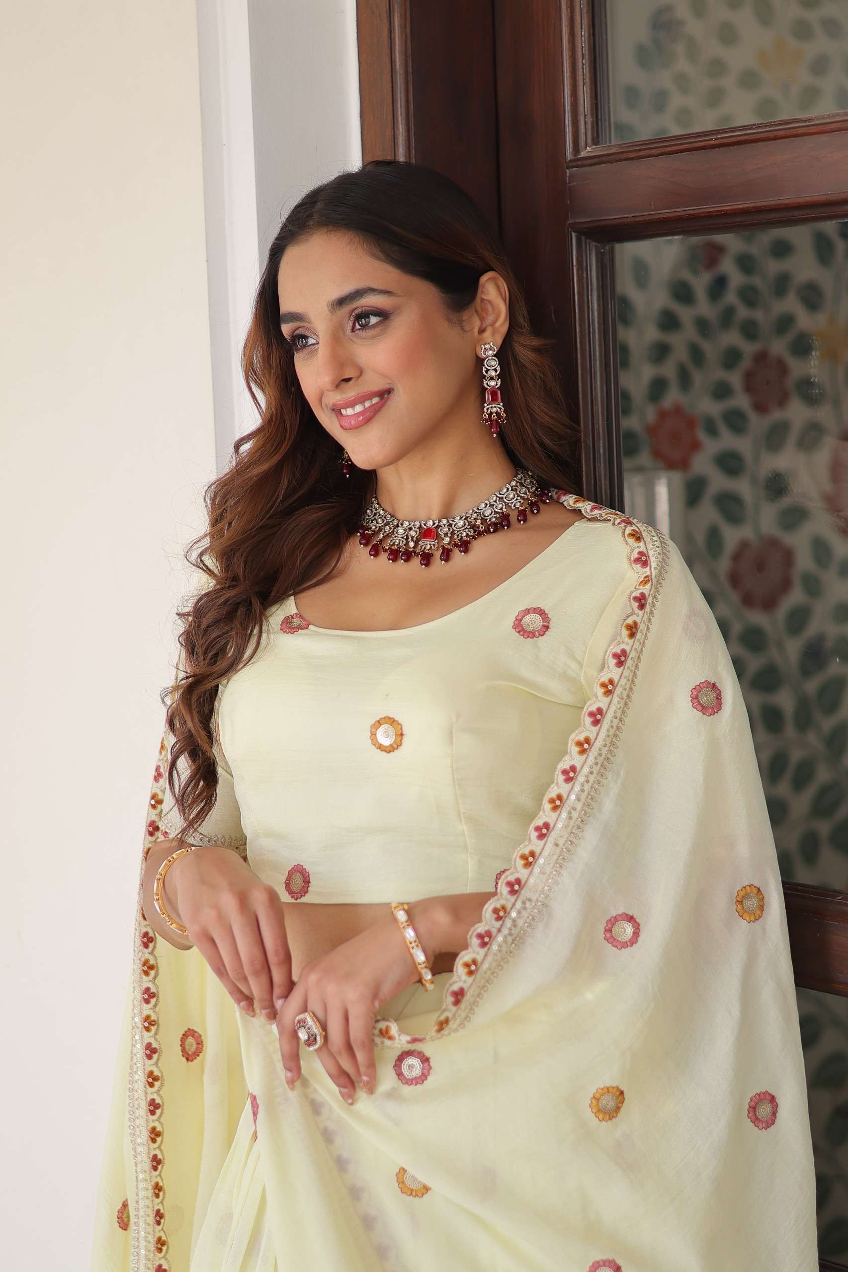 *DUPATTA* :-👇🏻 *FABRICS & WORK* :- Vichitra Silk With Sequins & Zari & Thread Multi Embroidered Attractive Lace Border. *LENGTH* :- 2.3 MTR